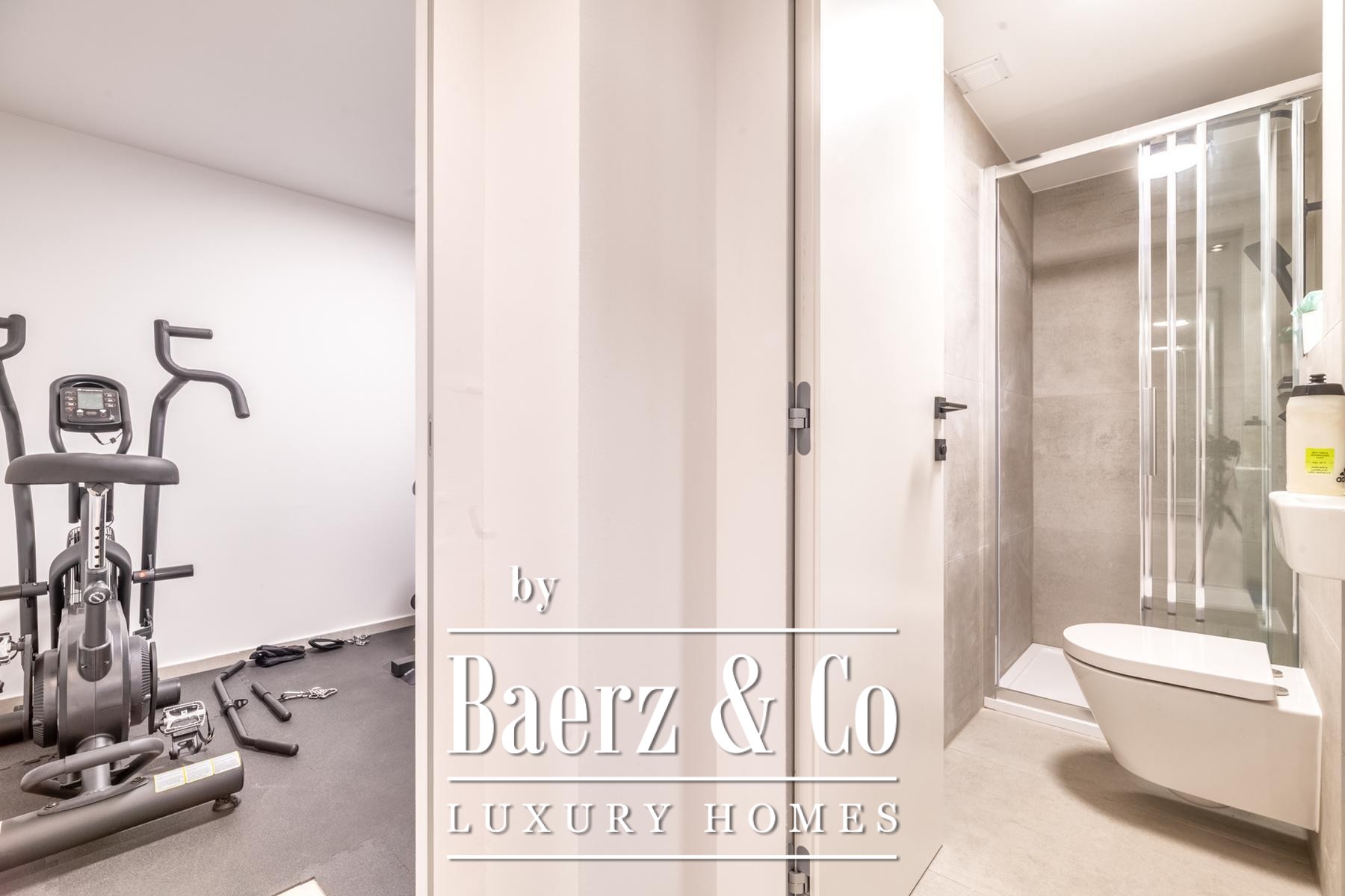 The ground floor offers a sense of professional and personal balance, featuring an office, gym, exercise room with tatami, a bathroom, and considered storage. Ascending, the first floor unfolds into an open living volume with custom kitchen, dining and lounge, anchored by a large terrace with a fireplace, barbecue, and summer kitchen—inviting an understated kind of conviviality. The attic level provides three serene bedrooms, a bathroom, a hallway, and terrace, creating an intimate retreat from the pace of urban life.