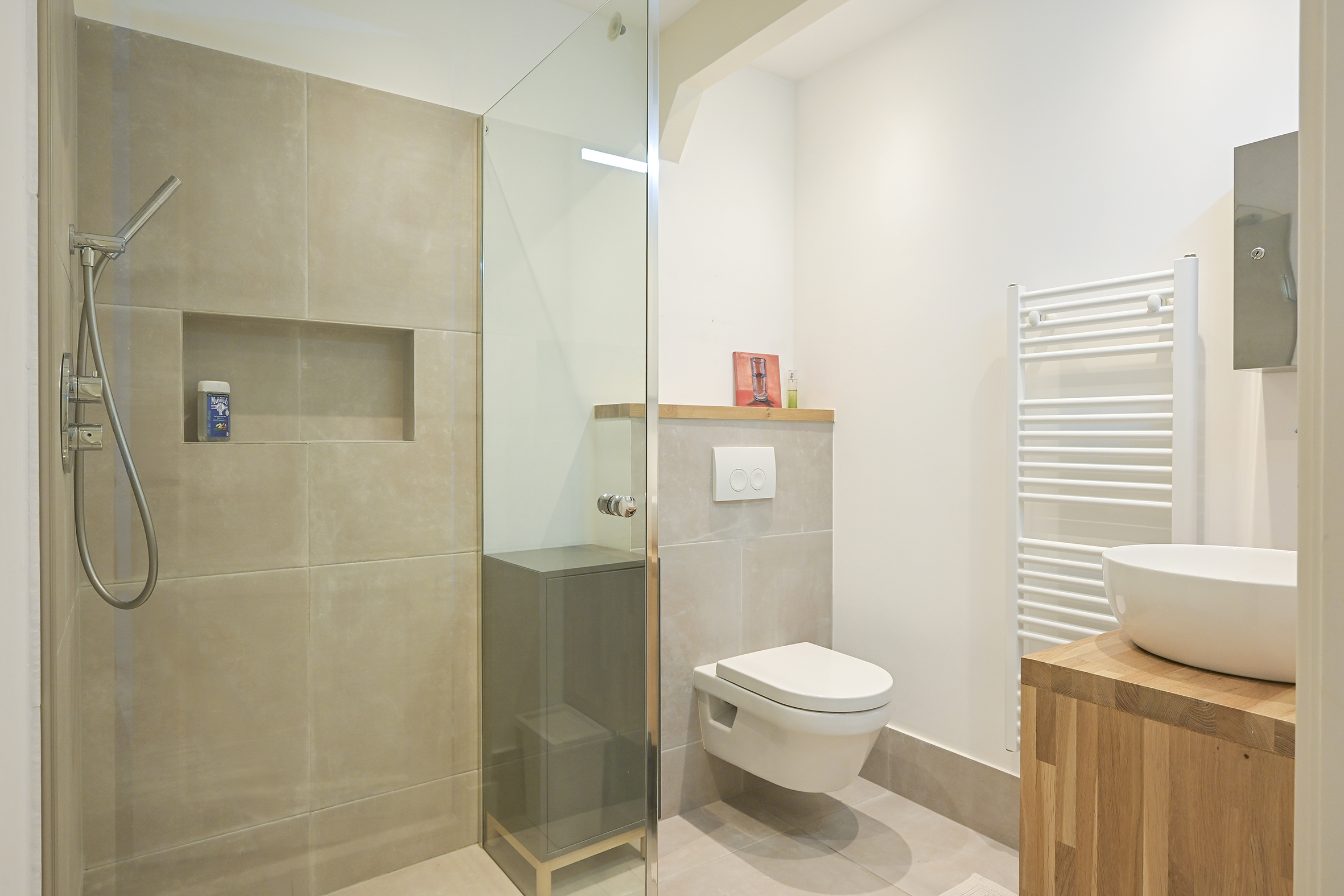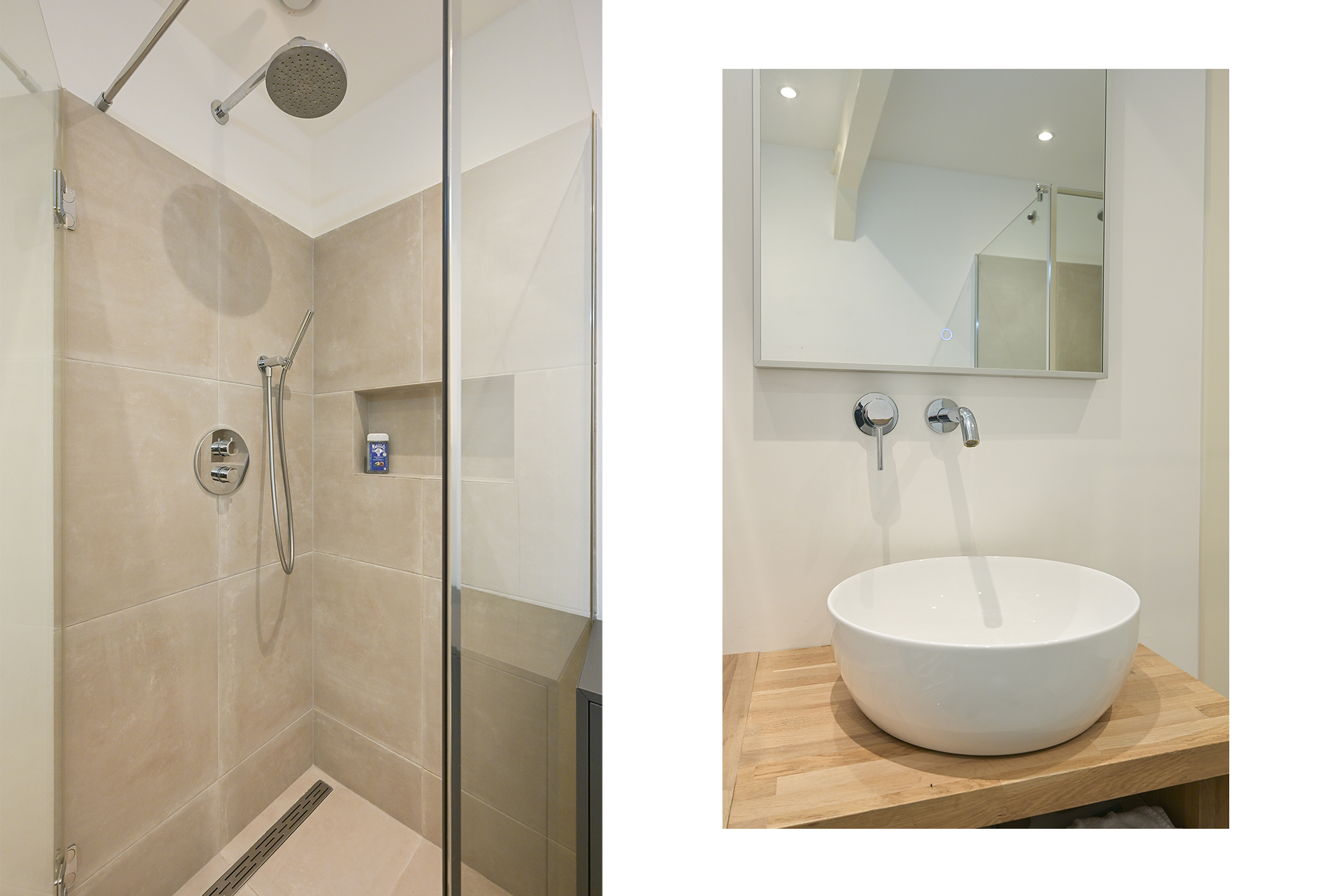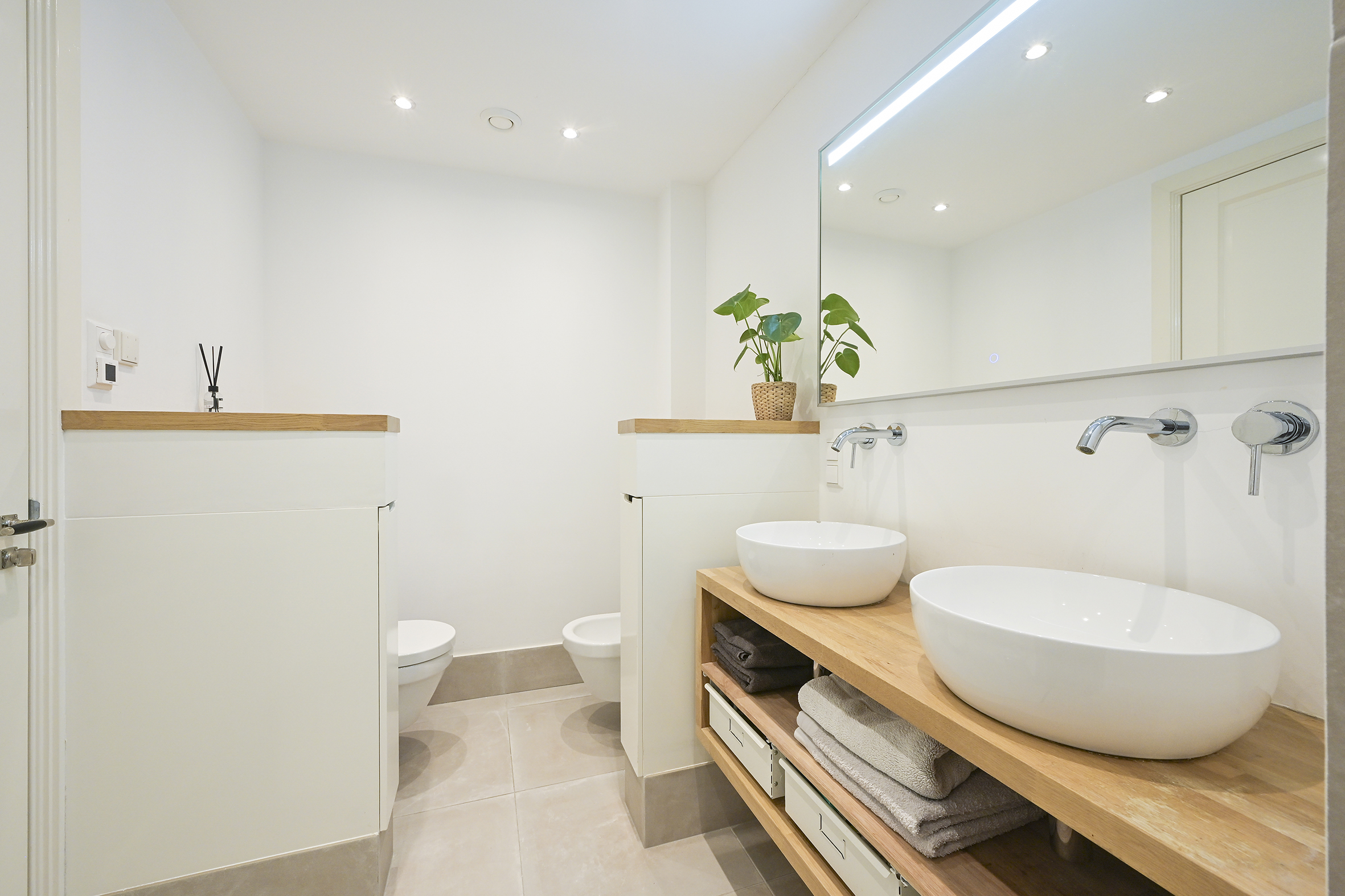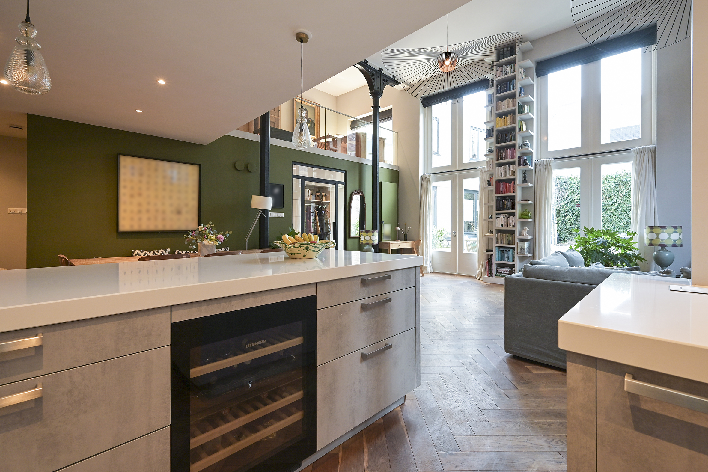 Behind the historic facade lies this spacious and bright home, which features three large bedrooms, two modern bathrooms, and an impressive living room of approximately 70 m². The high ceilings and open loft enhance the feeling of space. French doors leading to the courtyard with its own south-facing terrace offer a sense of freedom and privacy. This privacy is particularly high, partly because the entrance gate is closed in the evenings and on weekends.
