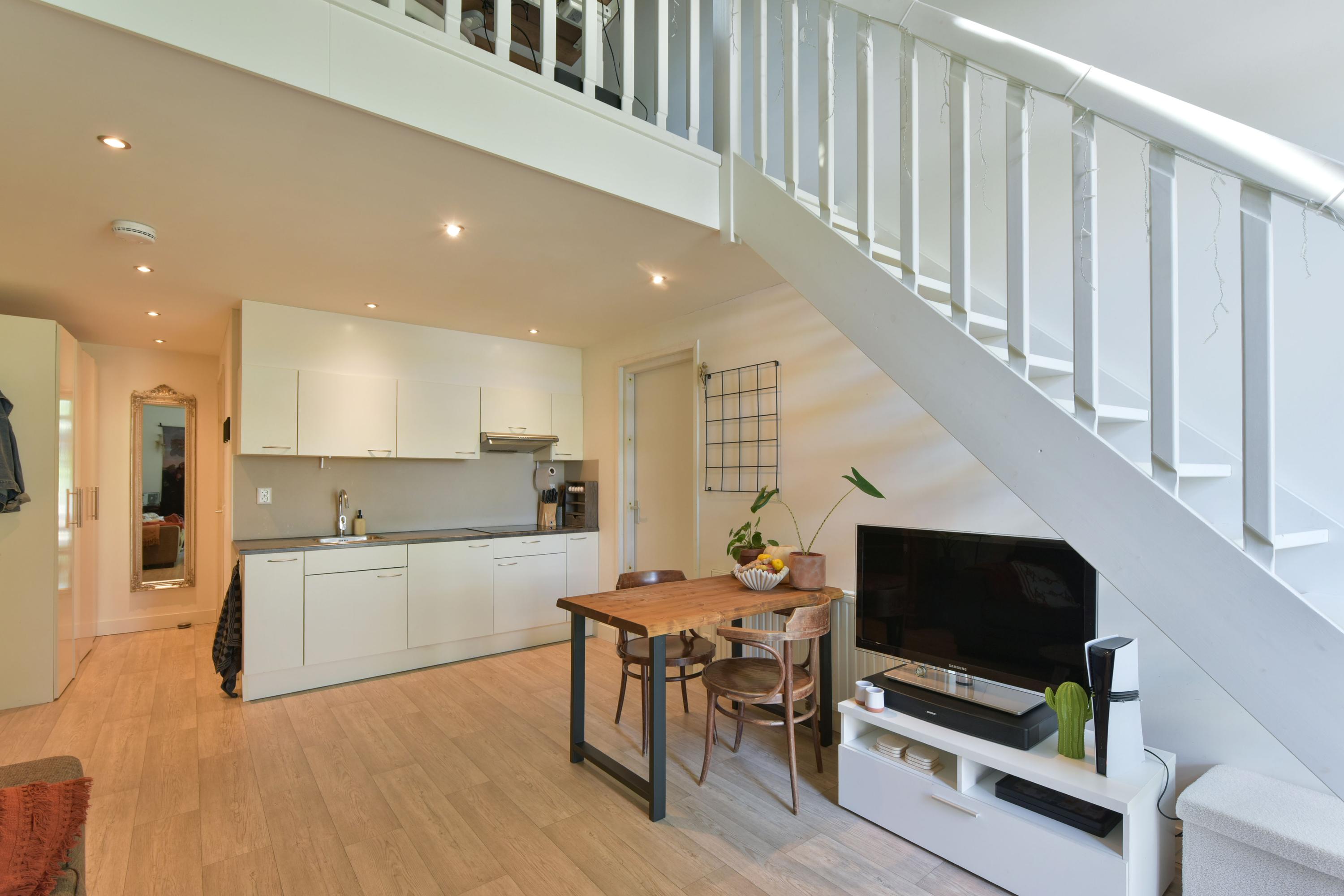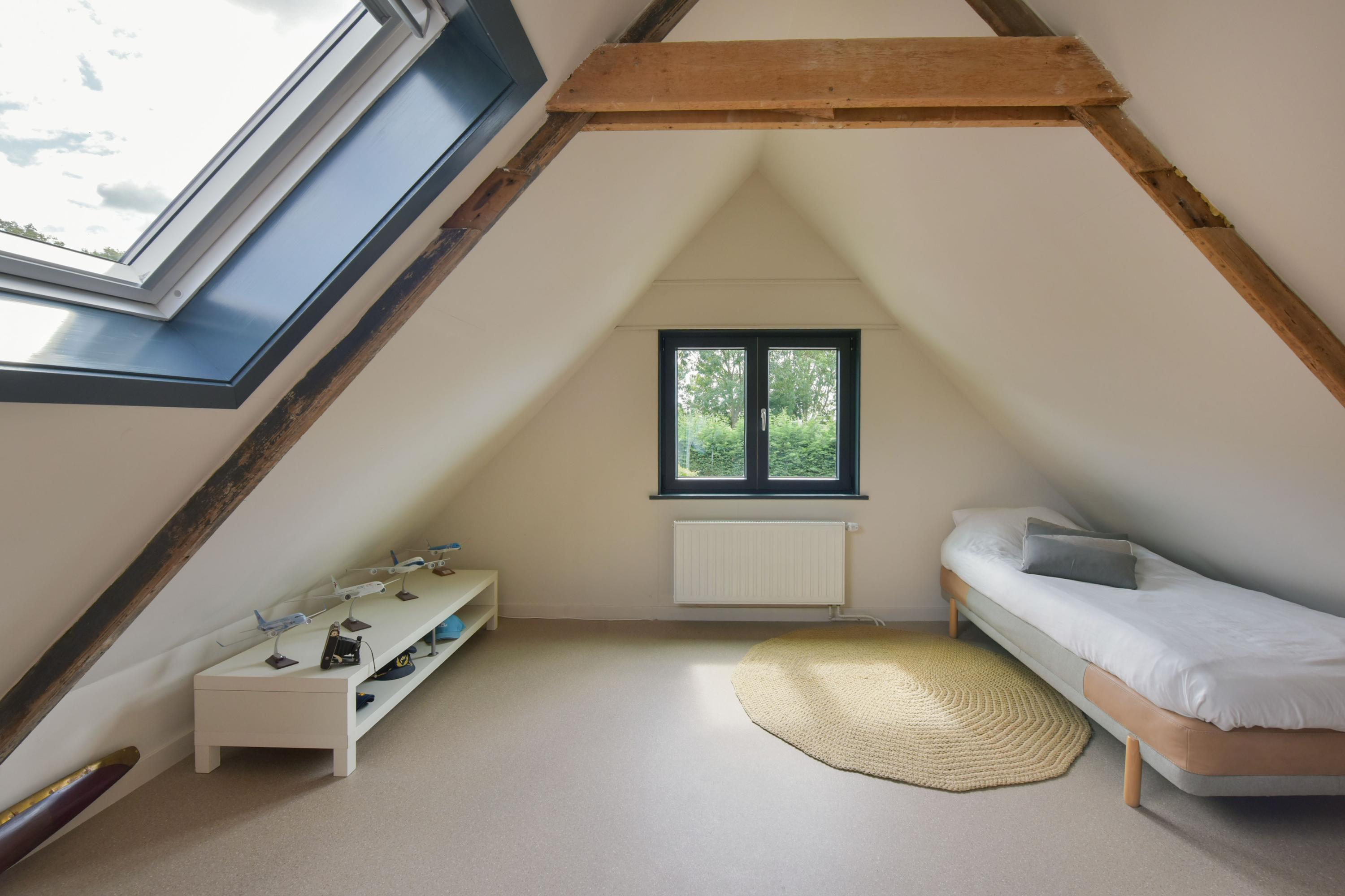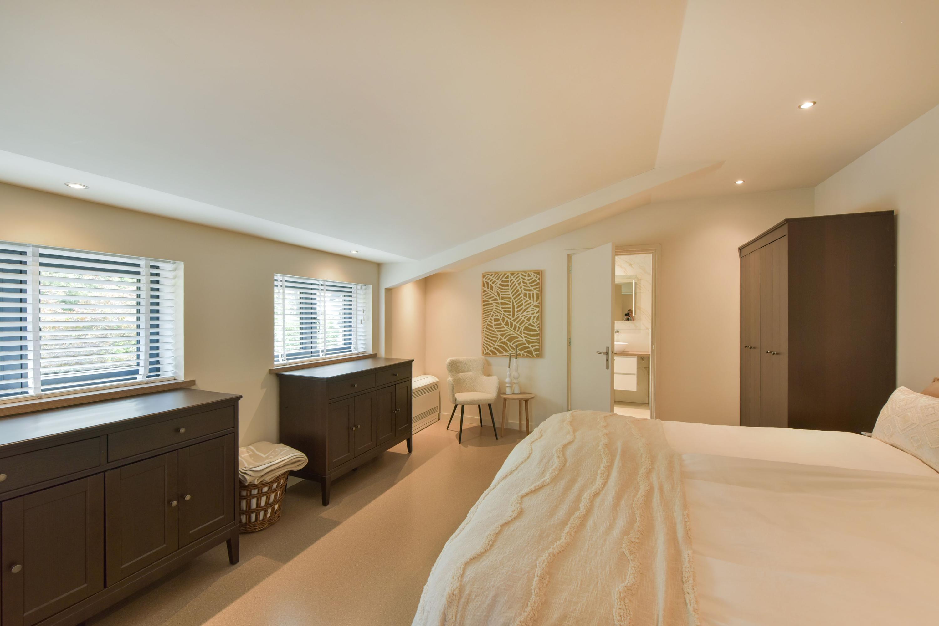The ground floor has been recently modernised, with the bathroom renewed in 2024 and the kitchen updated in 2025. The spacious living room, featuring large windows and French doors opening onto the garden, forms the heart of the home. The modern kitchen with cooking island, high-quality appliances and bar area connects seamlessly to the living space. In addition, there is a bedroom with en-suite bathroom, a multifunctional room prepared for an additional bedroom or bathroom, and a utility room with access to the veranda and an additional storage area.