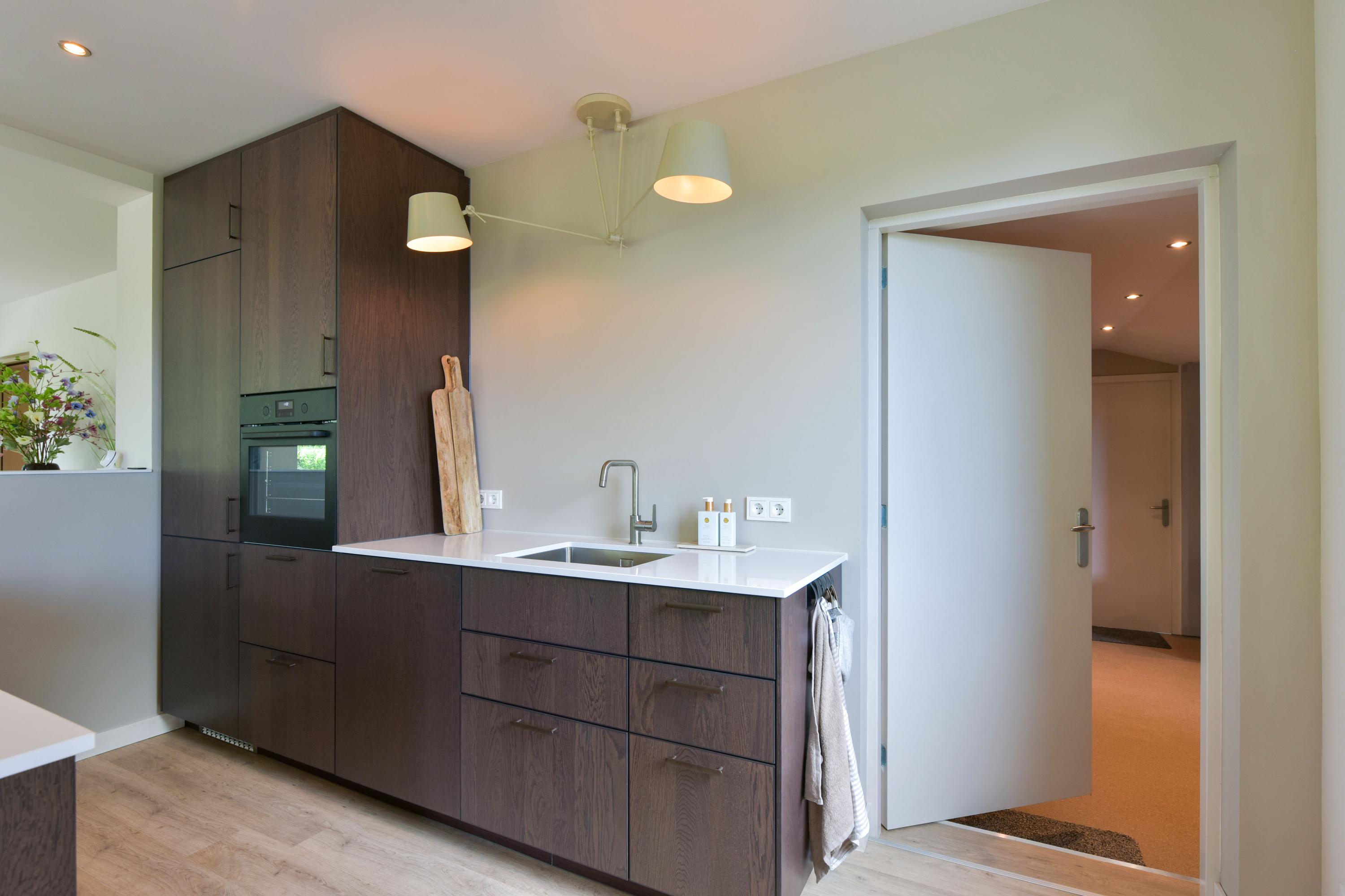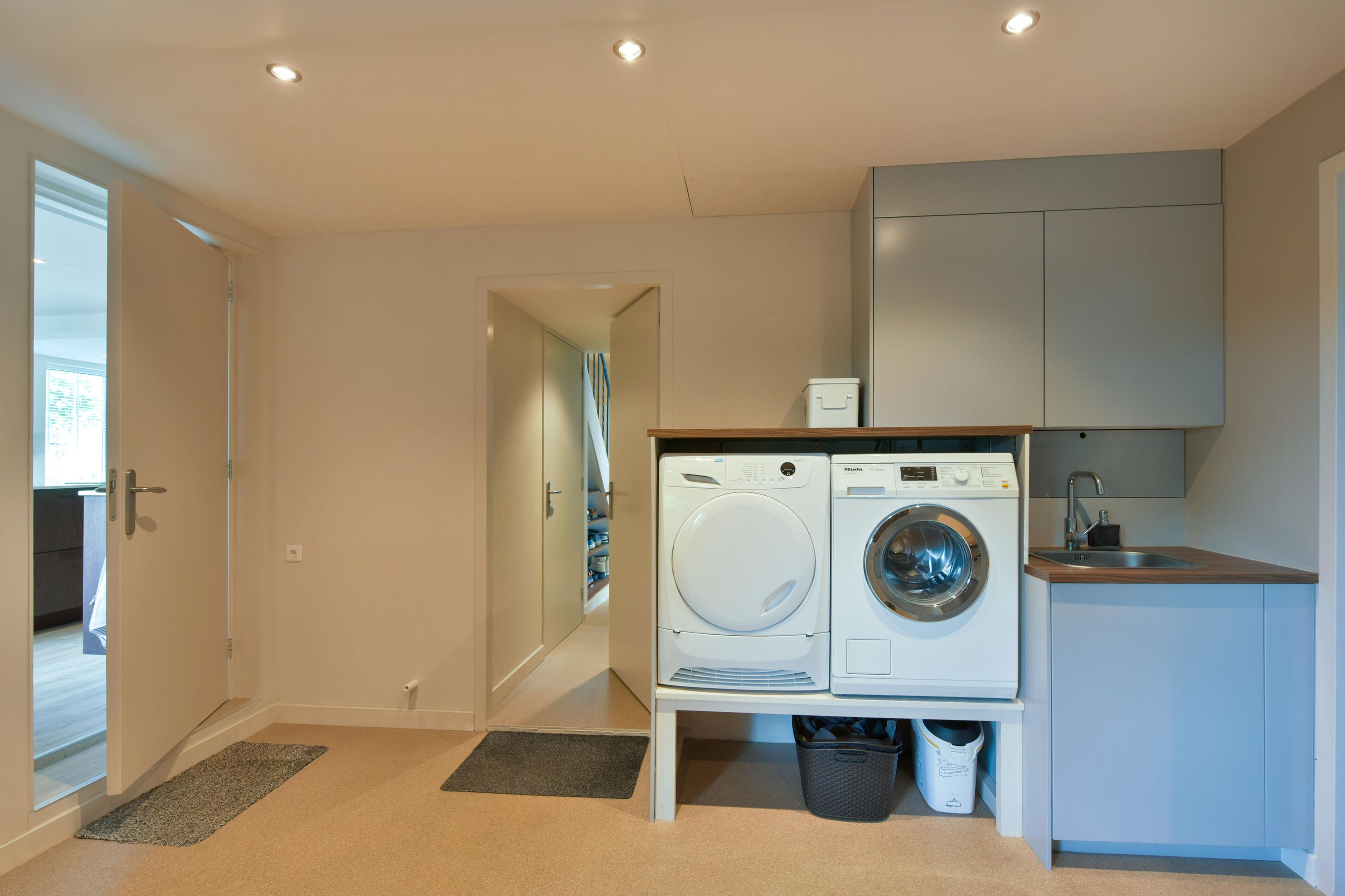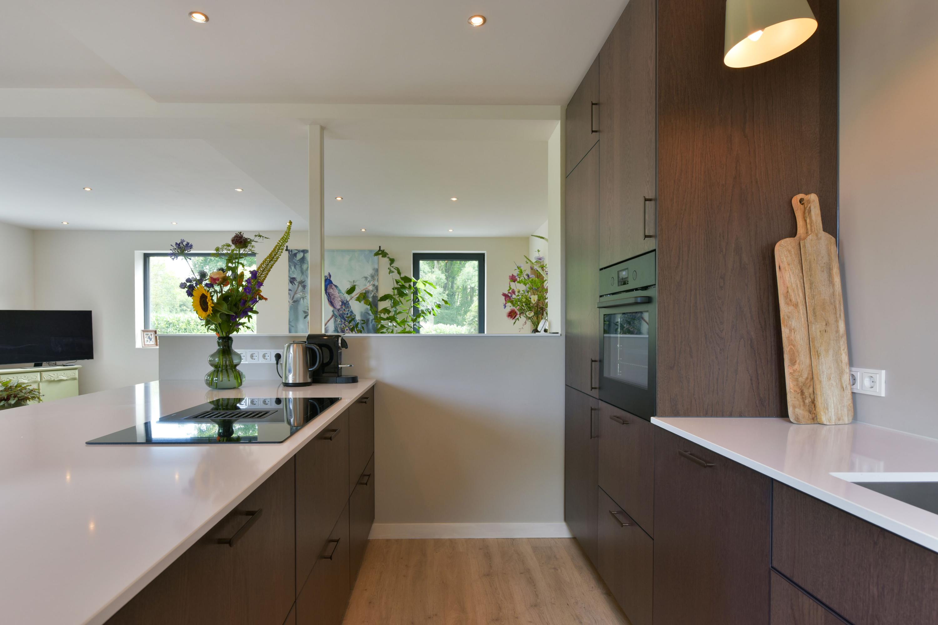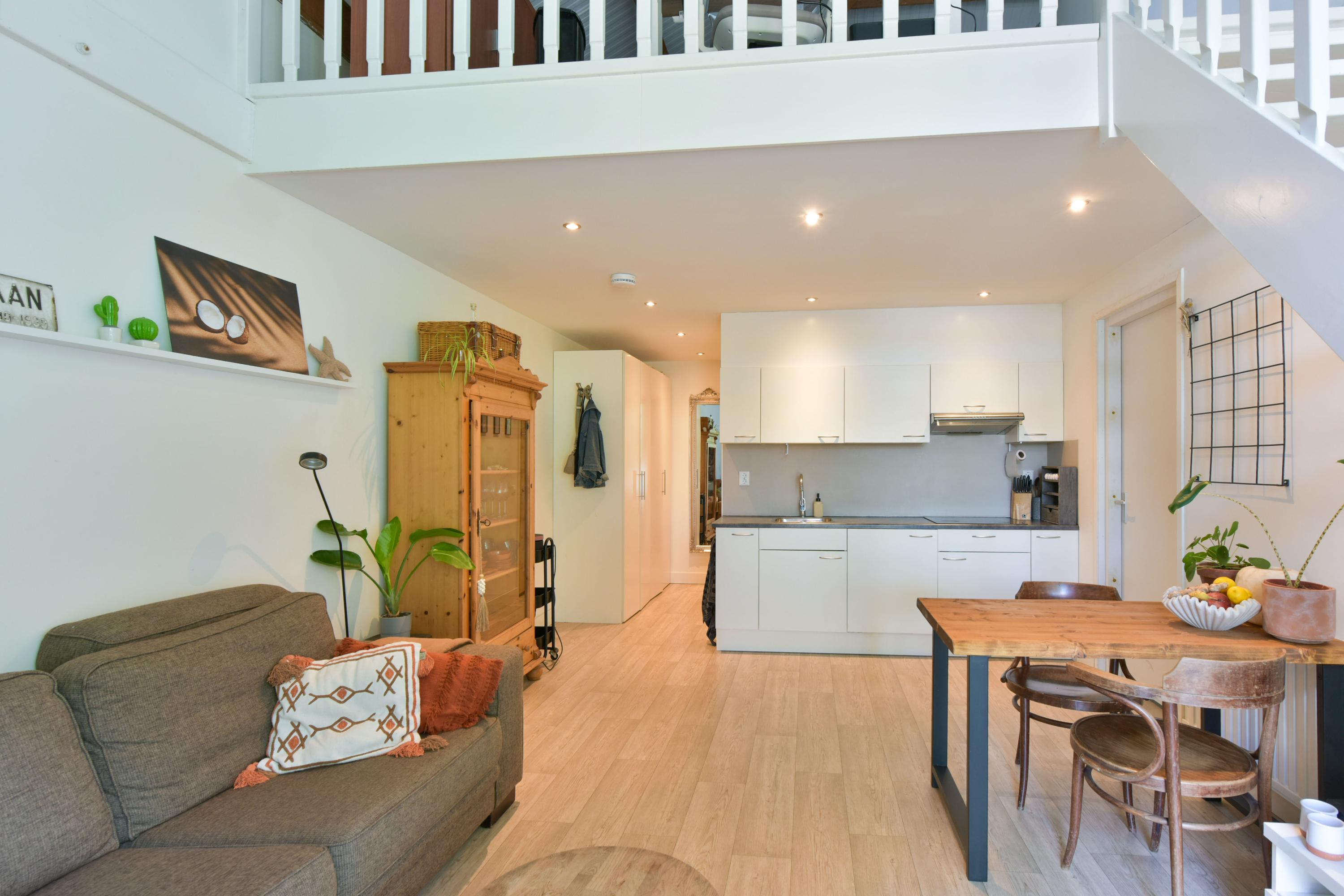 The ground floor has been recently modernised, with the bathroom renewed in 2024 and the kitchen updated in 2025. The spacious living room, featuring large windows and French doors opening onto the garden, forms the heart of the home. The modern kitchen with cooking island, high-quality appliances and bar area connects seamlessly to the living space. In addition, there is a bedroom with en-suite bathroom, a multifunctional room prepared for an additional bedroom or bathroom, and a utility room with access to the veranda and an additional storage area.