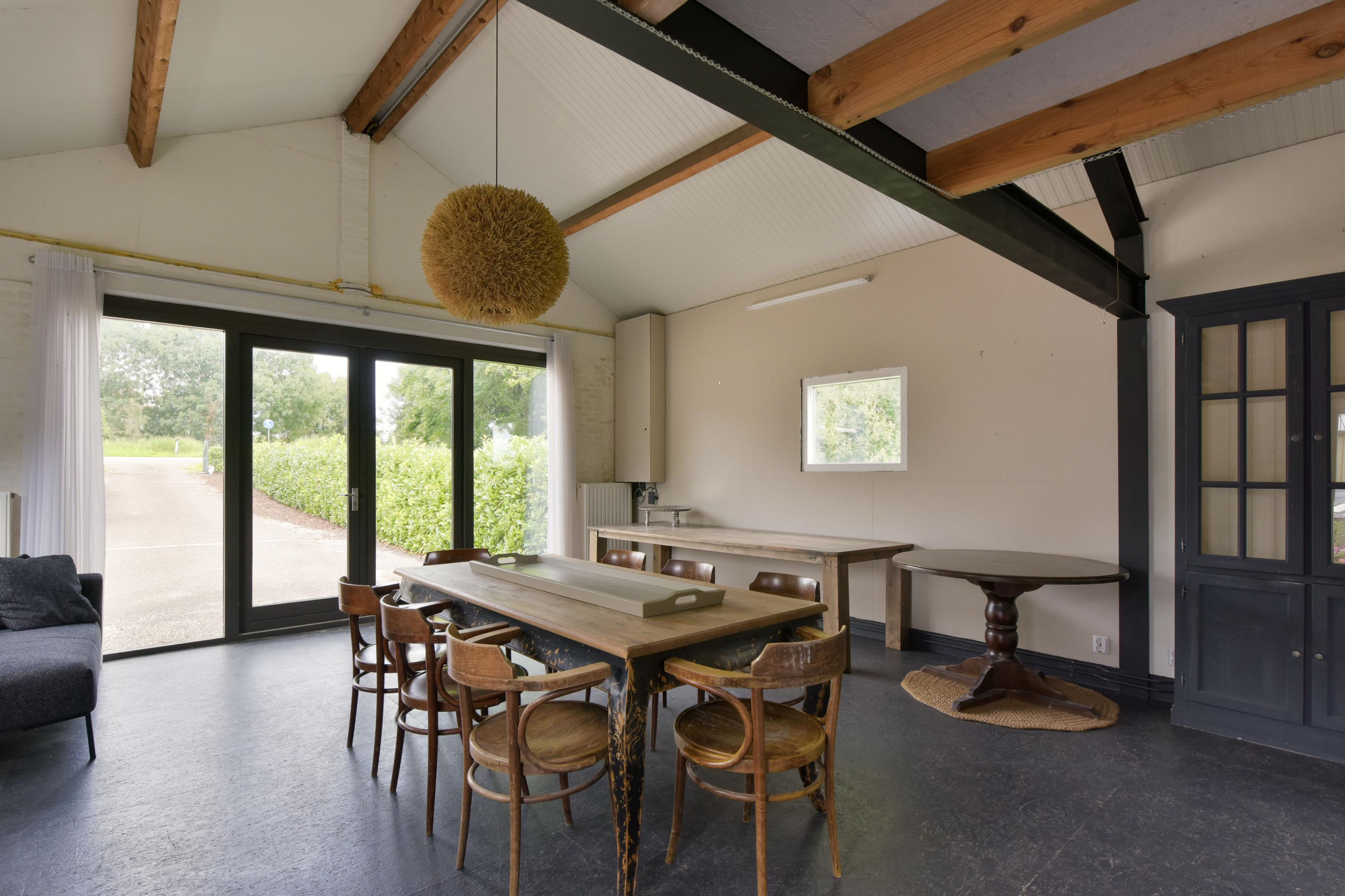 The former hay barn accommodates two independent guest residences, each with its own entrance, living room, kitchen, bathroom and sleeping loft. These units can be connected via an internal door but also function completely independently. In addition, there is a detached, fully heated studio with adjoining workshop, featuring a kitchenette, toilet and mezzanine — ideal for creative work, craftsmanship, storage or potential additional living space.