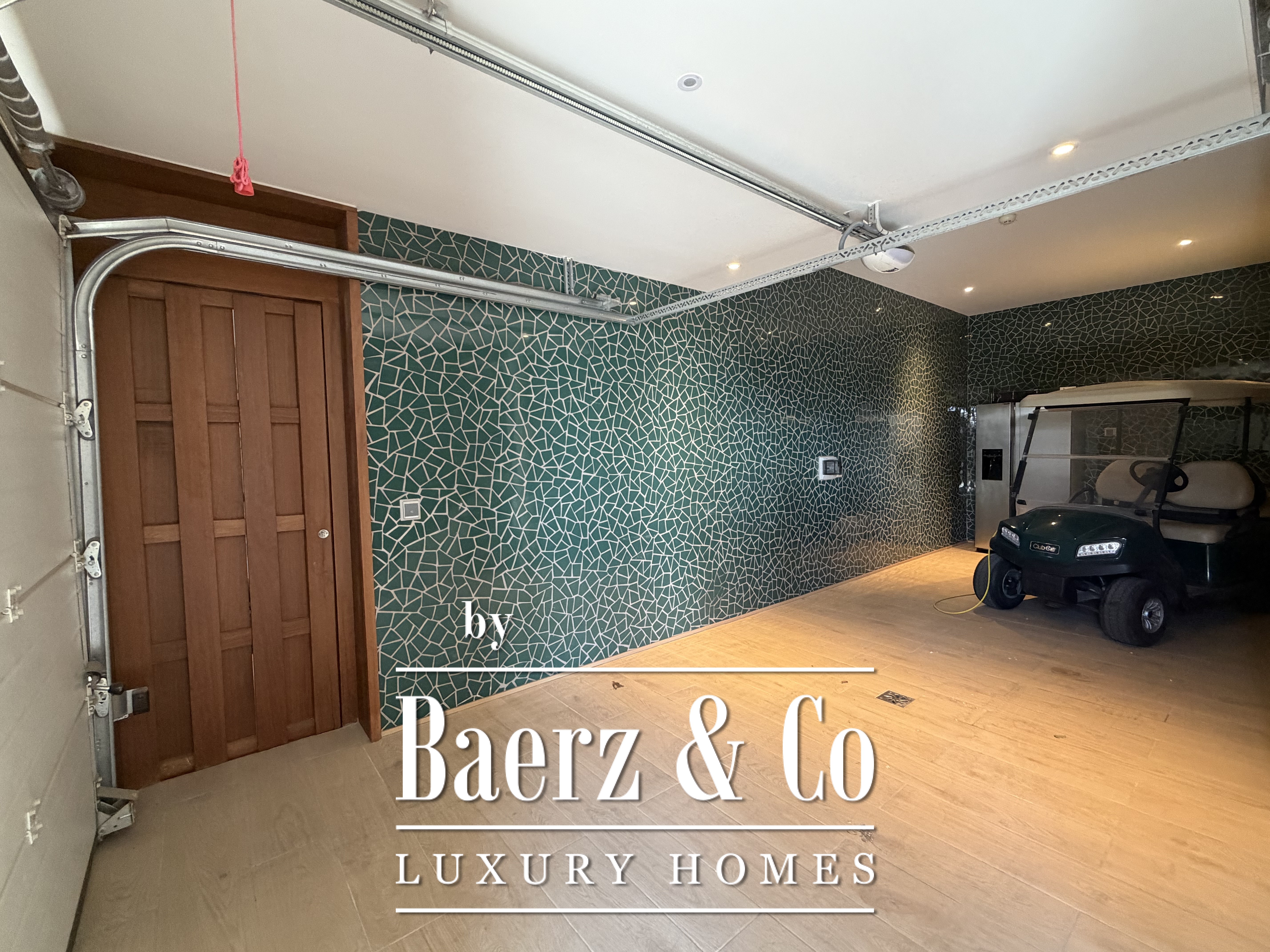 Outdoors, a private heated infinity pool forms the centerpiece, complemented by areas for al fresco dining and quiet retreat. The villa includes a garage for both car and buggy, and is offered fully furnished with luxury appointments, including outdoor pieces. Automatic blinds provide subtle light control while maintaining visual connection to the landscape.