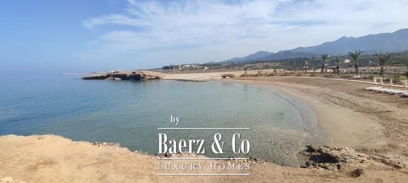 This 2-bedroom garden apartment with oversize terraces and generous private gardens is located in a quiet picturesque area with direct sea views. The apartment is situated within a beautiful holiday complex in an area of outstanding natural beauty beside the sparkling Mediterranean Sea. It is only 15 minutes drive from the world class Korineum Golf Course and a short drive to the bustling city of Kyrenia, with its famous antique harbour. A perfect site where residents are surrounded by gorgeous views of the sea, beach, parkland and the extensive Besparmak mountain range.