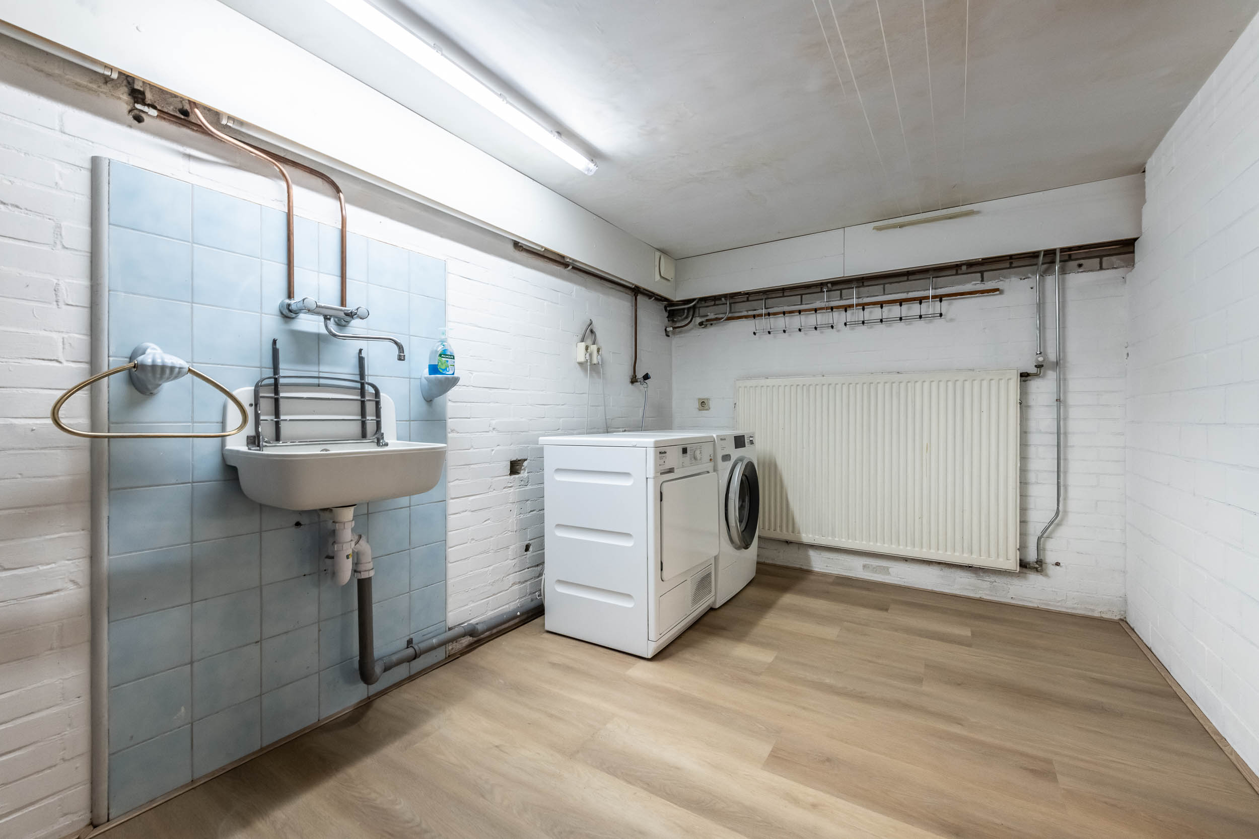 Hallway, indoor garage with cupboard wall, storage room, (bed)room, bathroom with shower, toilet and washbasin, spacious (fitness) room, large (play) room and a separate, spacious laundry room.