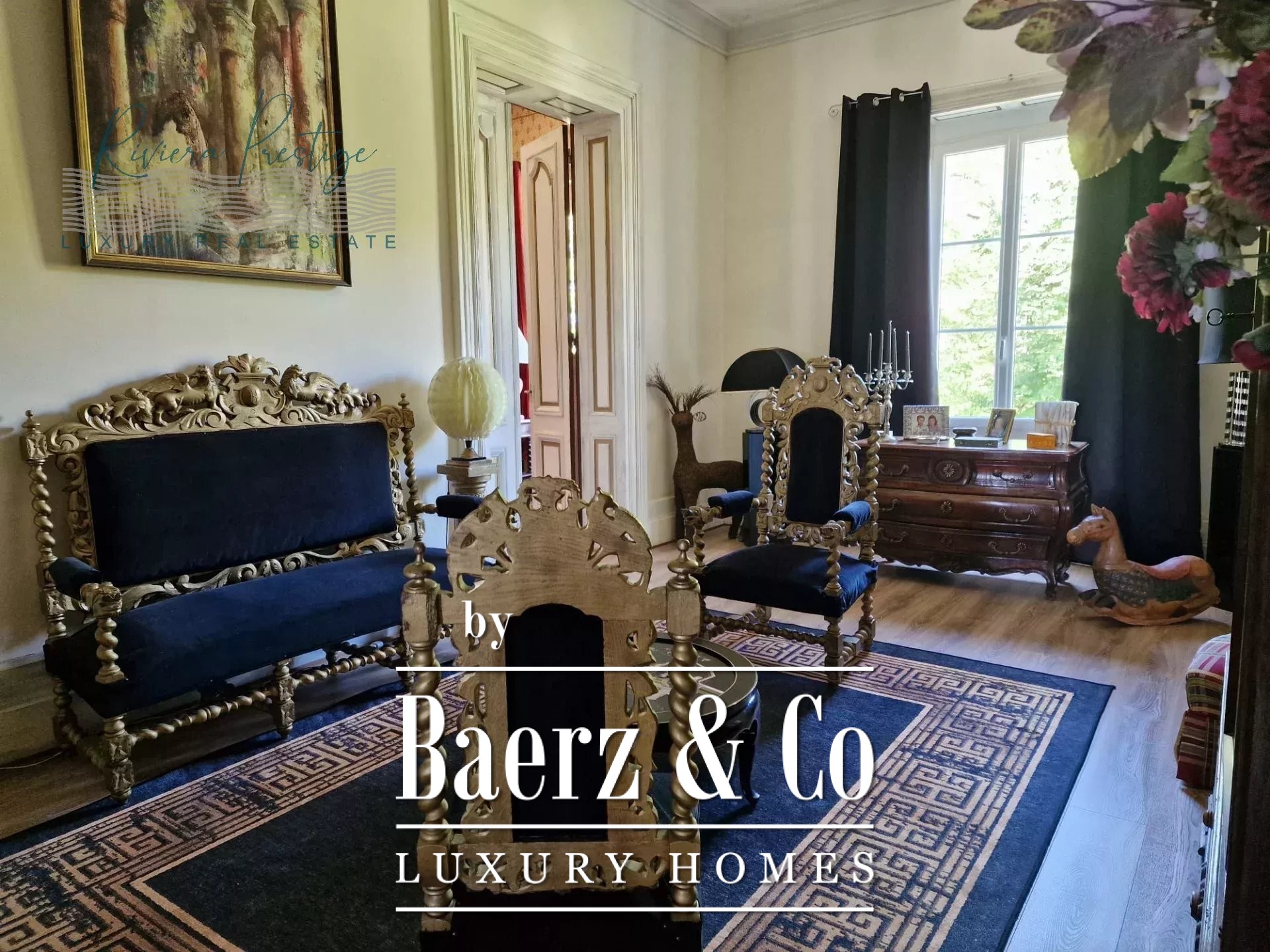 Inside, the expansive living areas are filled with natural light, highlighting the refined decor and architectural details. Each room has been thoughtfully designed to provide comfort and elegance. This property not only offers a luxurious lifestyle but also promises a unique opportunity to own a piece of French heritage in an idyllic location.