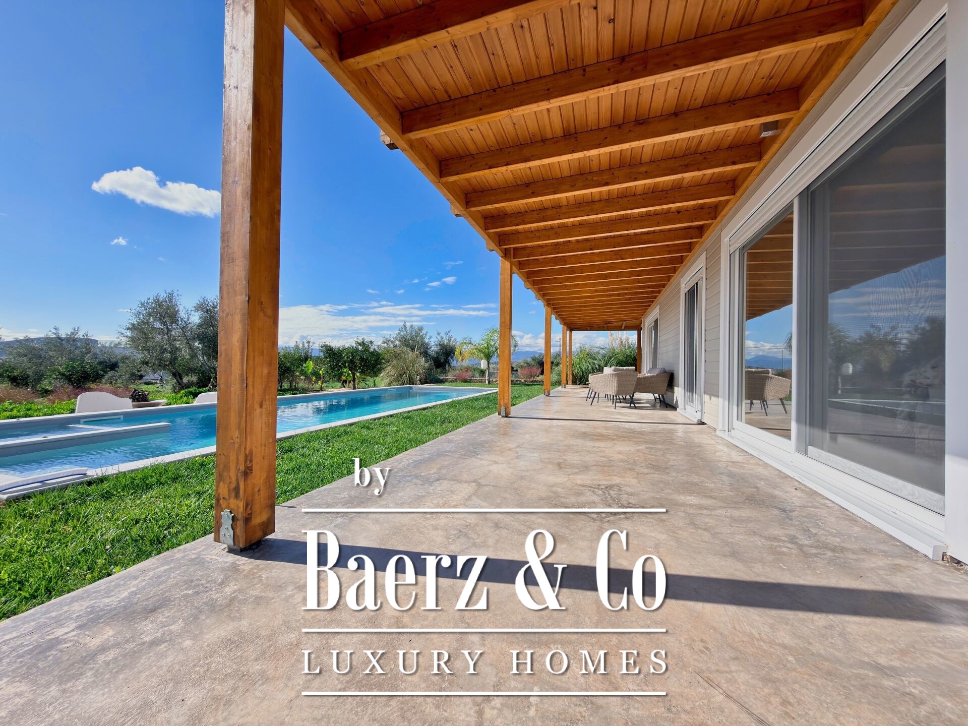 Detached house Agios Adrianos welcomes you a few kilometers from Nafplio, set quietly within a 6,900 m² garden. This 125 m² property, crafted by a renowned prefabrication builder in 2023, offers contemporary comfort just 10 kilometers from the coast. Spaces flow naturally from the open-plan living and dining area to a kitchen designed for ease, three bright bedrooms, and two refined bathrooms. An exterior staircase rises to a balcony giving panoramic mountain and nature views, while terraces connect seamlessly to a 4 by 13 meter pool, surrounded by uninterrupted vistas.