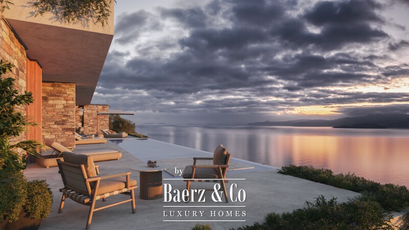 Set on a 1,560 m² plot, the property features a landscaped garden, a substantial swimming pool for restorative leisure, and private parking. Every detail is considered to elevate daily living, from the interplay of light and space to the thoughtful materiality that complements the natural setting. This luxury villa for sale in Agios Nikolaos Crete is defined by its balance of architectural precision and serene coastal atmosphere.
