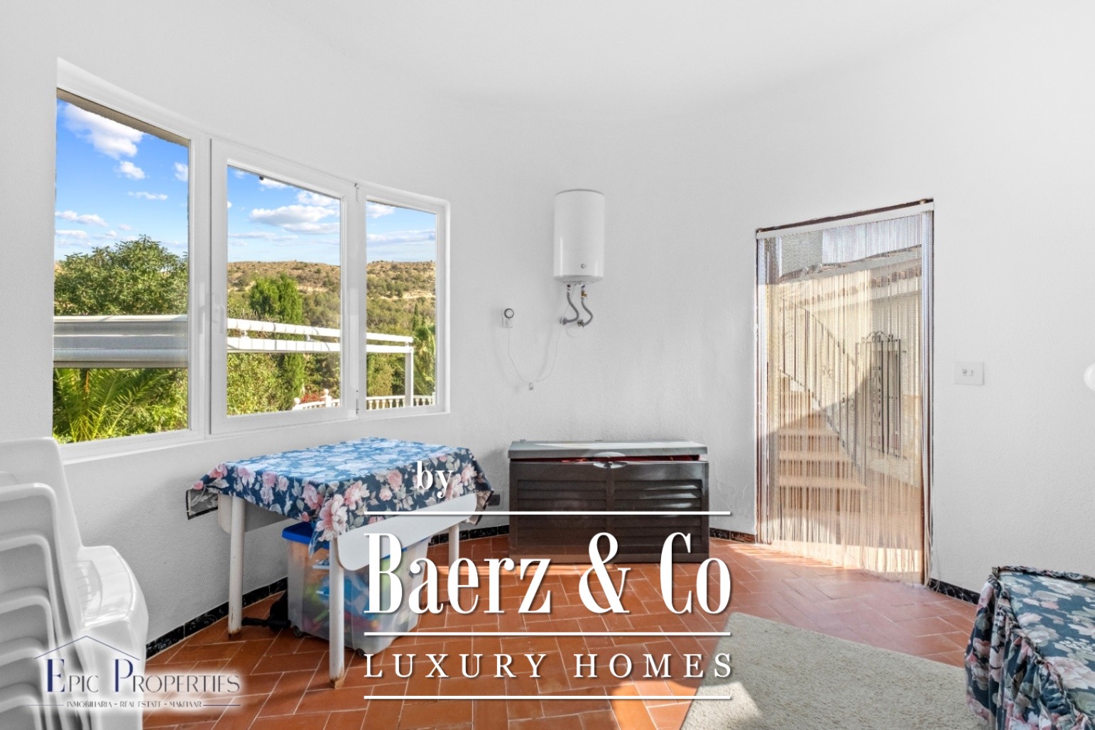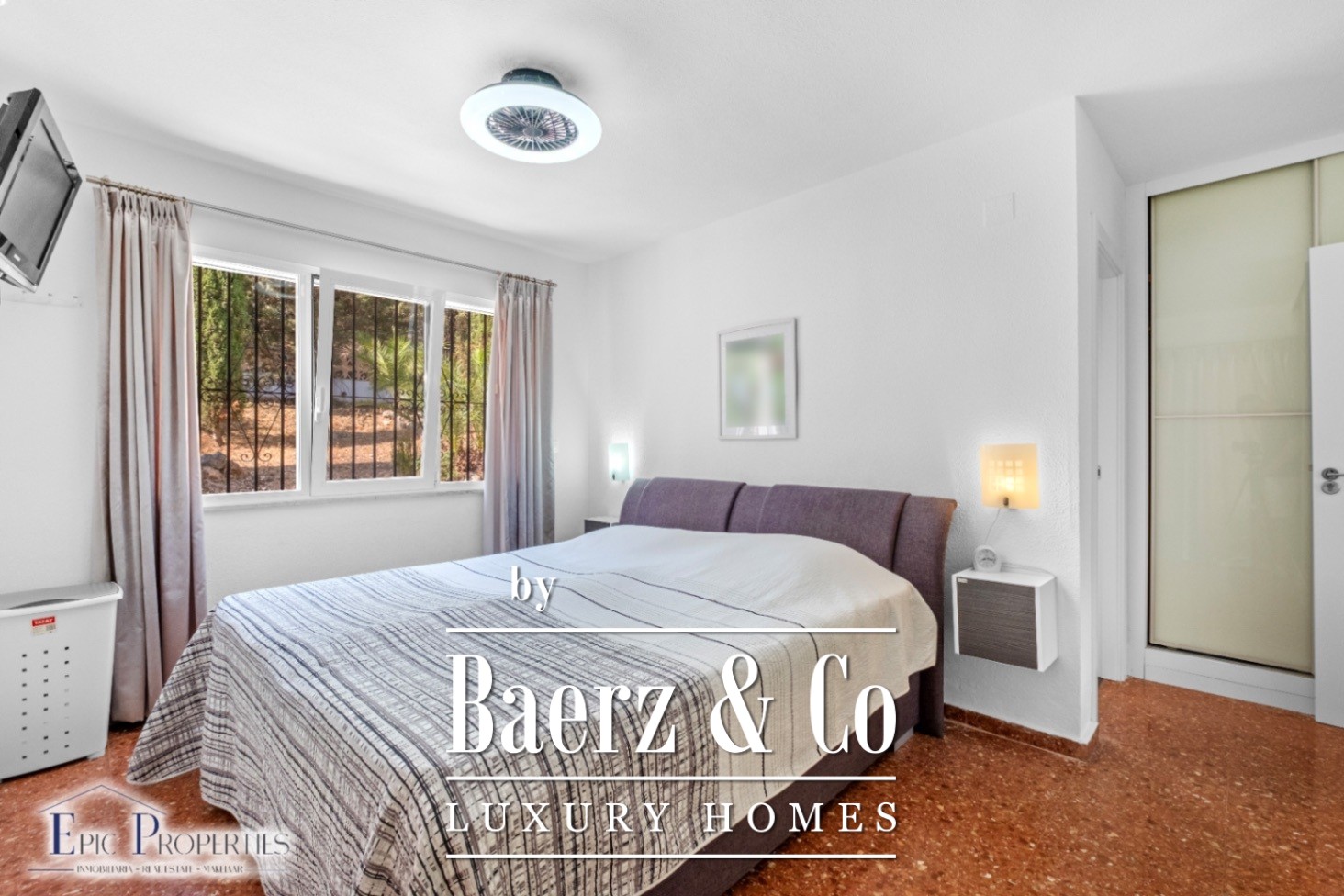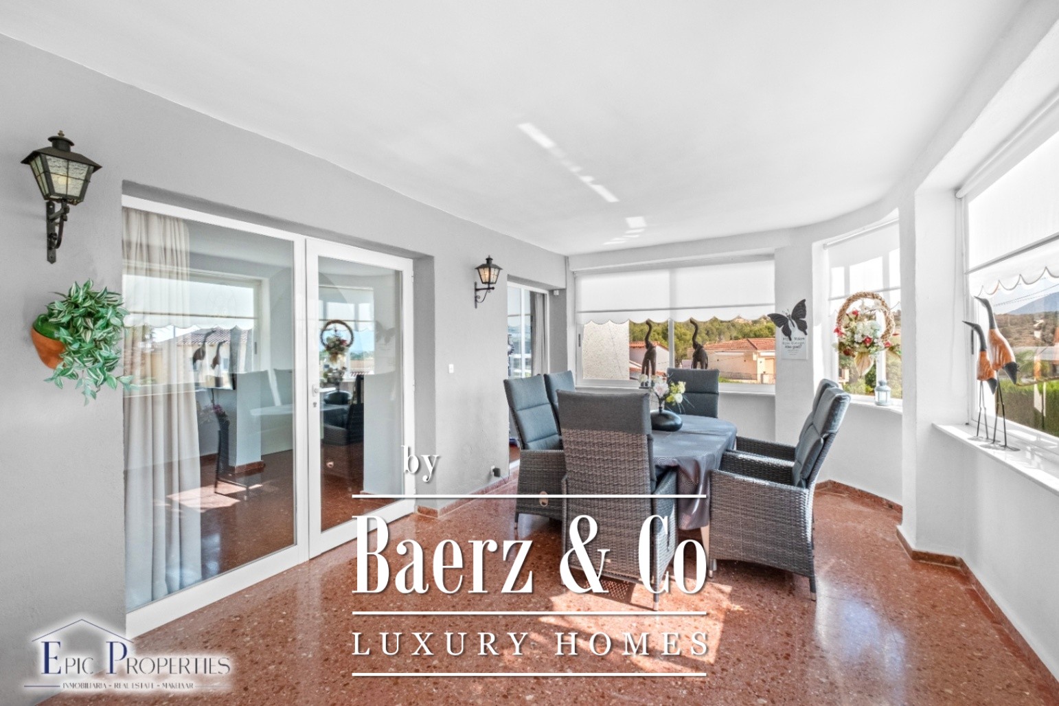 find a well-maintained garden with a private pool and spectacular mountain views. Additionally, it features an independent garage and an extra building that can be used as a storage room, guest house, or multifunctional space, complete with its own rooftop terrace. The house is equipped with solar panels and thermal solar panels for heating the pool. An ideal property for those seeking comfort, space, and tranquility, with all amenities within walking distance.