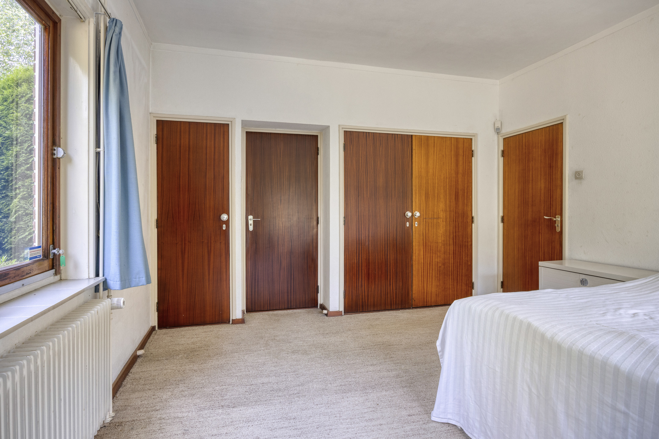 Upon arrival, you can park your car on your private driveway. The large driveway leads to the entrance of the home, opening into a hallway that provides access to various rooms on the ground floor. To the right of the hallway, you'll find two bedrooms. The larger of the two is very spacious and features an en-suite bathroom with a bathtub, toilet, and double washbasin. The second room is perfectly suited as a child’s bedroom, office, or hobby room. This layout also makes the home ideal for single-level living or working from home. Next to the second bedroom is access to the cellar storage.