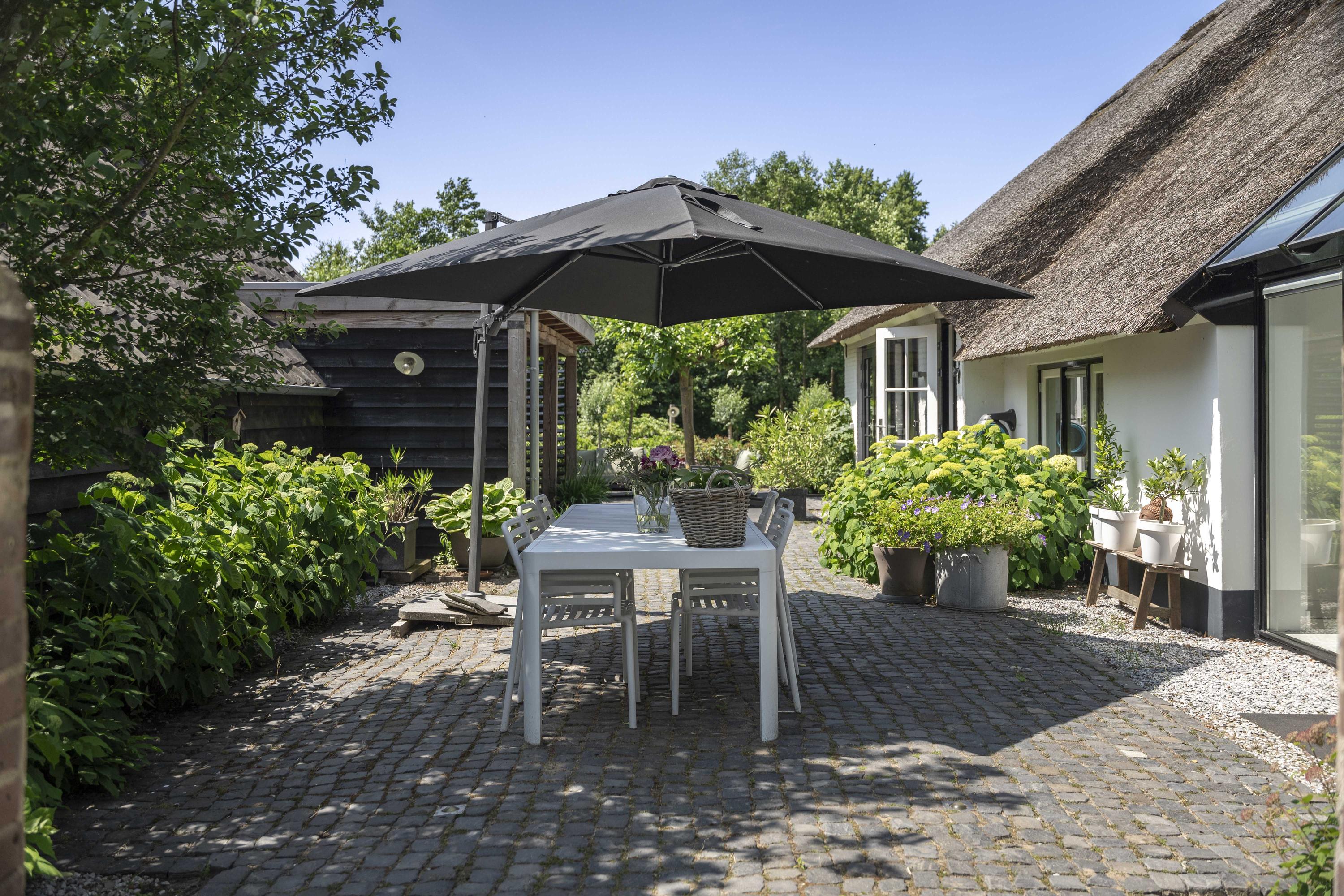 Woonboerderij Almen invites a rare dialogue between Dutch tradition and contemporary vision, offering a waterfront retreat defined by its thatched roof and crisp white façades. This woonboerderij Almen property, originally built in 1926 and transformed in recent years, rests quietly at the head of the dike, moments from the tree-lined byways of Zutphen and surrounding historic towns. The drive unfolds along a gravel path, punctuated by mature rhododendrons, and leads to a secluded plot of 8,415 m².