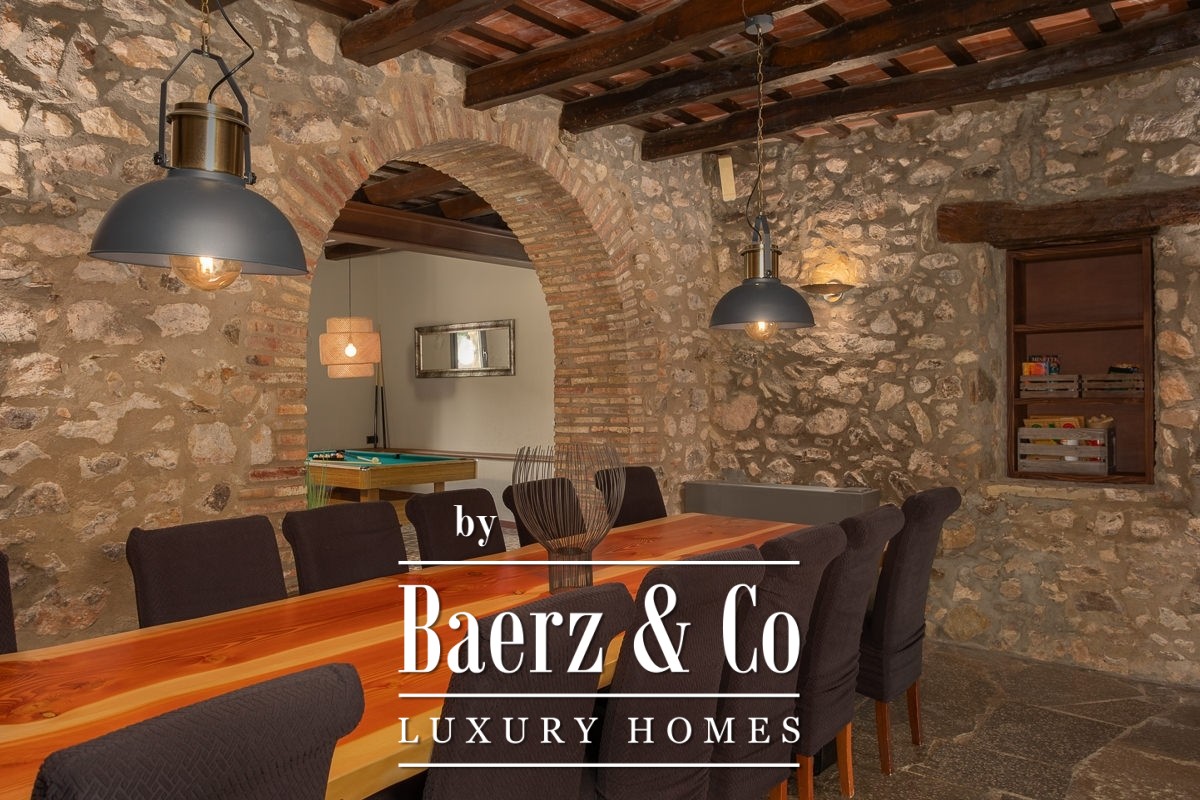 Masia for sale Amer presents a rare opportunity to own an authentic piece of Catalan history. Dating to 1720, this remarkable 645 m² masia has been meticulously restored across a 20,245 m² private estate, elevated above the Amer Valley with uninterrupted views of La Selva and the surrounding mountains. Stone, light, and space define the ambience, while a curated hospitality concept is already established, offering both lifestyle and business continuity. The main residence provides five elegant bedrooms and six bathrooms, refined living spaces, and a professional kitchen. Contemporary comfort coexists with heritage, underscored by air conditioning, heating, and high-speed Wi-Fi throughout. A wellness suite with jacuzzi and dedicated relaxation areas adds a layer of retreat, complemented by terraces and a large illuminated swimming pool tied seamlessly to the manicured gardens.