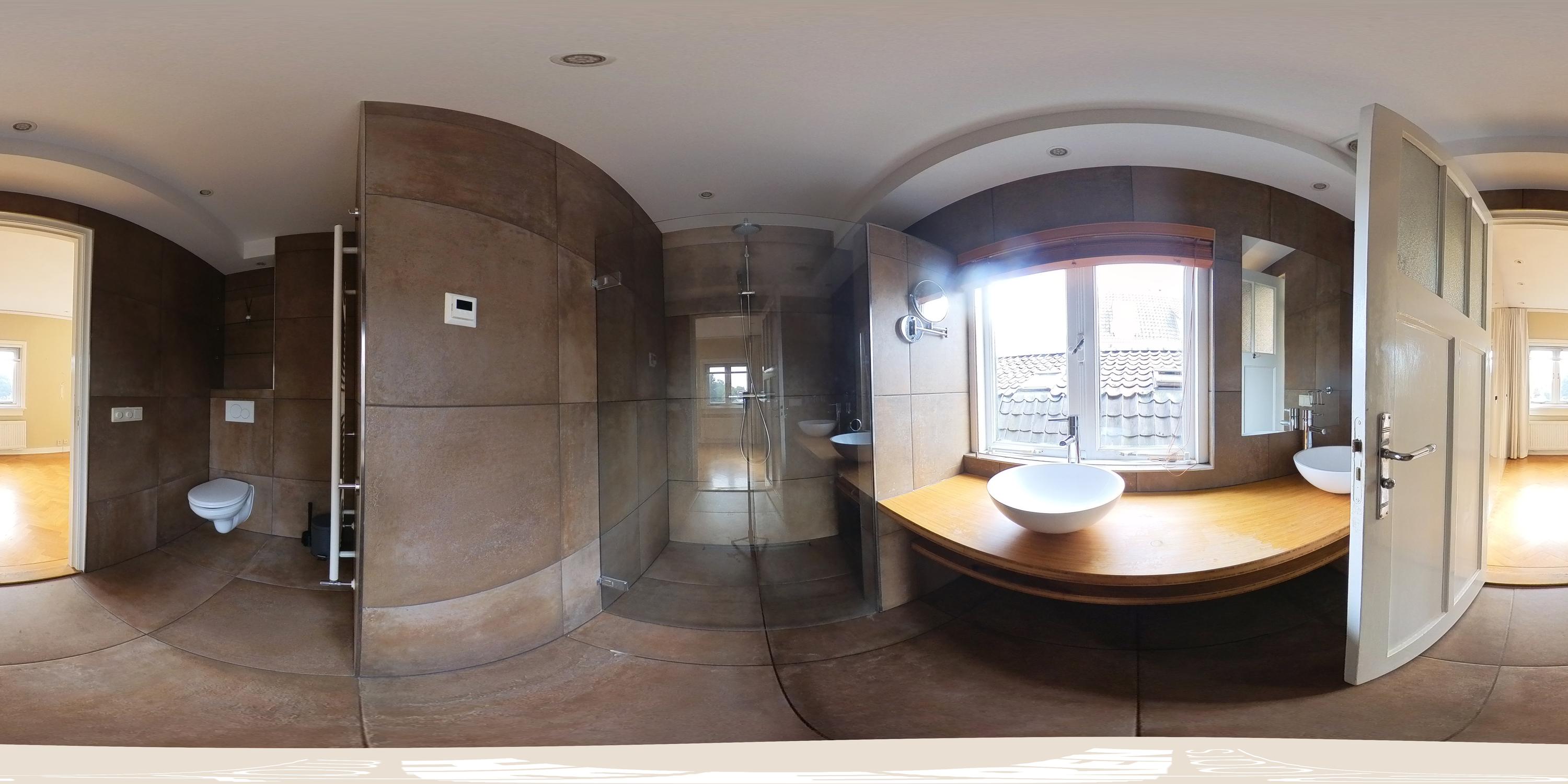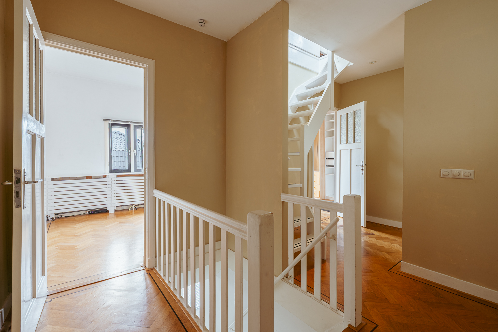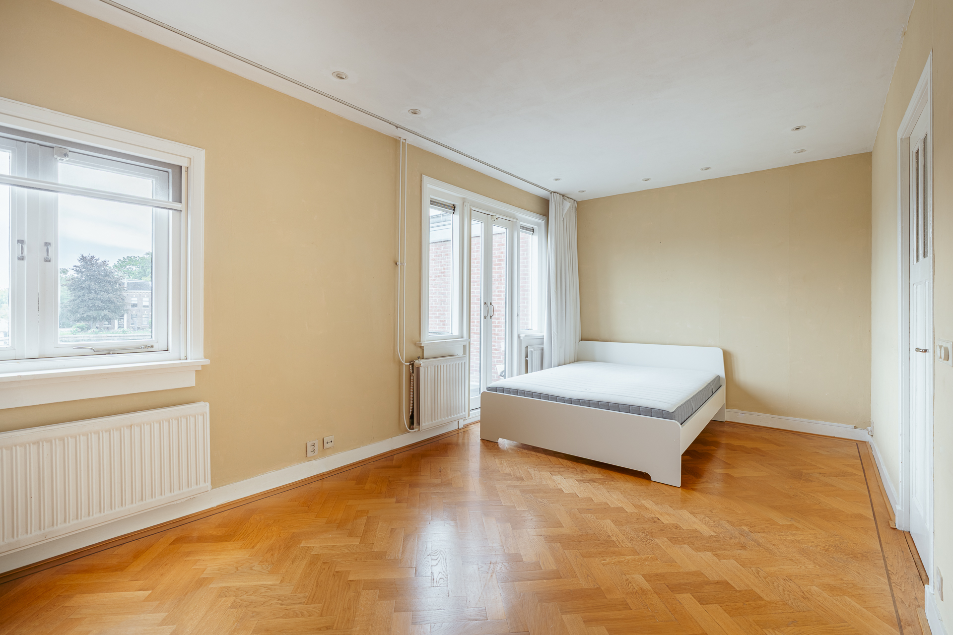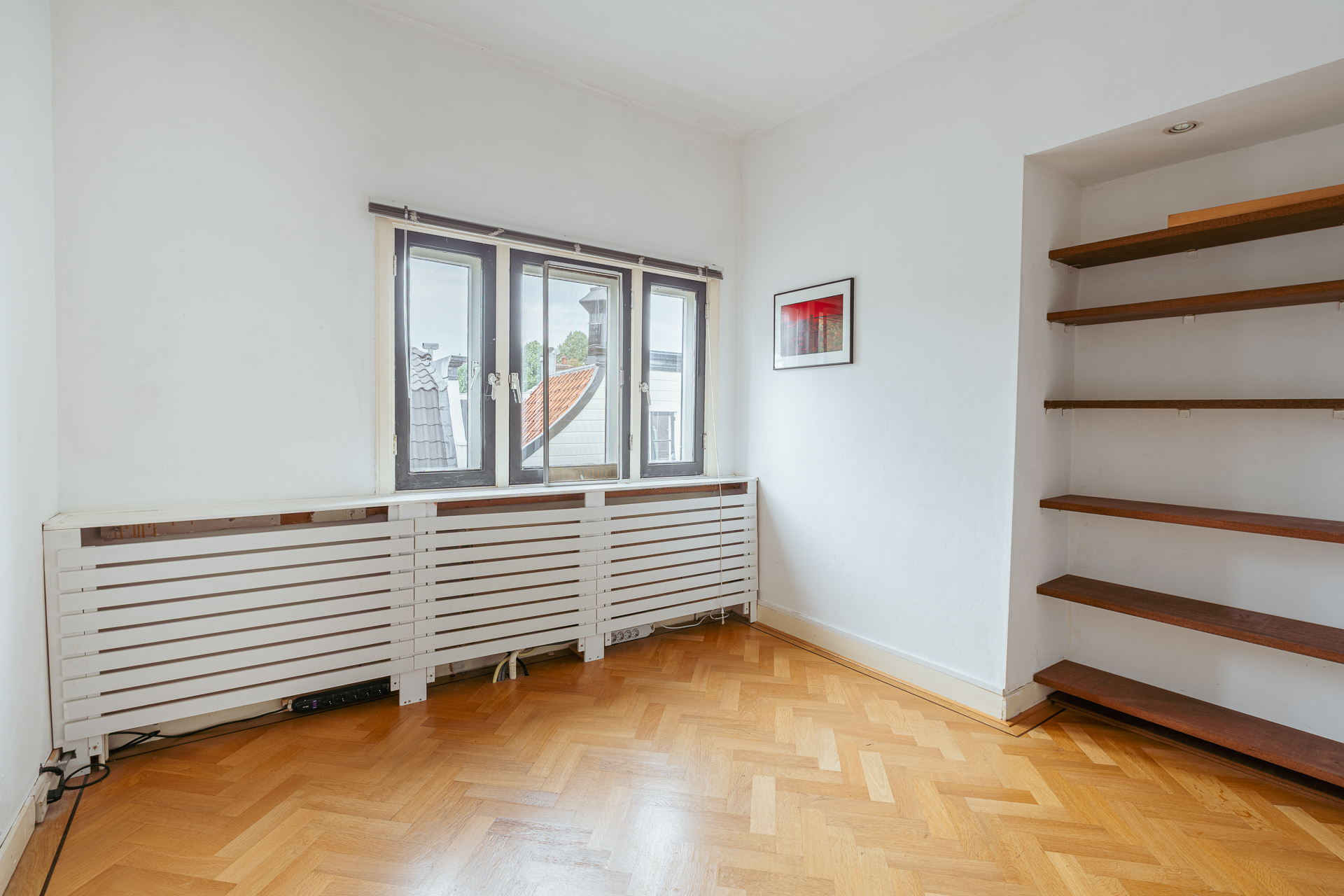 The spacious landing gives access to three bedrooms and the bathroom. The master bedroom is located at the rear and features double French doors opening onto a large balcony of approx. 17 m² with breathtaking views over the Amstel. The room is generously sized and finished with a beautiful wooden floor.