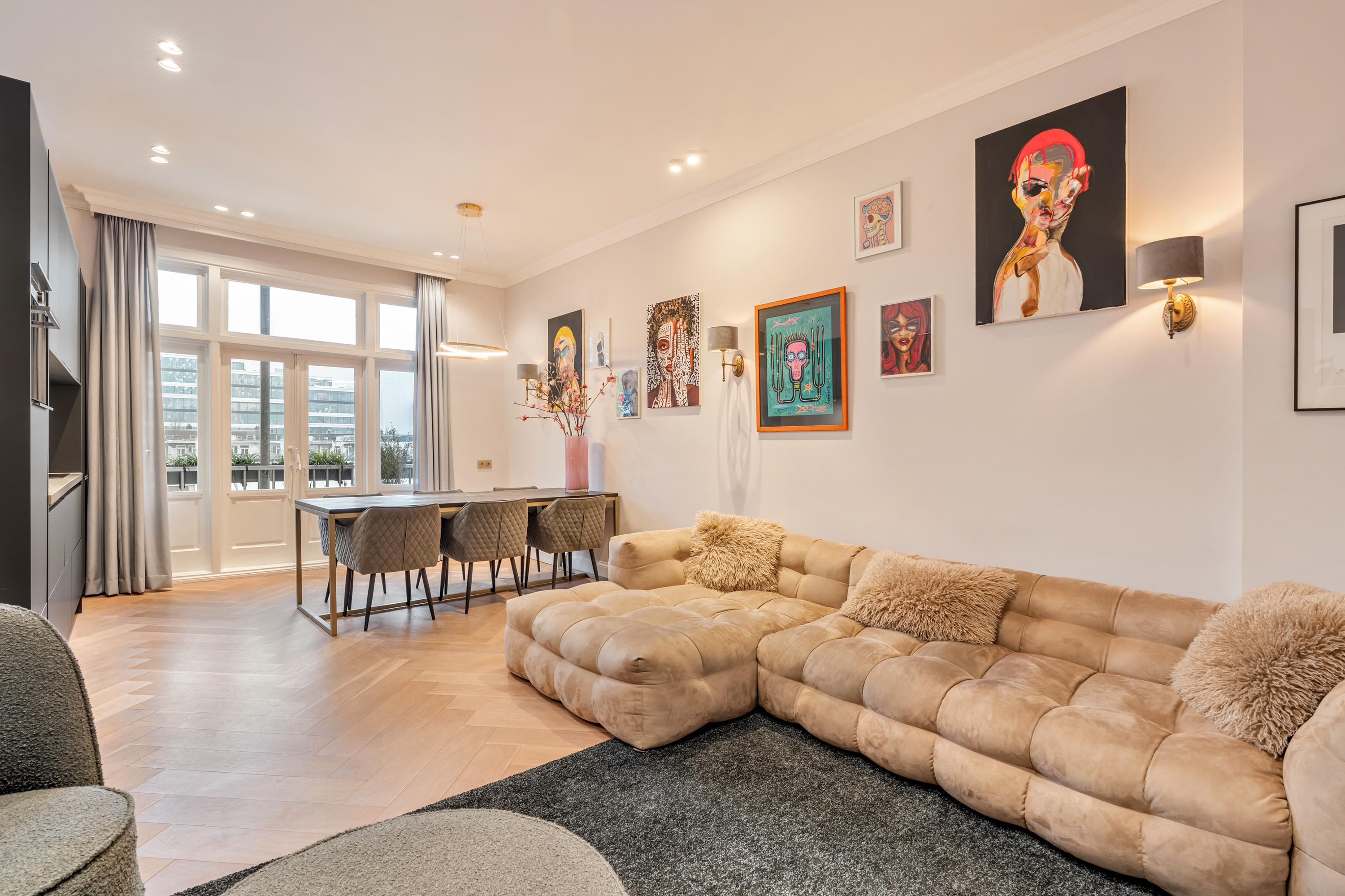 Fully renovated, high-end apartment of approximately 82 m², featuring high ceilings (3.16 m), three bedrooms, a luxurious bathroom, a sunny balcony, and a well-proportioned rooftop terrace (approx. 33 m²) complete with an outdoor kitchen and outdoor bath. The apartment is situated in a well-maintained building, which was redivided in 2023, in one of the most desirable locations along the Amstel.