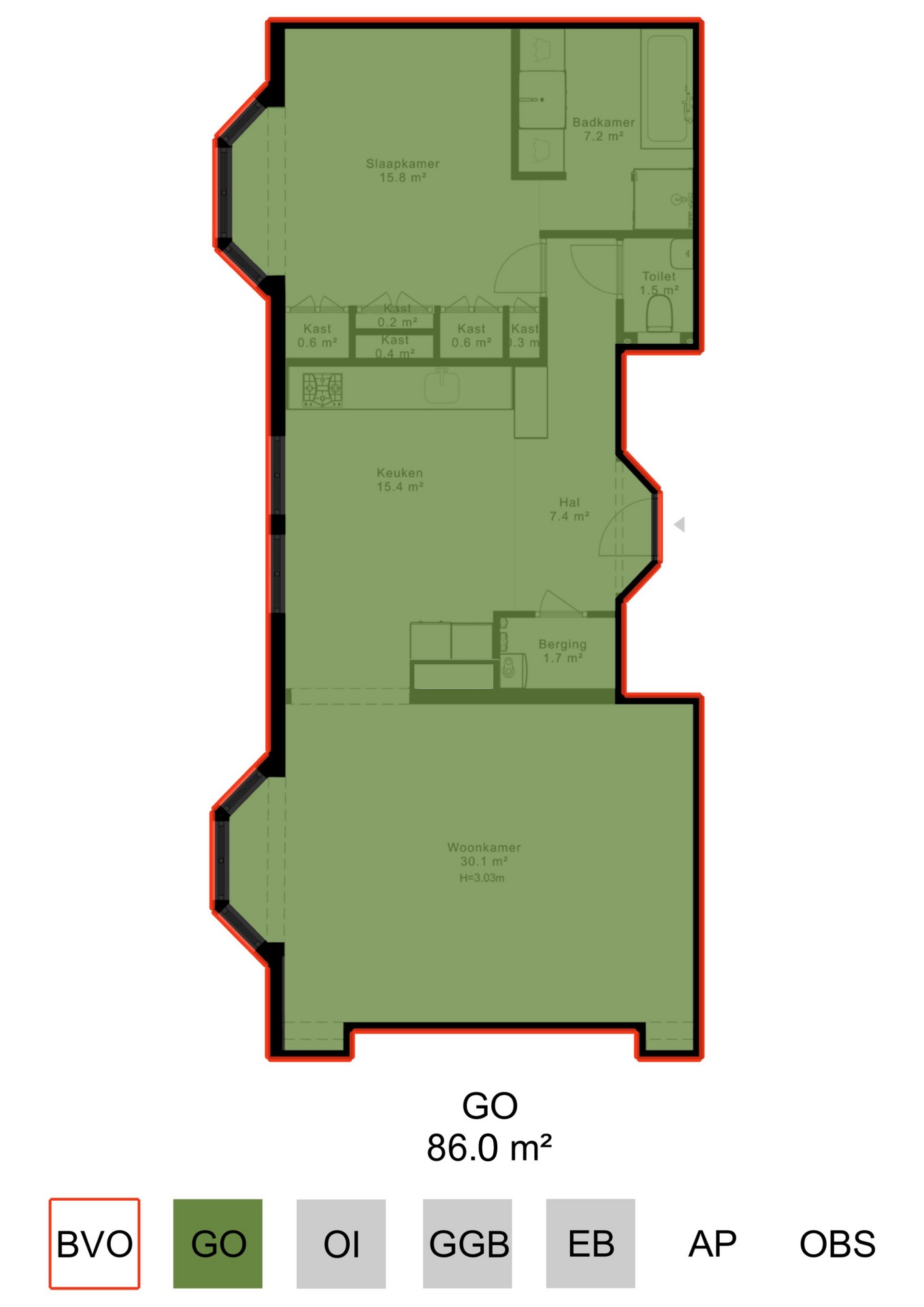 - Apartment right of approximately 86 m² (measured in accordance with NEN2580 measurement standards)