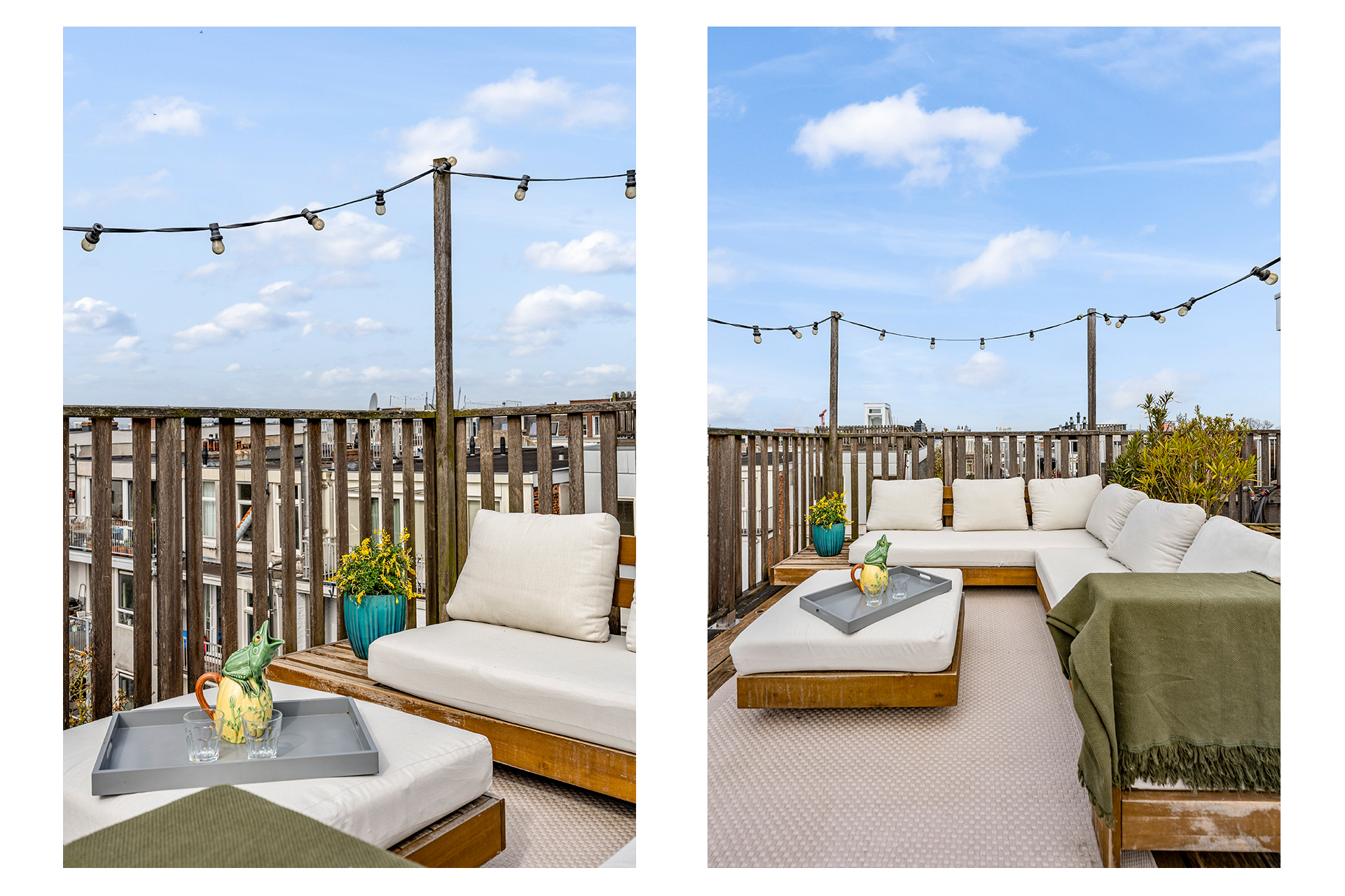 Situated in the heart of De Pijp, we are pleased to offer this well-laid-out upper-floor apartment of approximately 103 sqm, spread over multiple levels and featuring a generous rooftop terrace of approximately 30 sqm. The property comprises three bedrooms and a bright living floor with an open-plan kitchen, with the layout thoughtfully reversed to maximize natural light and privacy. A unique home offering character, space, and an exceptional rooftop terrace with 360-degree sun exposure, located in one of Amsterdam’s most sought-after neighborhoods.