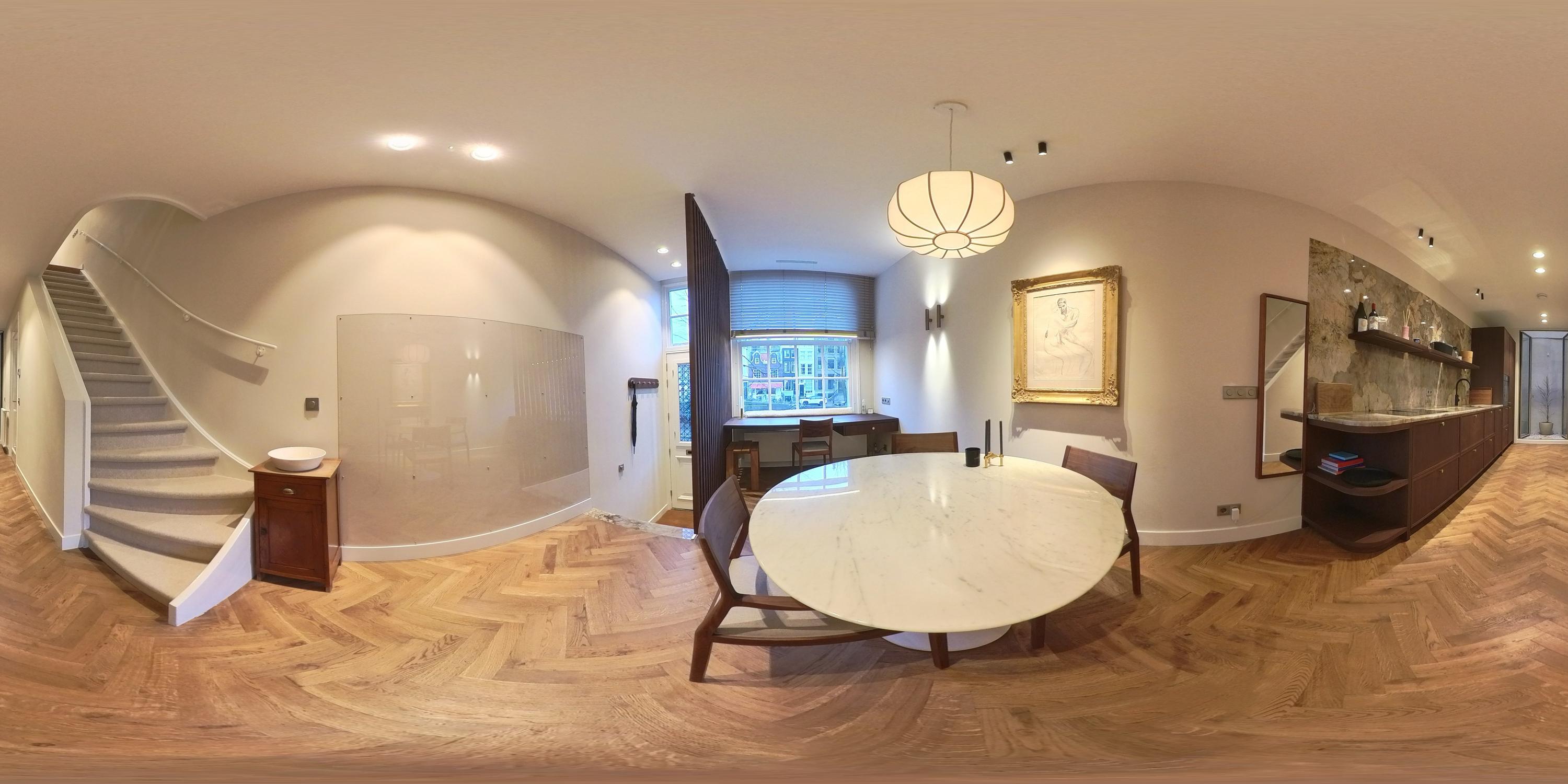 The first floor is designed as a stylish salon. This level features an oak herringbone parquet floor and large windows at the front, offering beautiful views over the Herengracht and excellent natural light.