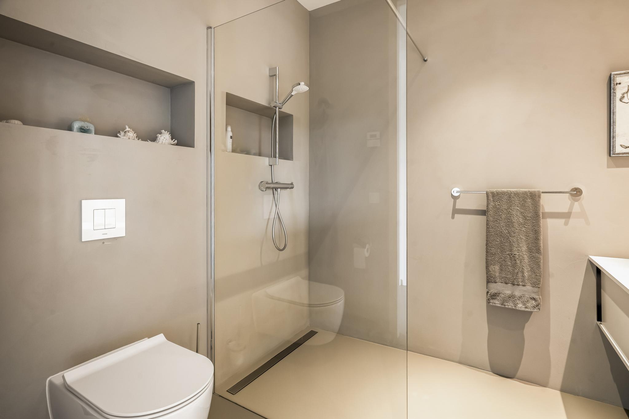 The intermediate bedroom is currently set up as a laundry room but is also very suitable as a bedroom. The second bathroom on this floor features a walk-in shower, toilet and vanity unit.