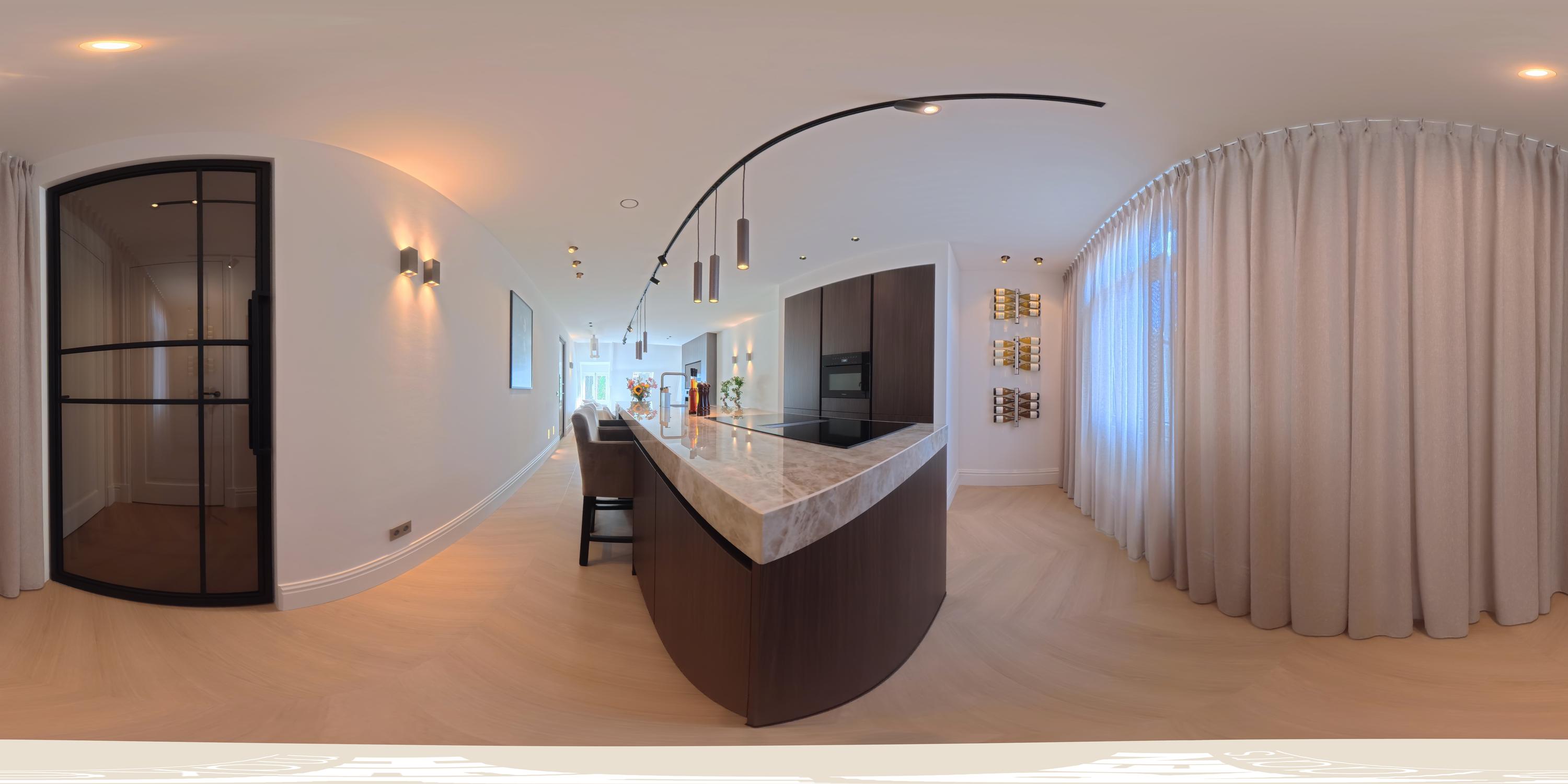 Via the communal staircase, you reach the entrance to the property on the third floor. From your private entrance, a neatly renovated staircase leads up to the apartment on the fourth floor. Upon entering, you immediately notice the warm and stylish ambiance, thanks to carefully chosen materials, atmospheric lighting, and impeccable finishes. The apartment has been renovated to a high and luxurious standard, with great attention to detail. Modern black steel doors combined with classic elements give the home a contemporary yet timeless feel, something that runs consistently throughout the property.