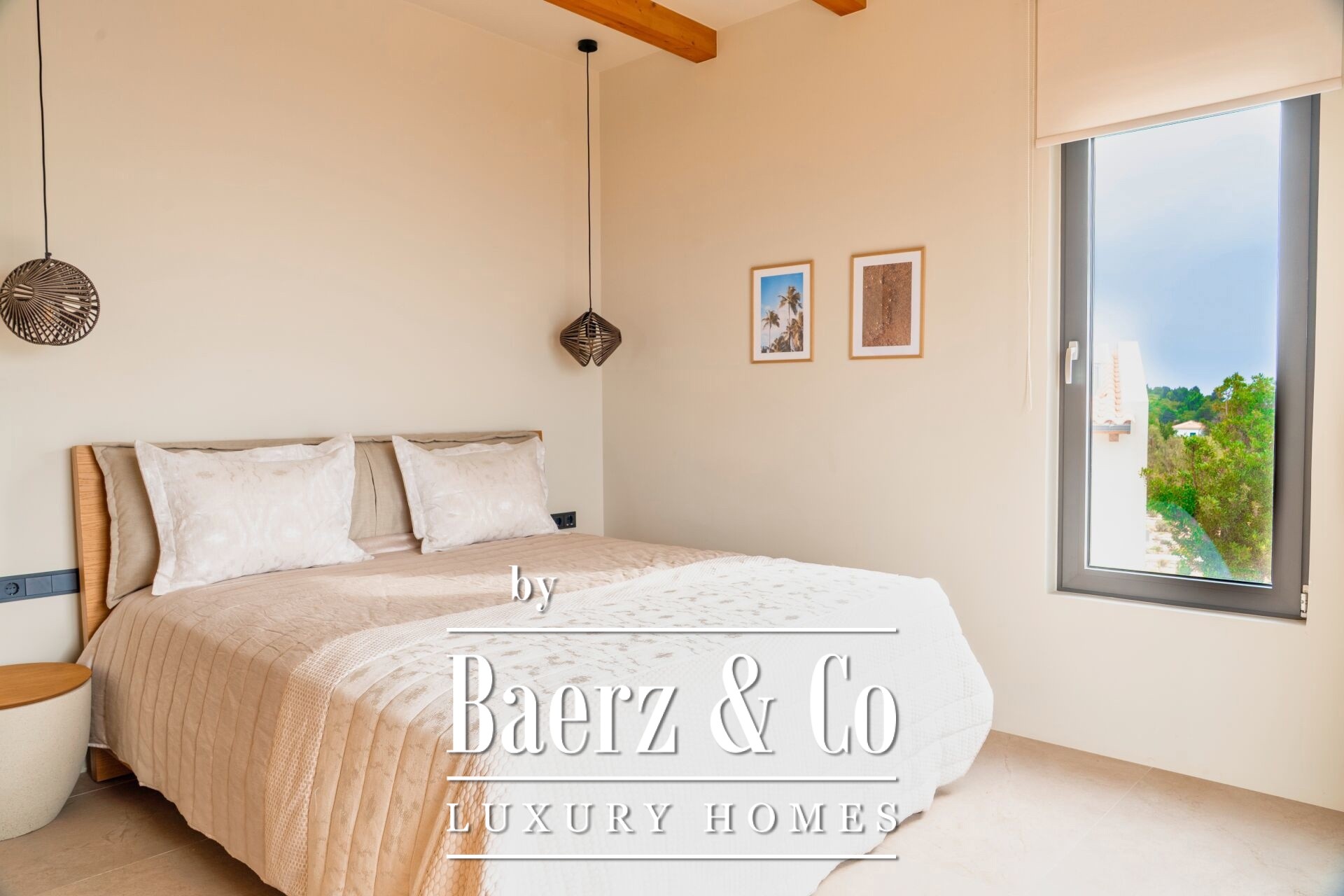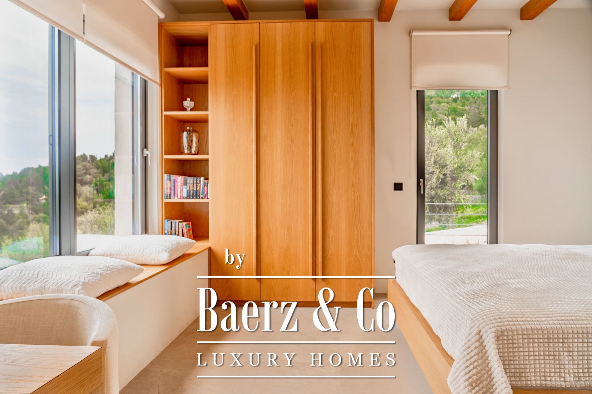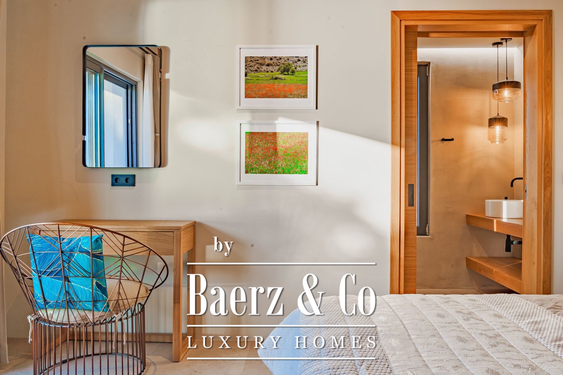 Completed in 2024 to energy class A standards, the villa features high-spec materials, fan coil and air conditioning systems, a solar water heater, and double-glazed aluminum frames for year-round comfort. Security is discreetly integrated with a security door and alarm. Full autonomy is ensured by a 35-cubic-meter underground water tank.