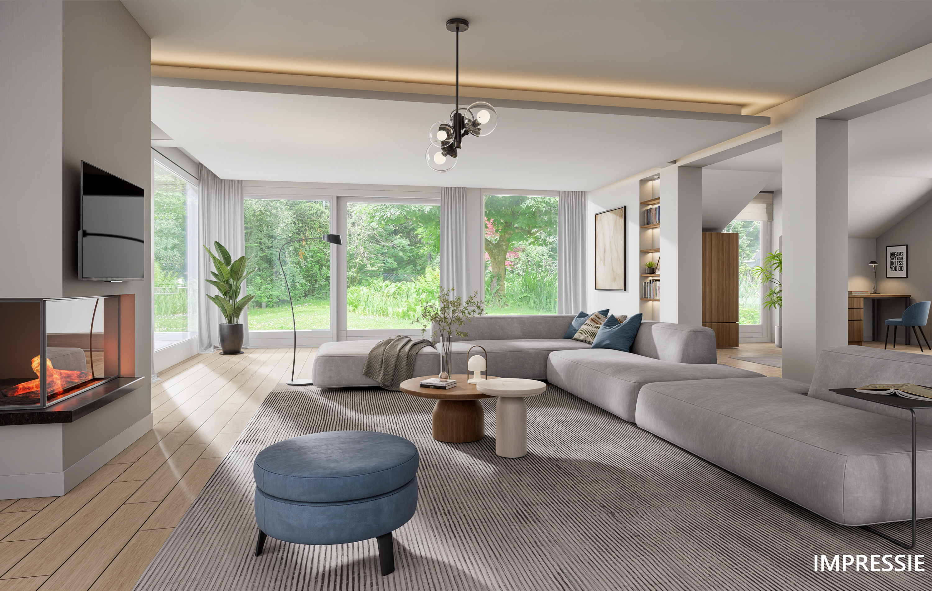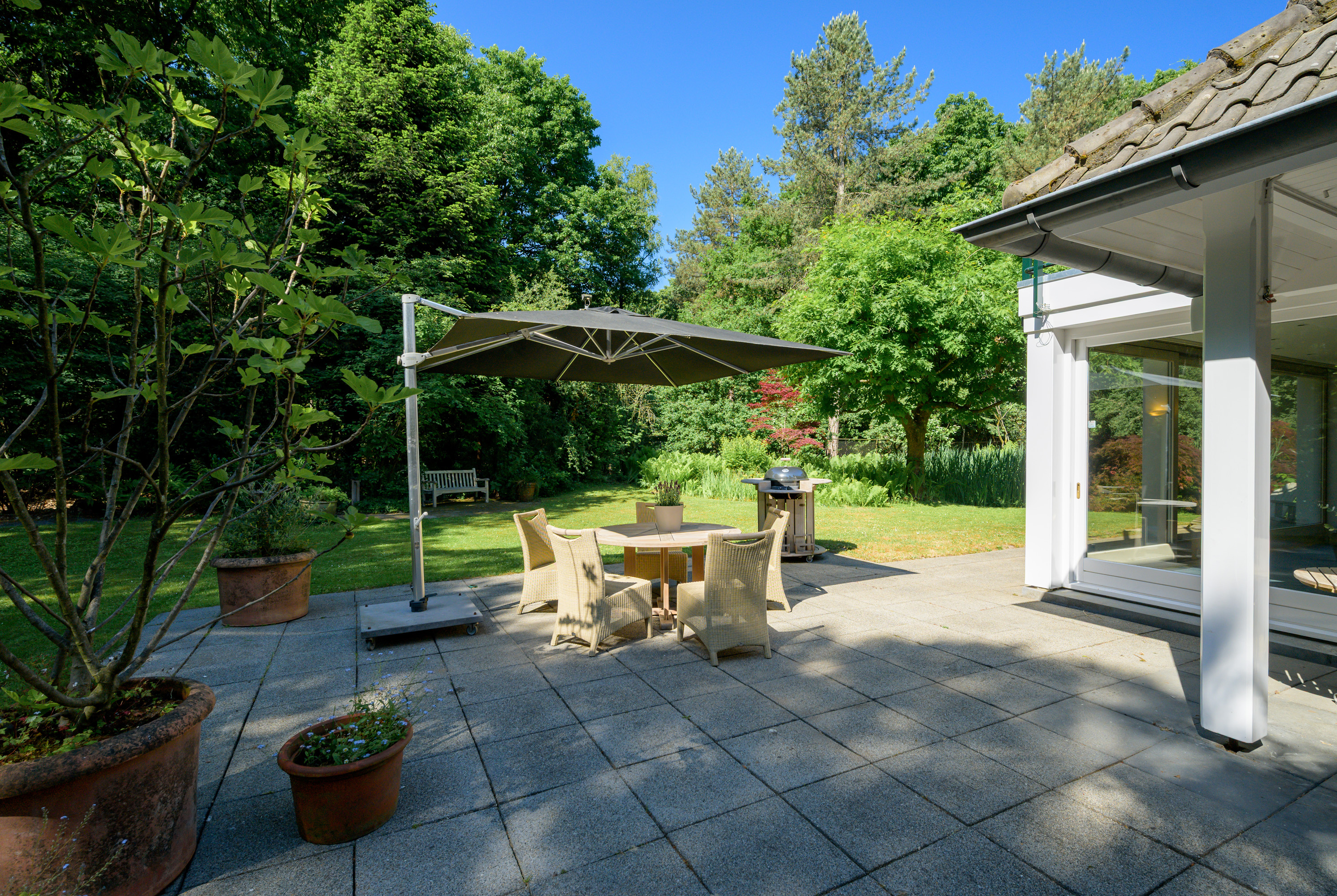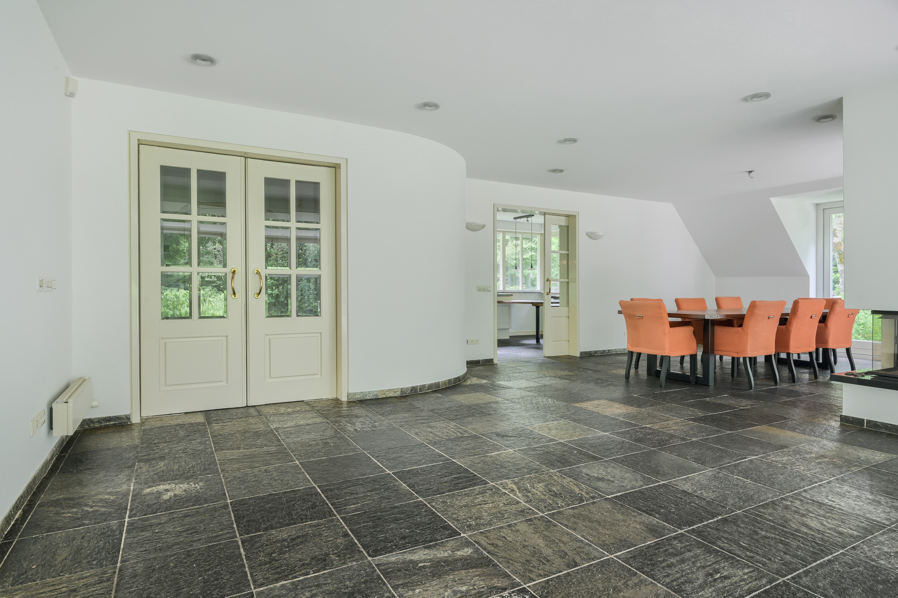 Villa Baarle-Nassau stands on a 4545 m² plot at the forest’s edge, a unique offering where privacy and versatility meet. This 290 m² residence welcomes with understated architectural detail, set within mature woodland gardens. The villa is designed to accommodate large families, multigenerational living, or a home-based business with exceptional ease and comfort.