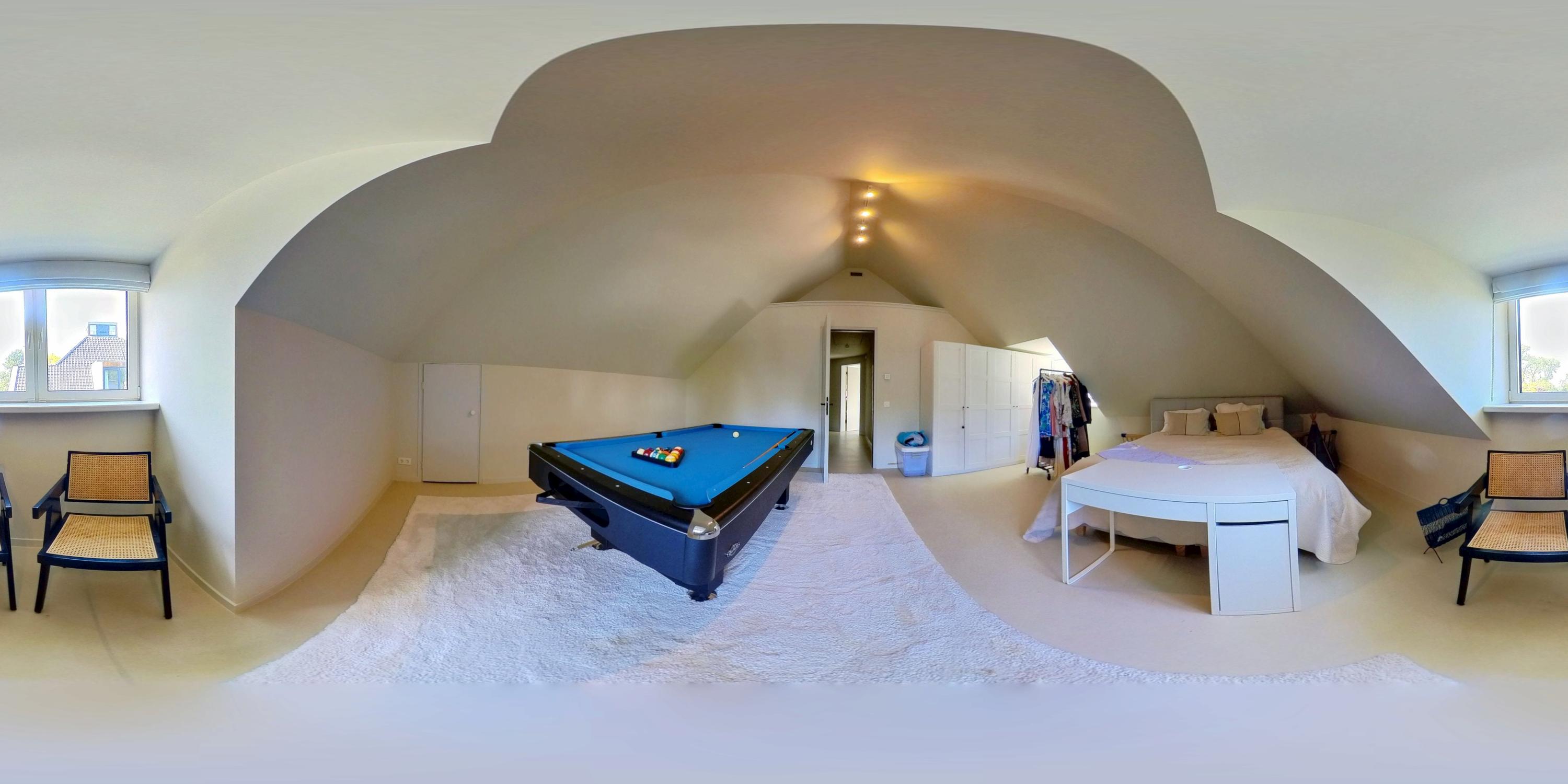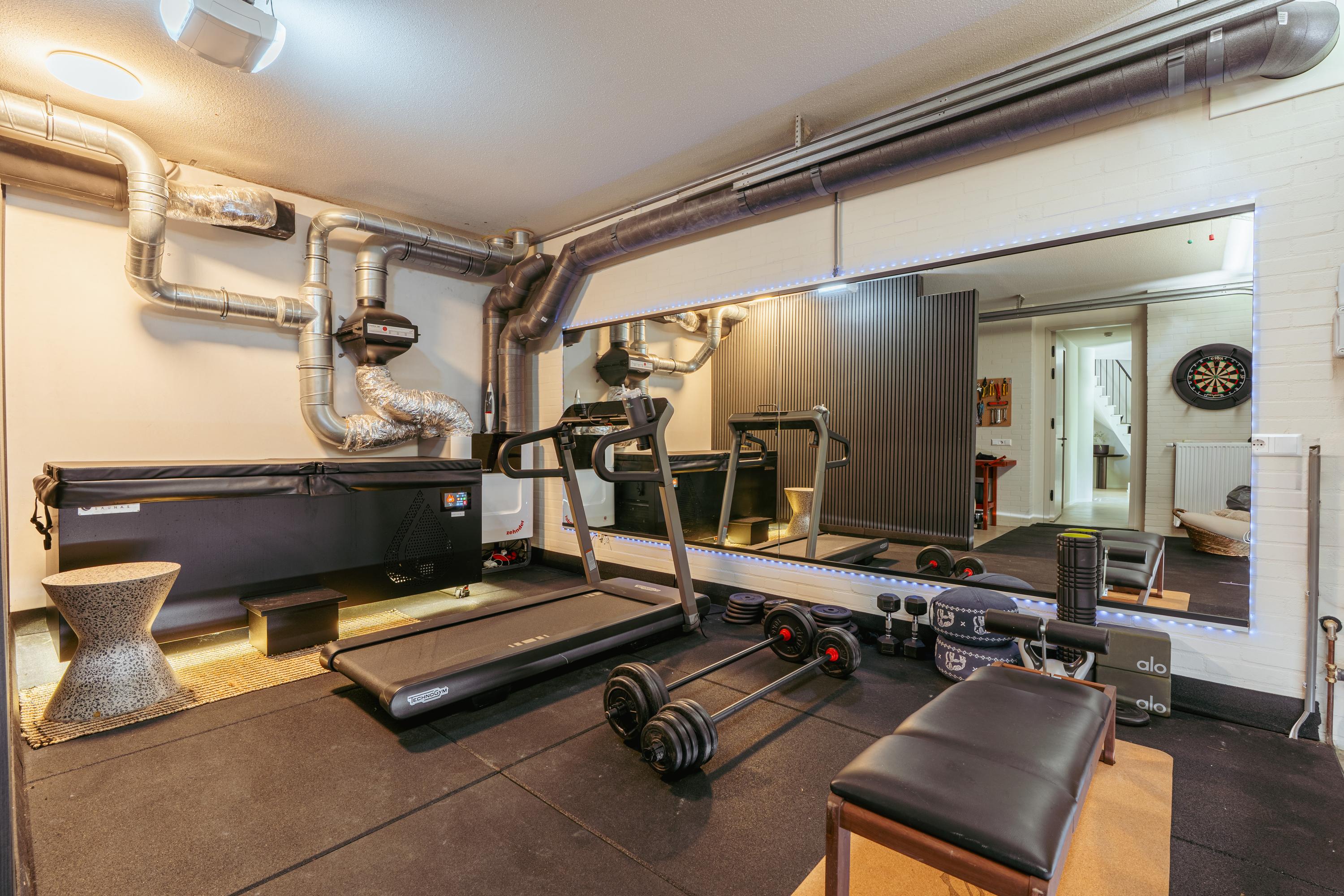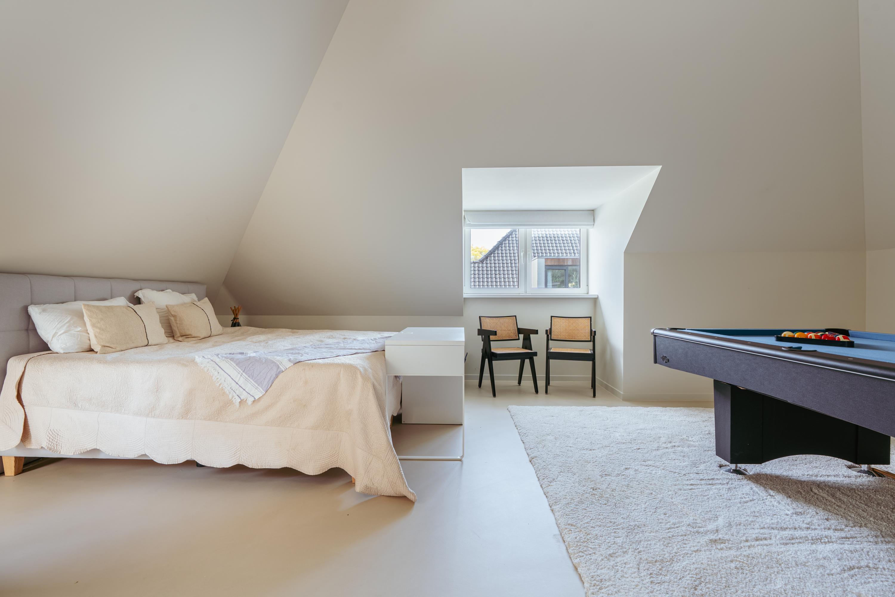 Upstairs, three expansive bedrooms promise flexibility, while the master suite features a freestanding tub, walk-in wardrobe, and built-in cabinetry. Two bathrooms offer refined fixtures and walk-in showers. The villa’s garage is currently fitted as a private gym, and a loft attic adds valuable storage. Practical features include a home automation system, solar panels, advanced insulation, and energy label A. Facilities include an alarm, air conditioning, fiber optics, and balanced ventilation.