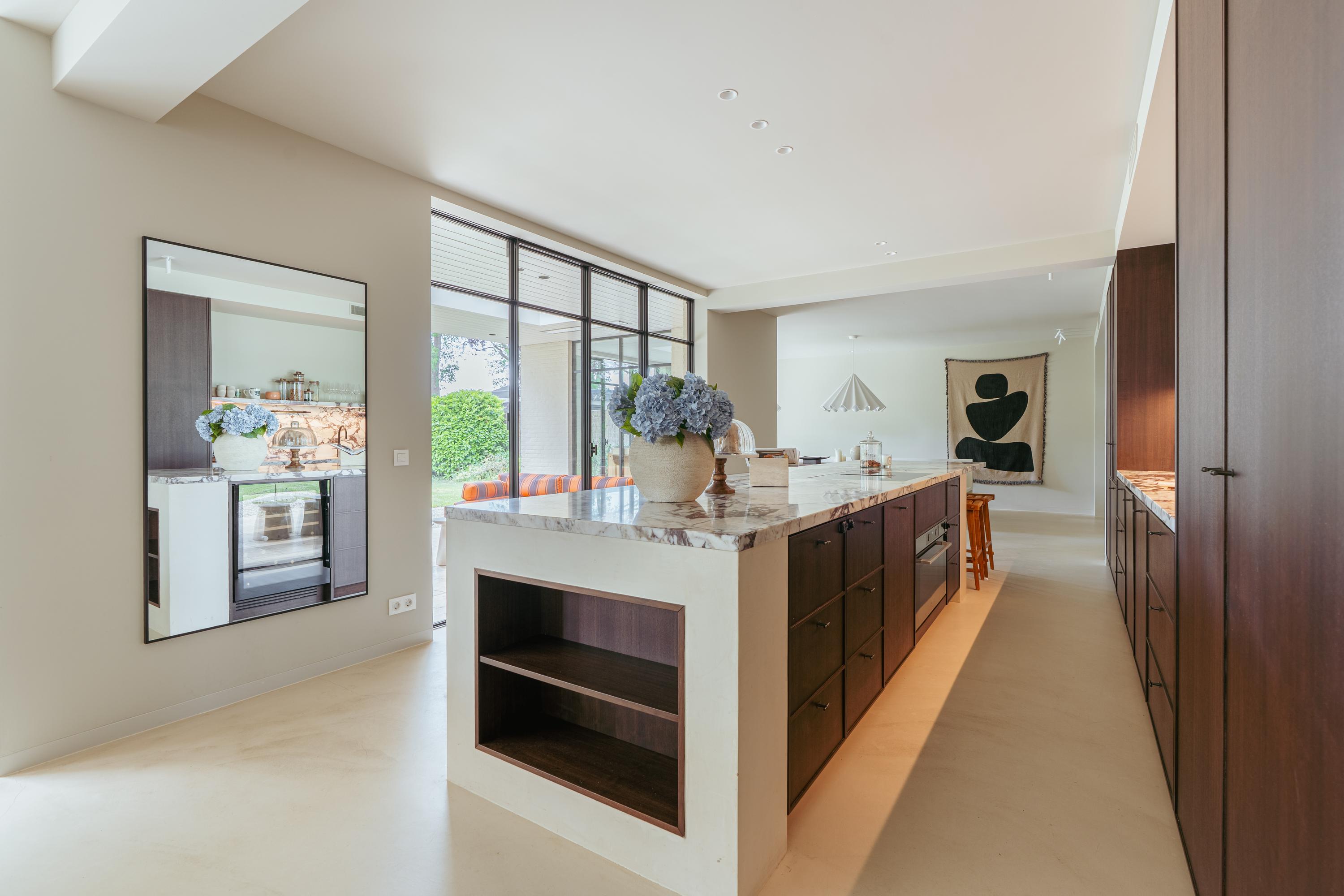 Villa Badhoevedorp, the focus keyword, finds its fullest expression at Prins Florislaan 13, where architectural poise meets ease of living. This fully renovated residence, redesigned by Anne Claus, encompasses approximately 359 sqm over two floors and a loft attic, set on a tranquil plot of about 1,064 sqm. Light pours through floor-to-ceiling windows, illuminating polished concrete floors with underfloor heating. The heart of the home is an open living space anchored by an elegant fireplace and a kitchen defined by a 5-metre island, book-matched marble, and top-tier appliances. French steel doors open to a covered terrace of 22 sqm with built-in heaters, blending seamlessly into a landscaped garden of 617 sqm.