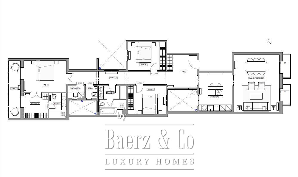 It comprises 3 double bedrooms, including a master suite with bathroom, dressing room, and private loggia, another bathroom, a courtesy toilet, a fully equipped kitchen, and a laundry room. The bright living room, enhanced by 2 balconies overlooking the pedestrian street of Consell de Cent, is the perfect place to relax.