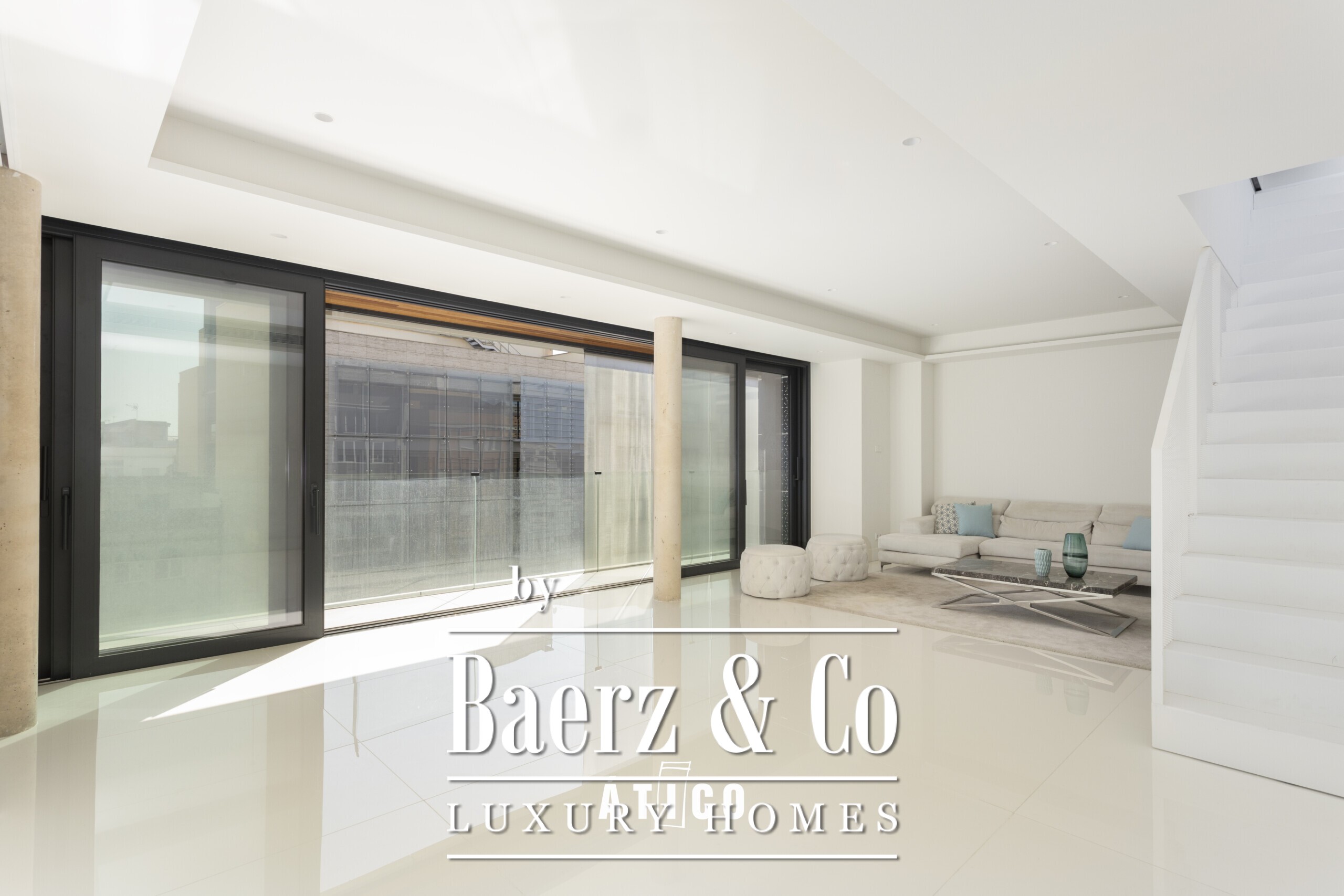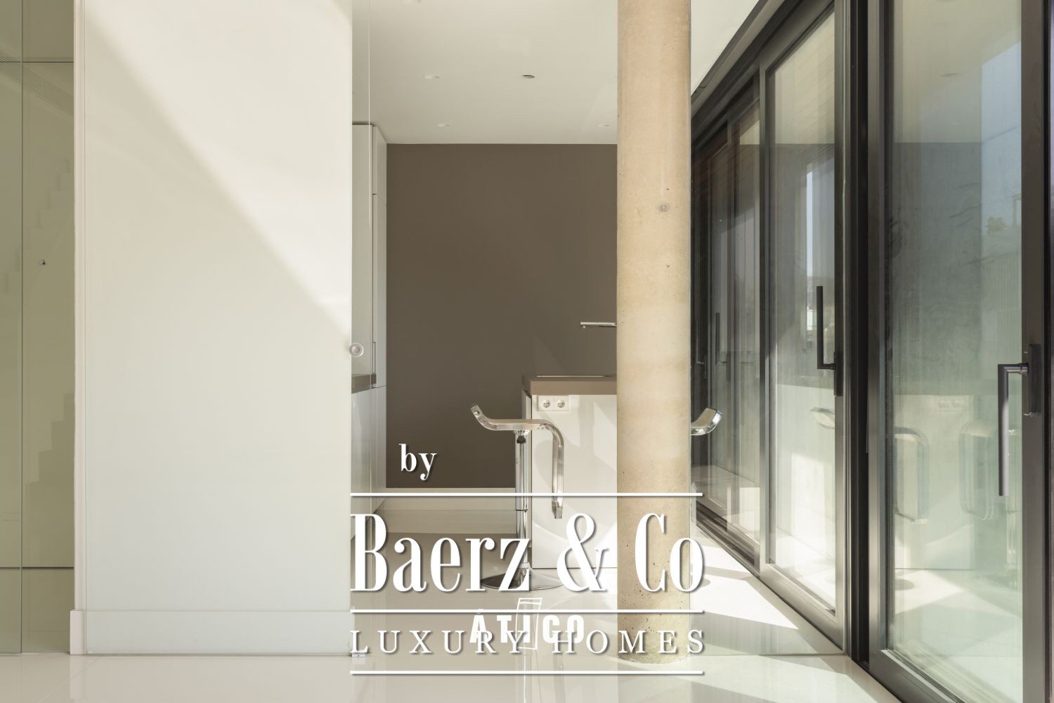 The duplex penthouse has a total area of ​​201m2 of which 130m2 corresponds to the living area, 11m2 of a large and continuous balcony with unobstructed views of Via Augusta and 60m2 of a solarium terrace with a private swimming pool located on the upper floor.