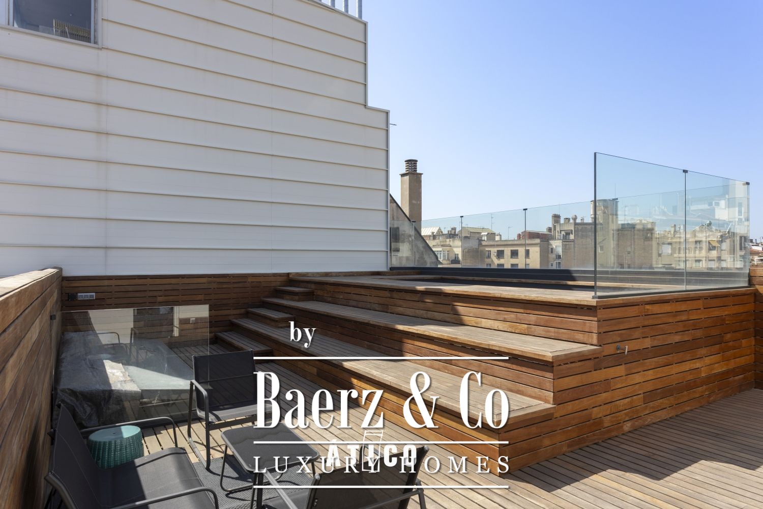 This modern and exclusive duplex penthouse is located just a few metres from Avenida Diagonal and Paseo de Gracia. It is a new construction that was built with luxury finishes, creating spacious, functional and safe spaces. The building has a concierge service and video surveillance, parking and storage rooms in the same building. For the relaxation of clients, it offers a beautiful and quiet communal area with a large solarium and swimming pool.