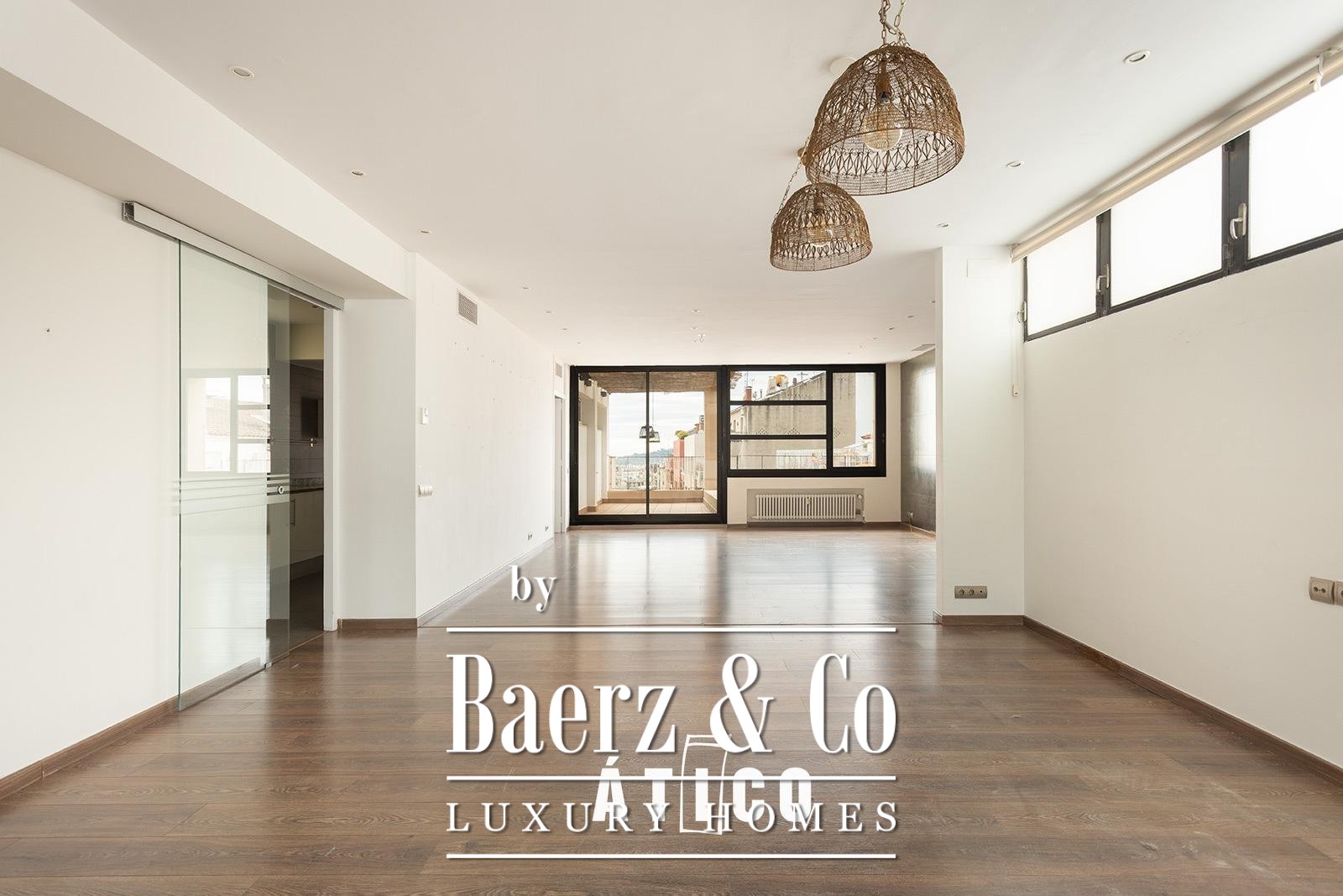 Attic Barcelona is distinguished by its privileged position in Sant Gervasi-Galvany, an address synonymous with discretion and refined urban living. This penthouse occupies 231 m², facing south and welcoming natural light throughout the day. With panoramic views that sweep from the sea to the mountains, each room benefits from a quiet sense of space, accentuated by high ceilings that contribute to the rhythm and comfort of daily life.