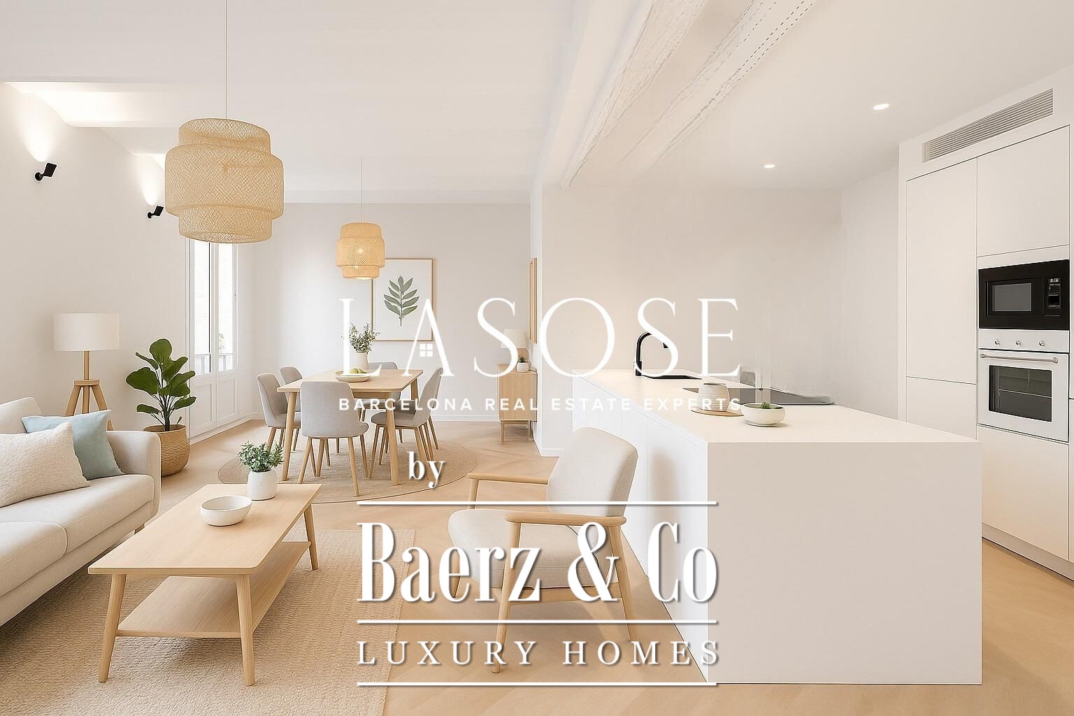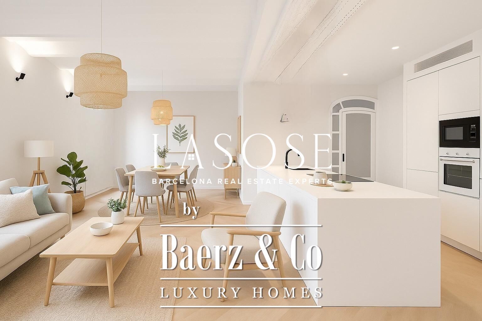LASOSE presents this exclusive apartment located in one of the most emblematic areas of the historic center of Barcelona, a few meters from the Palau de la Música.. . Located in a classic building with elevator and concierge service, this apartment has been completely renovated with high quality materials, preserving original elements such as the wooden porches and the Catalan vault. It has 136 m² built and 116 m² usable.. . The distribution includes a spacious living-dining room with high ceilings, Catalan vault and exit to a balcony overlooking a quiet square. The open kitchen, equipped with Siemens appliances and a large central island, is perfectly integrated into the day area.. . The sleeping area consists of three bedrooms, including a master suite with private bathroom and dressing room, and two double bedrooms sharing a second bathroom. All