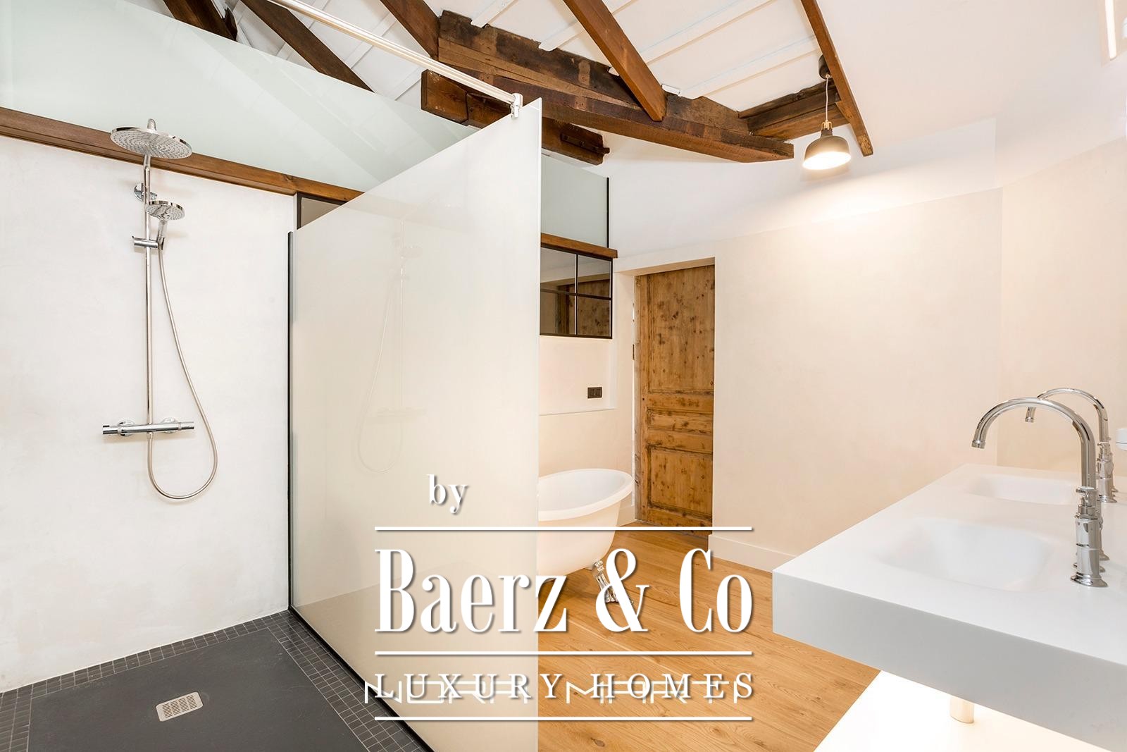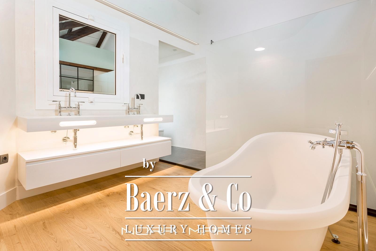 The duplex features five spacious and serene rooms for relaxation, three of them on the lower floor and two more on the upper floor, one of which is a suite with a dressing room, like an intimate retreat within the home. Three full bathrooms and an additional toilet complete this dwelling designed for well-being.