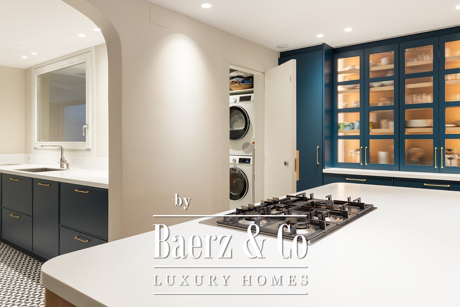 This luxury apartment Barcelona Plaza Kennedy offers a rare sense of scale and serenity within one of the city’s most sought-after enclaves. Occupying 250 m², the residence opens to an expansive 200 m² east-facing terrace, a secluded stage for luminous mornings or intimate gatherings with family and friends. The open-plan living and dining area flows into a modern kitchen, refined yet inviting, where light and spatial clarity take precedence.