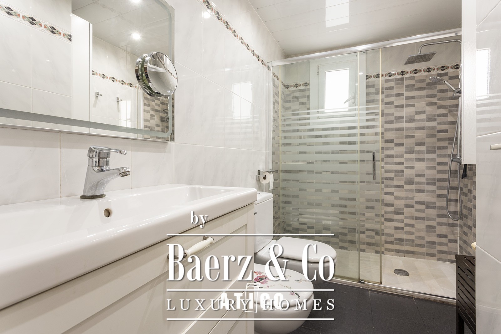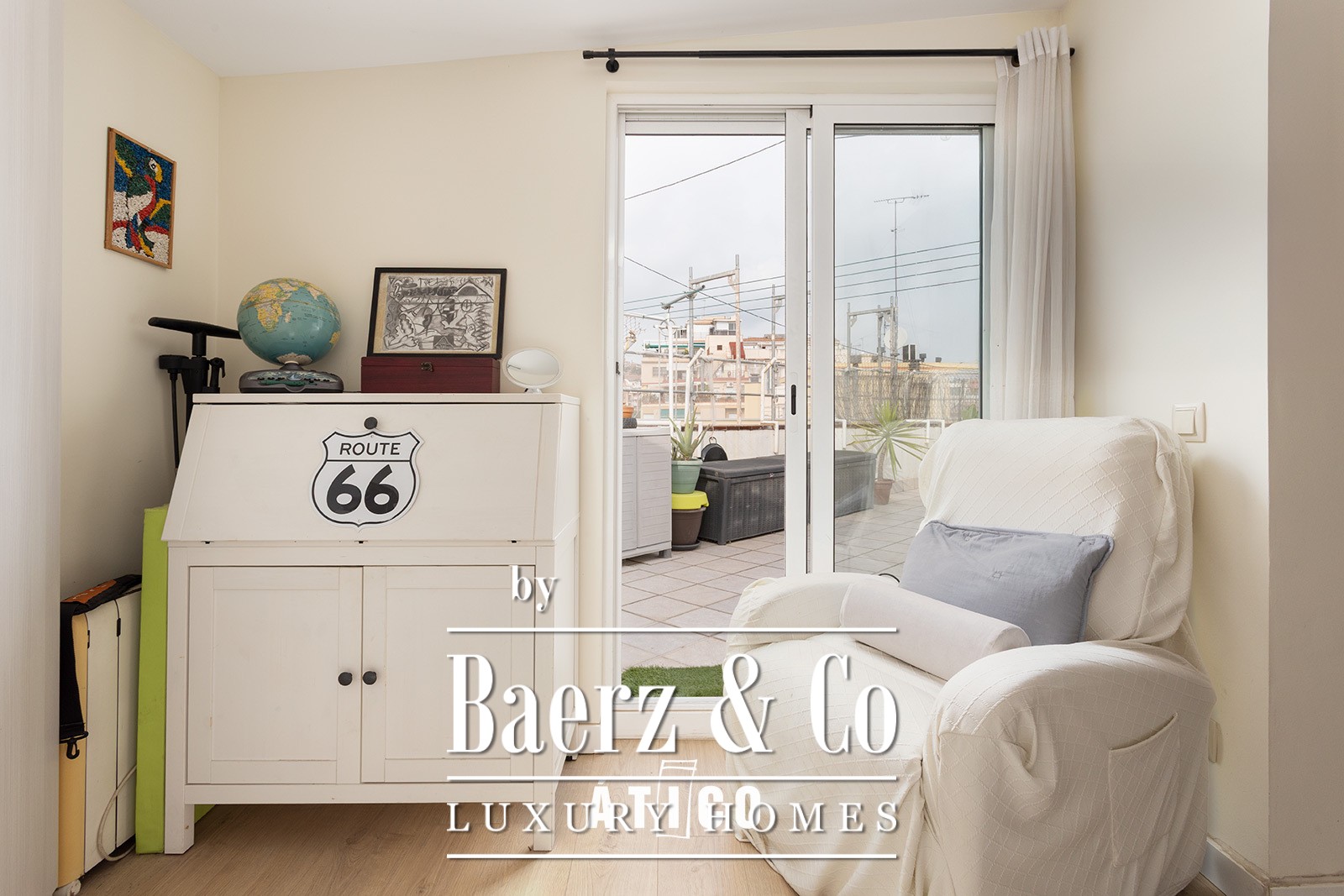 Materials are thoughtfully selected and spaces immaculately maintained, supported by air conditioning and heating for year-round comfort. On a quiet residential street in Guinardó, the penthouse stands shielded from city noise, yet remains deeply connected: swift access to public transport, thoroughfares, universities, cultural venues, and parks.