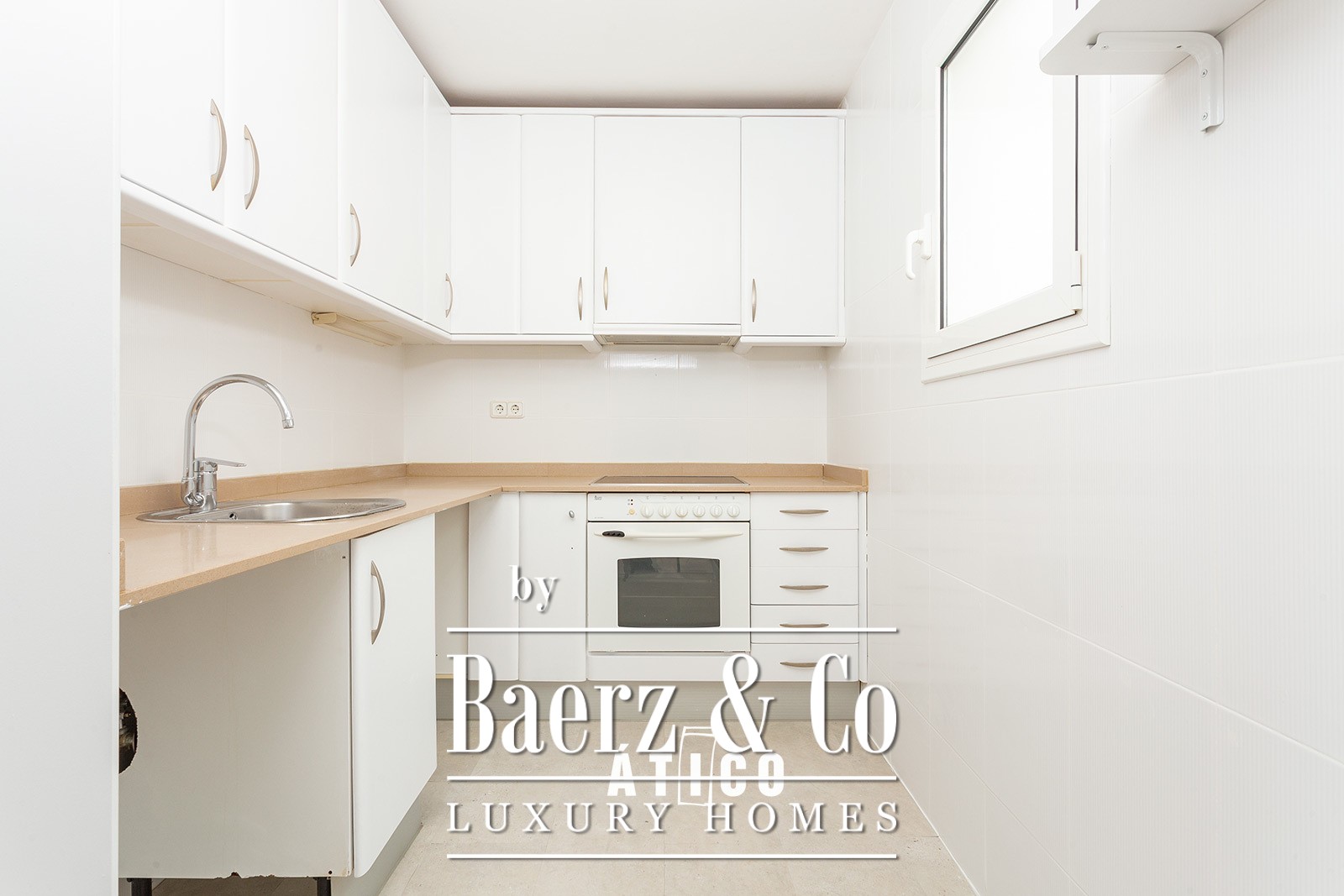 The main living and dining space merges seamlessly with the coastal terrace, making the most of the panoramic setting and sea air. An open-plan layout enhances the connection between indoors and out, with a fitted kitchen, a full bathroom, one single and one double bedroom—each with direct access to the Tibidabo-view terrace, offering privacy and calm. Air conditioning and heating ensure comfort in every season, and a storage area provides discreet functionality.
