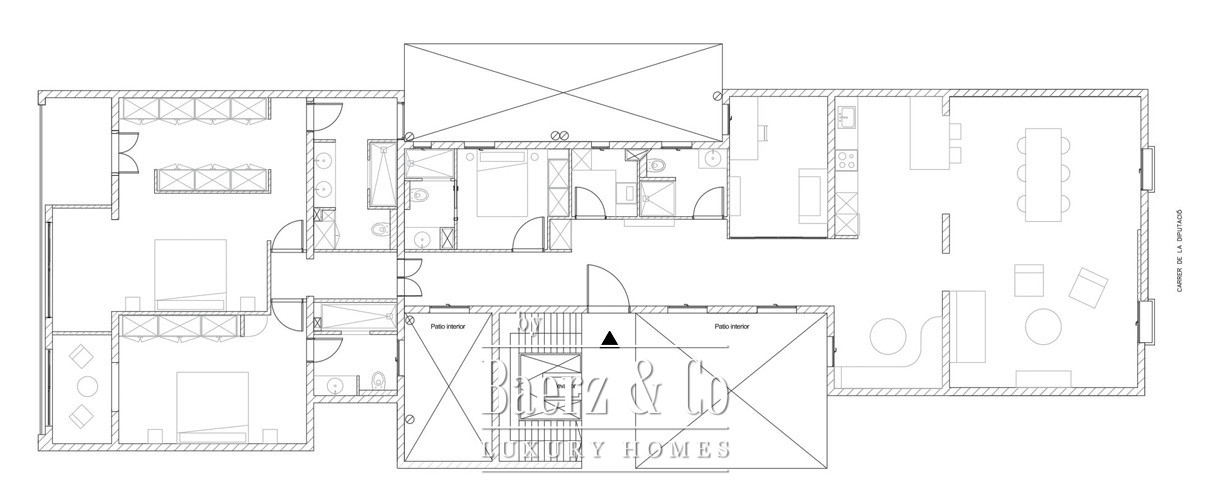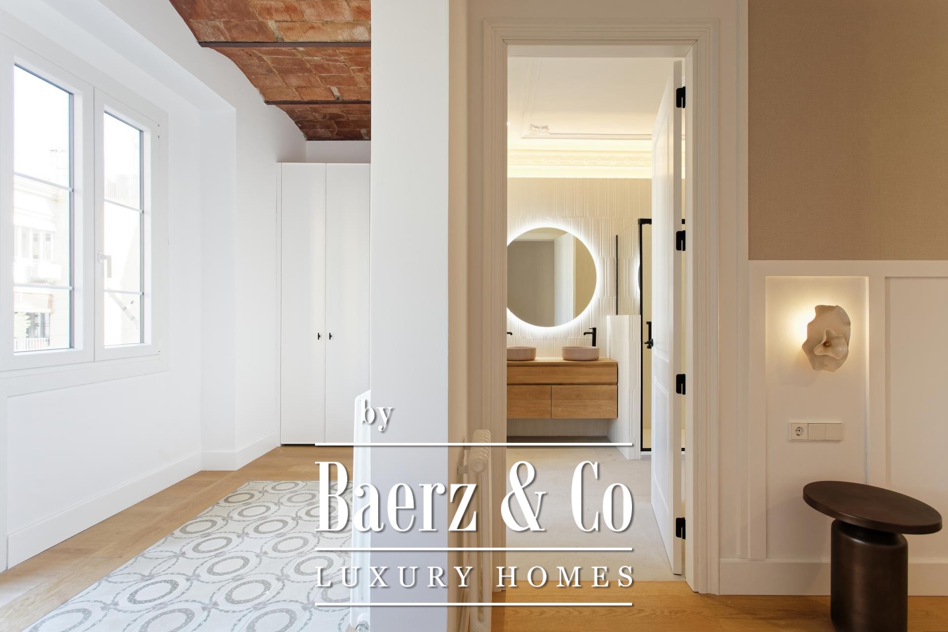 Apartment Barcelona in the celebrated Eixample Dreta quarter presents a refined encounter between heritage and renewal. Set on the authentic fourth floor of a grand 1900 Finca Regia, this 218 m² residence traces the lines of original architecture with balanced modern craftsmanship. The through-apartment takes full advantage of its north-west orientation, gathering light through two exterior balconies and a sequence of generous spaces.
