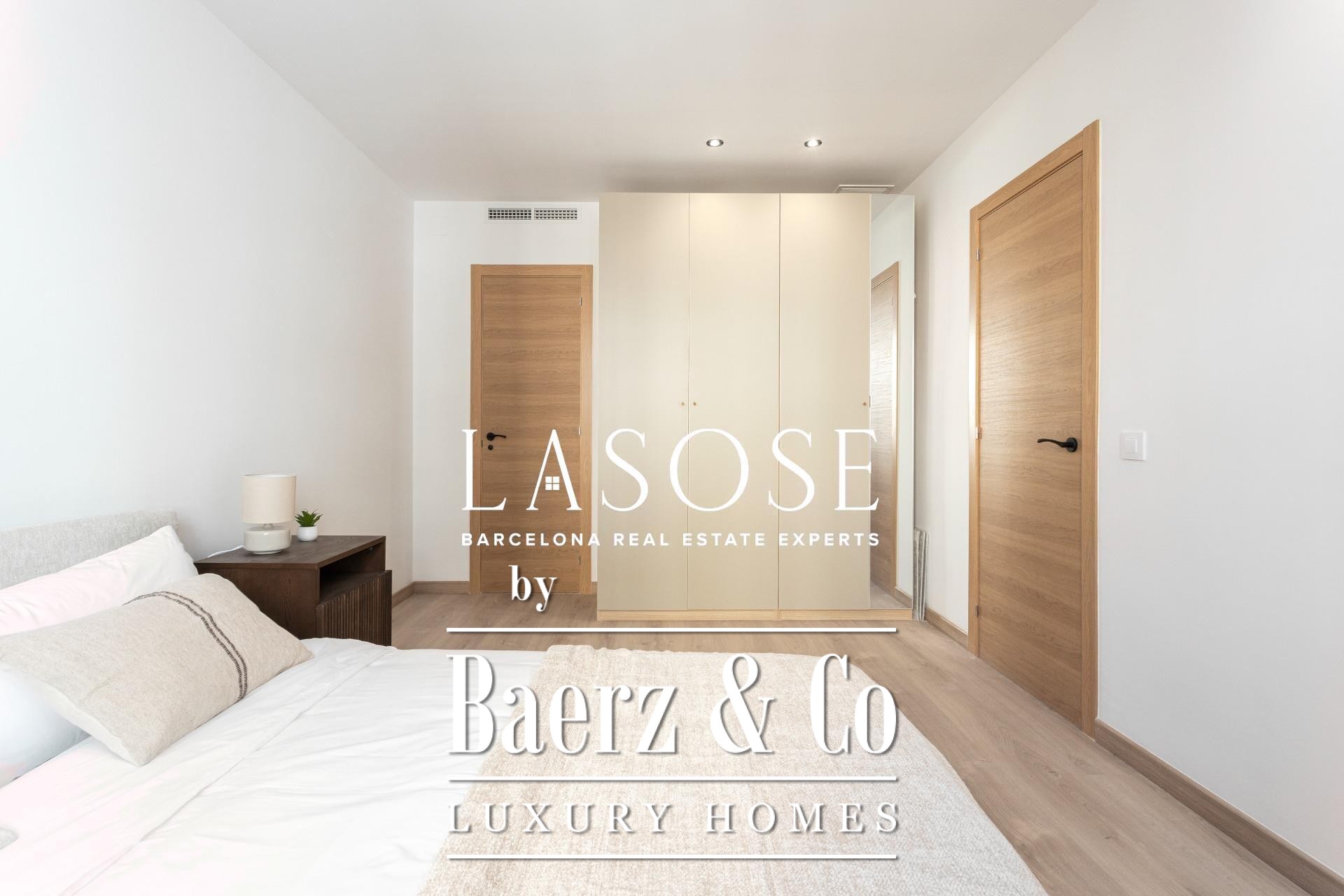 Three bedrooms include a main suite with terrace access, fitted wardrobes, and a private bathroom, complemented by a double and single bedroom. Both bathrooms feature concealed taps, LED illumination, and porcelain detail. Amenities include ducted Mitsubishi air conditioning, advanced insulation, laundry room, and a parking space in the building for a small car or motorbike, offering discreet comfort in the core of Barcelona. This luxury apartment for sale in Barcelona presents the equilibrium of modern design and metropolitan lifestyle.