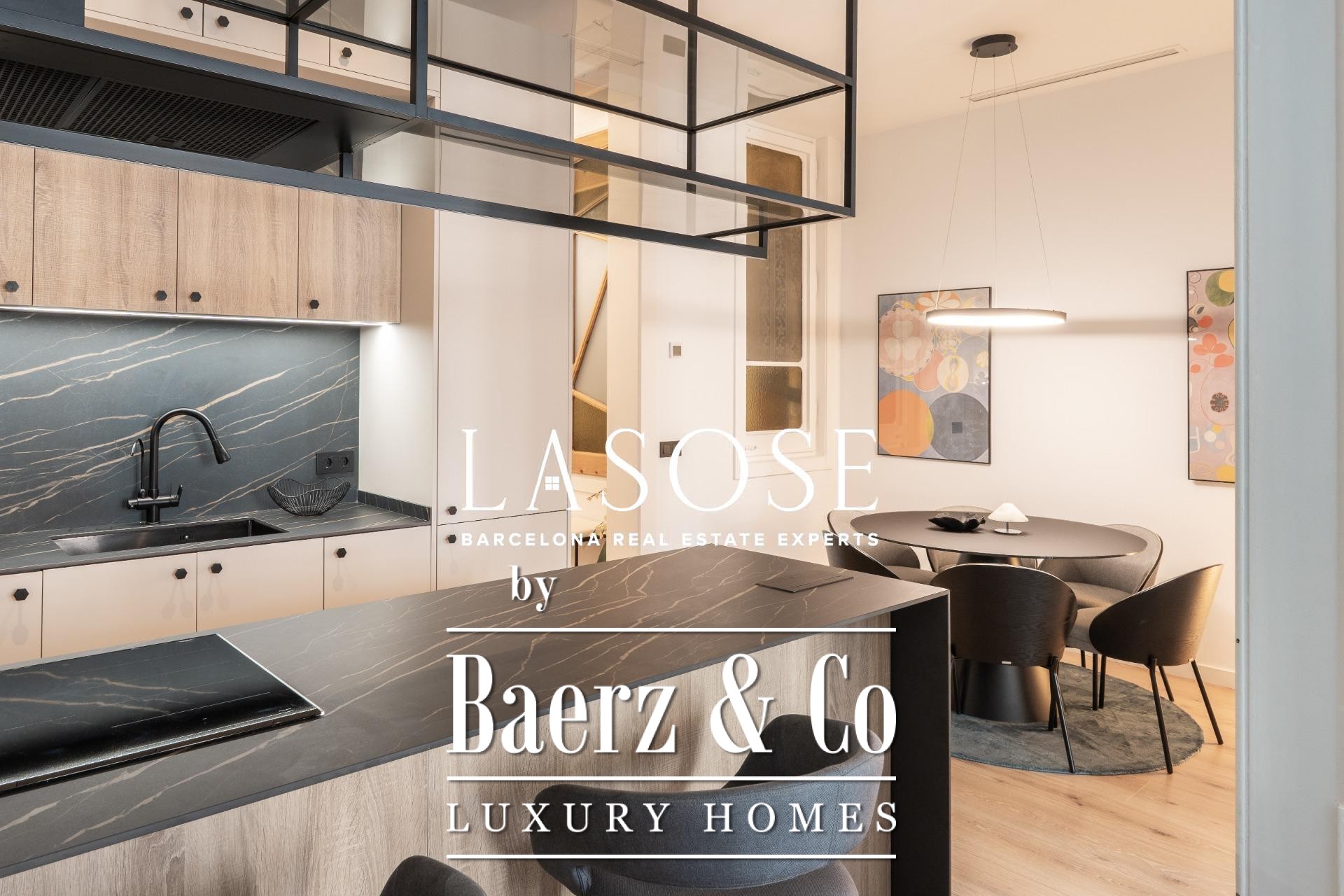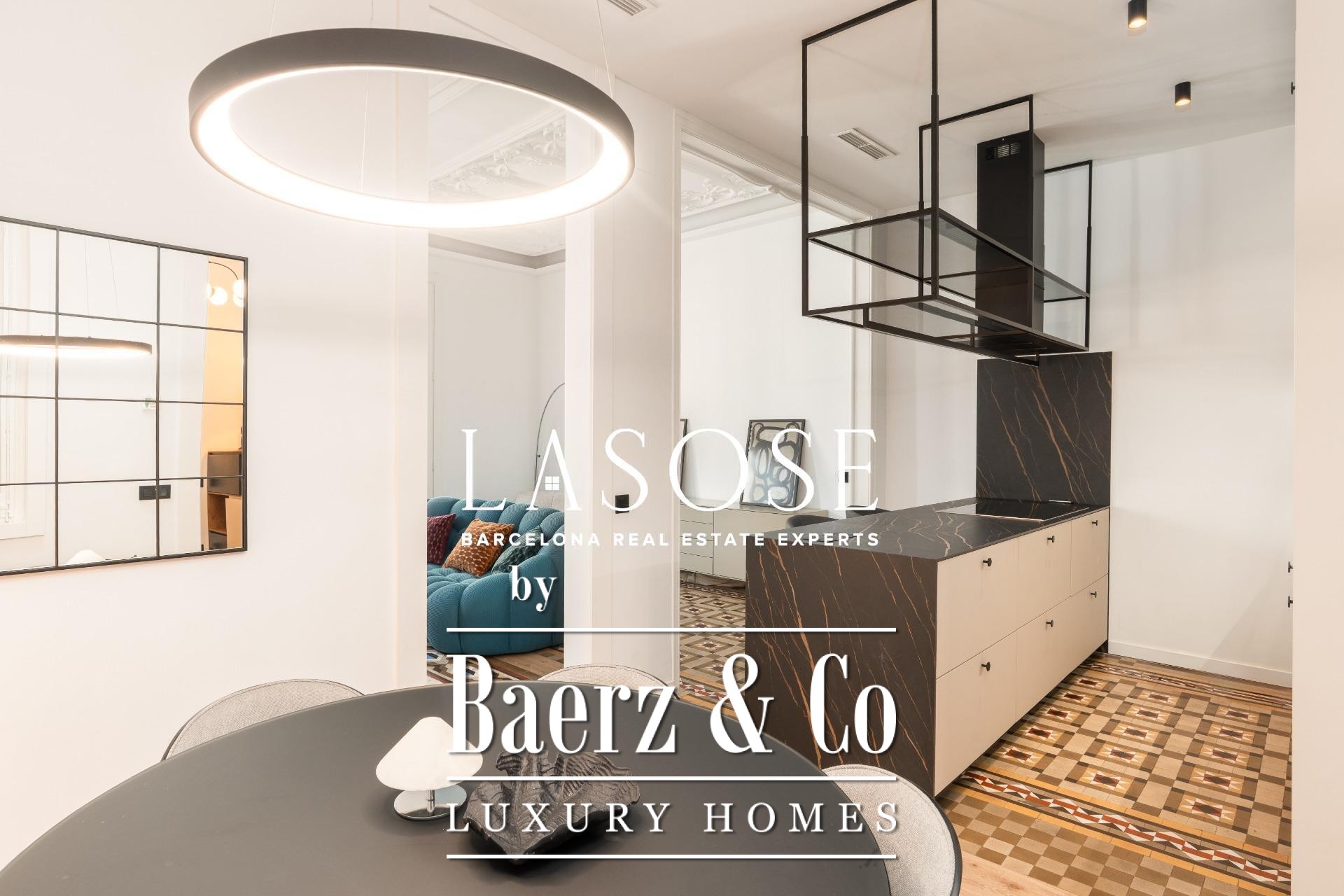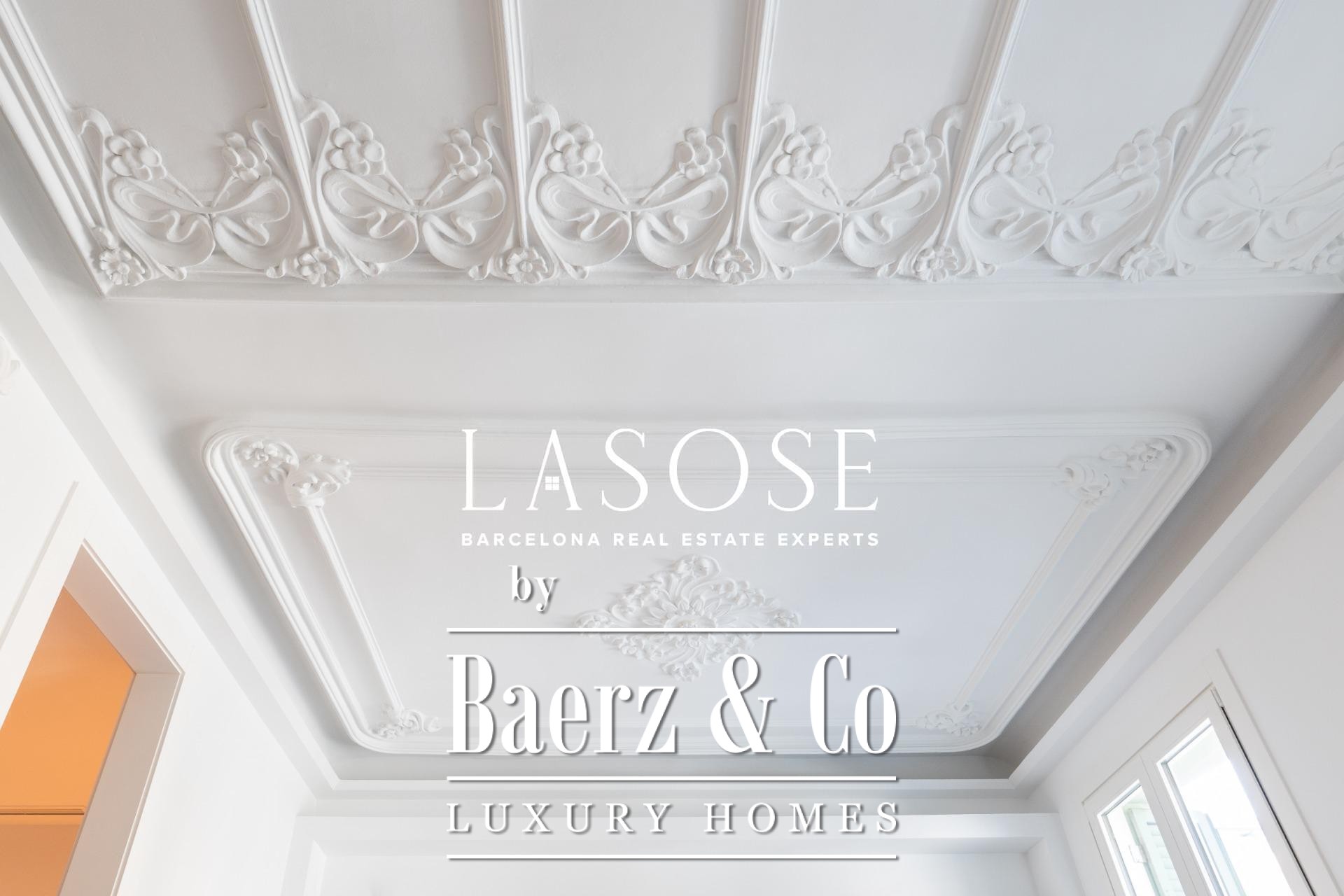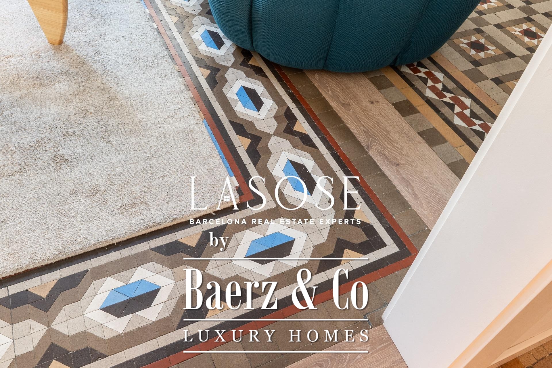 Apartment Barcelona Eixample is quietly positioned on the Principal floor of a protected Modernist building near Passeig de Sant Joan. Completed just two years ago, the most recent renovation blends contemporary luxury with the building’s original charm, highlighting Nolla mosaic hydraulic floors, high ceilings adorned with decorative moldings, and refined architectural details throughout.
