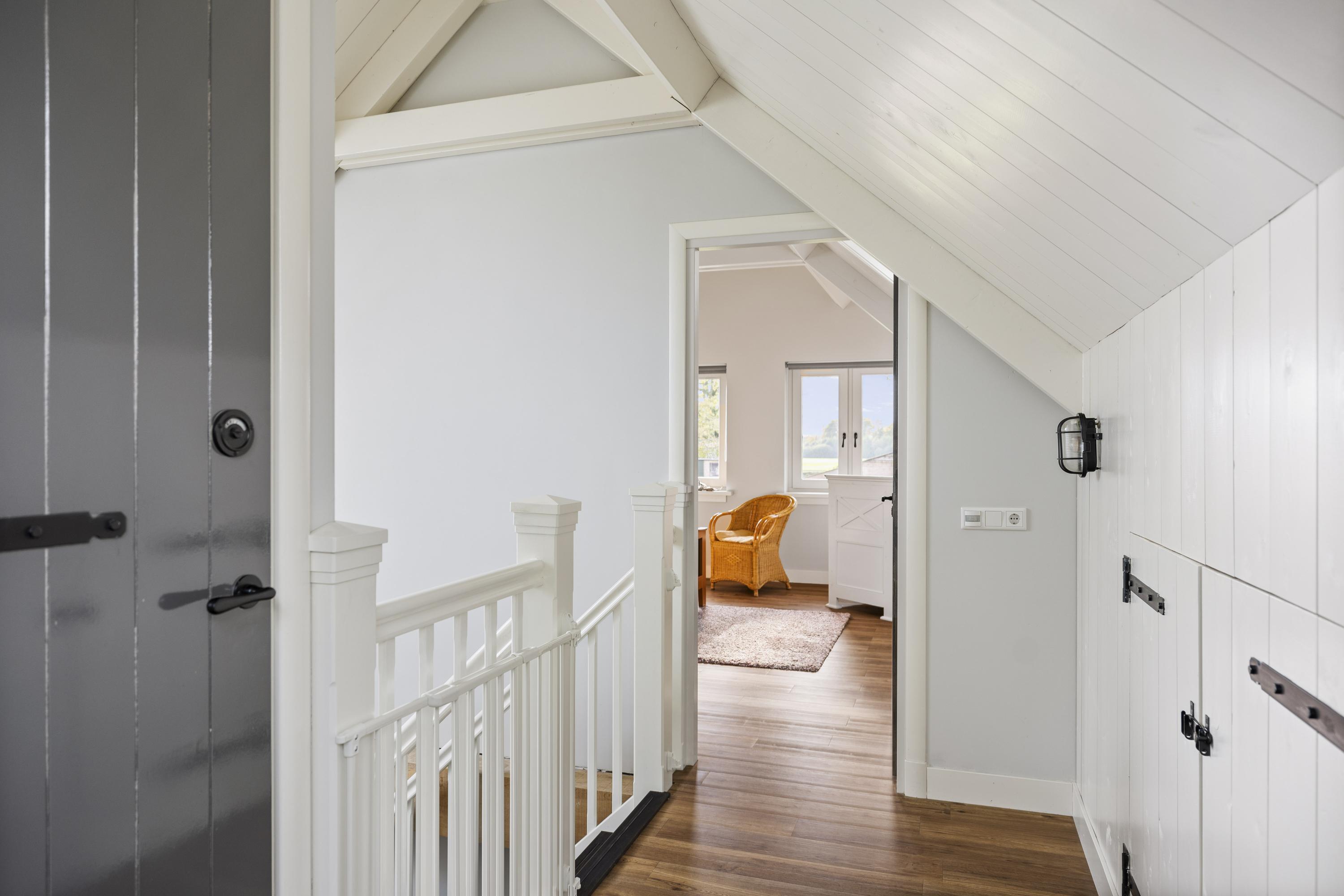 Perhaps you have your own business, maybe with staff, and you want to work from home. That's possible! There is a more than spacious U-shaped annexe consisting of an office with presentation room (approx. 84 m²), toilet, pantry with close-in boiler, and a workshop (90 m²) where you can get straight to work. Like the main house, the entire building is equipped with fibre optic Cat6 Ethernet cables.