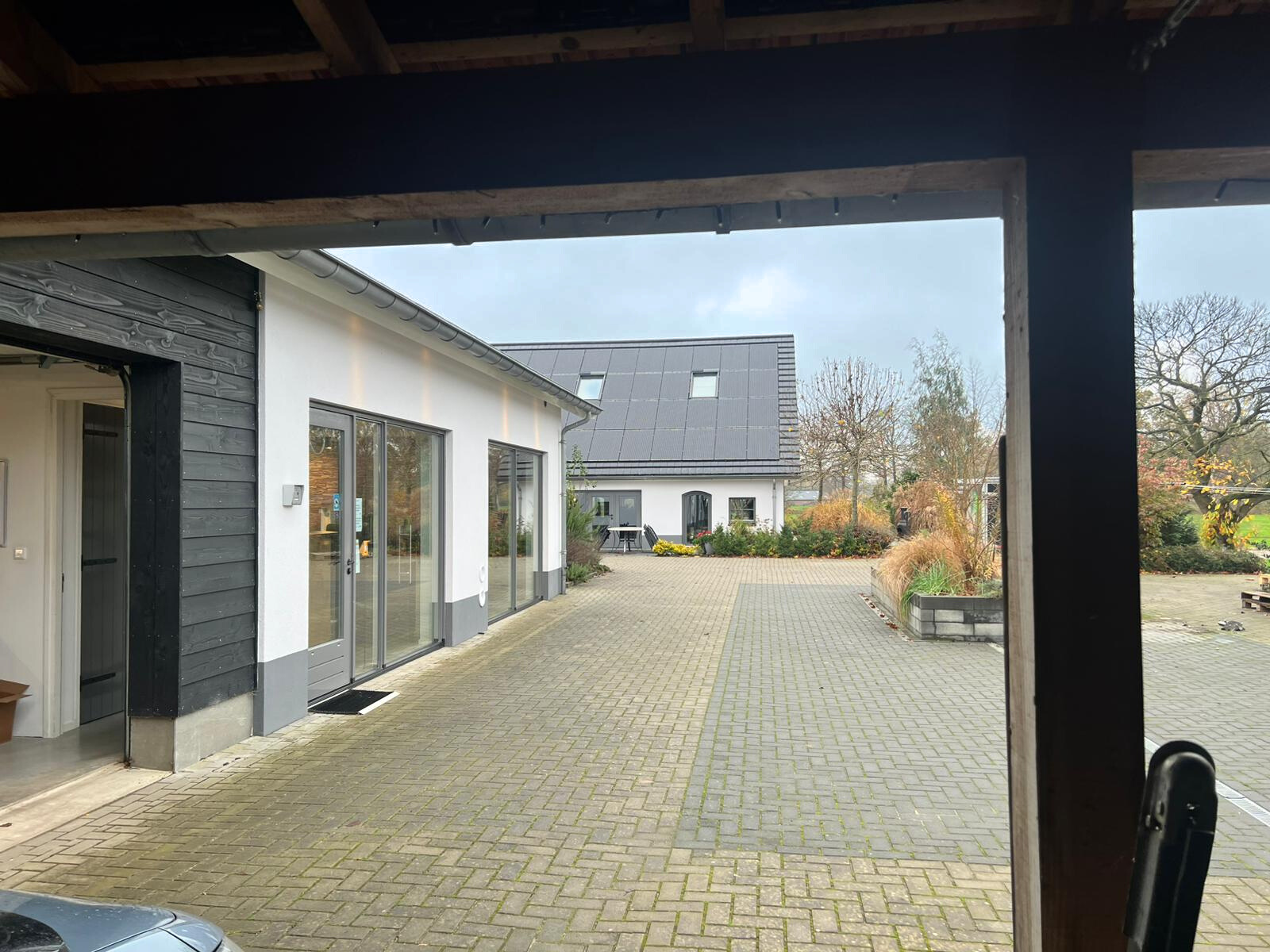 Annex: Multifunctional annex consisting of an office/reception area, workspace, storage space, sports/storage room and a 12-metre-wide carport/garage.