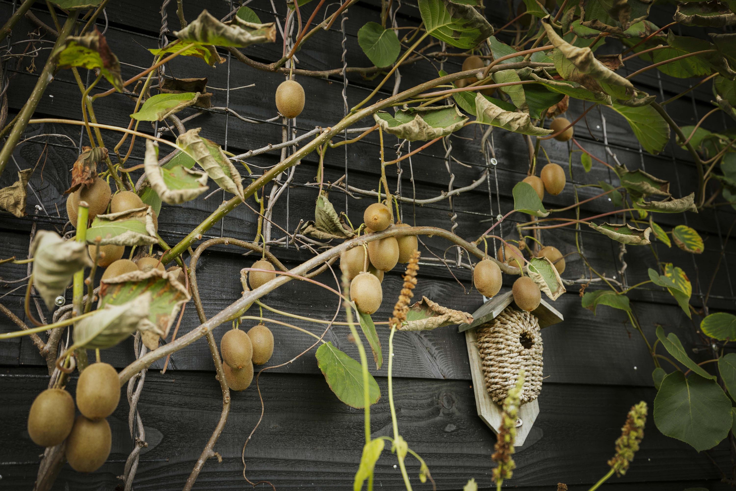 The unique orchard contains a wide variety of fruits and nuts. Young fruit and nut orchard of approx. 1.2 hectares based on row cultivation, including kiwi, persimmon and approx. 55 nut varieties: walnut, pecan, hazelnut, chestnut, almond, pistachio, pine nuts, partly grafted with 6 varieties of truffle (summer, autumn, black, white, Burgundy & Brumale). In addition to the “usual suspects”, such as pears, apples, cherries, walnuts, hazelnuts and plums, we also find exotic fruits such as kiwis and even a banana tree. And everything grows and flourishes beautifully!