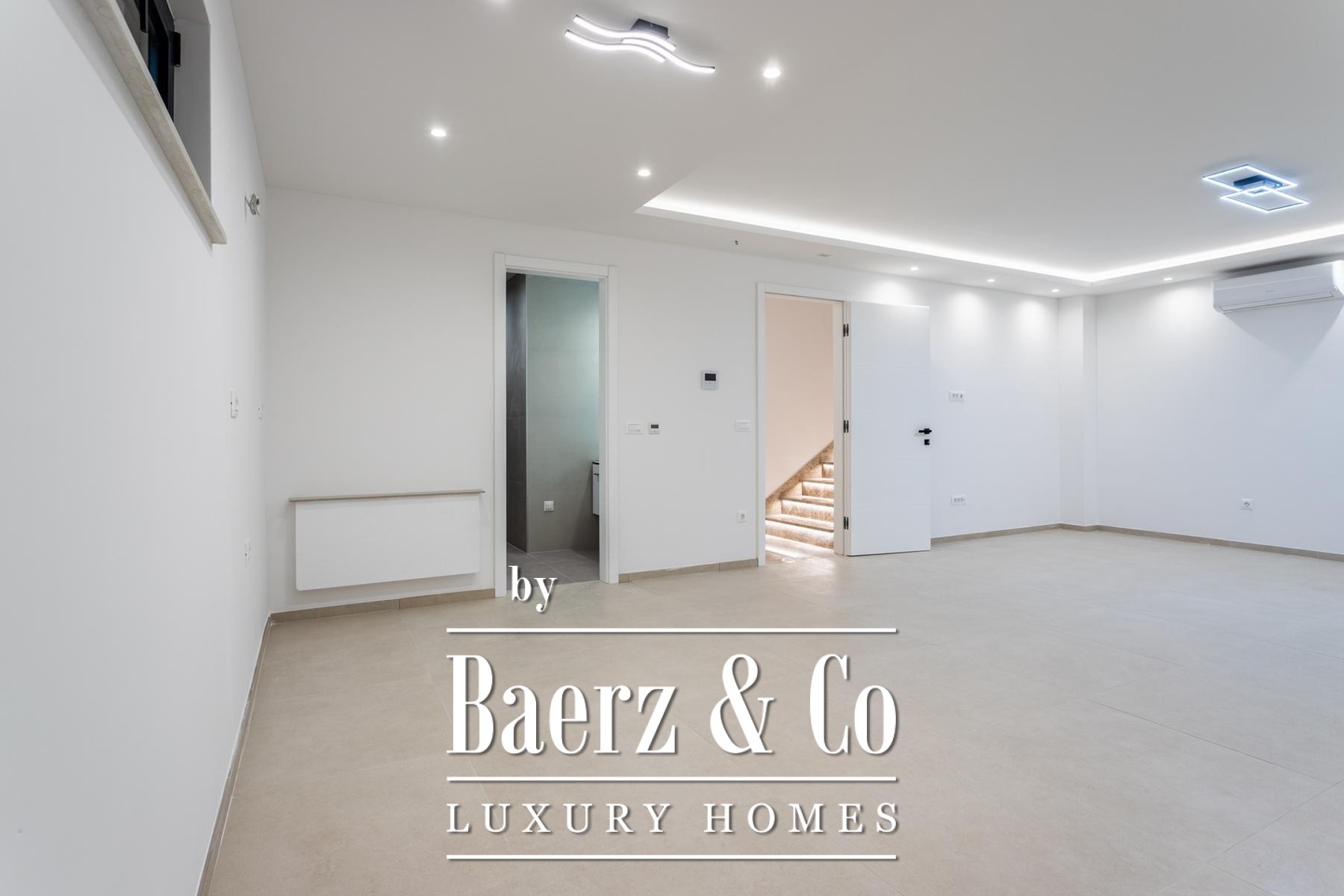 Eight bedrooms and eight bathrooms support a generous sense of ease for residents and guests. The paved yard, enclosed and thoughtfully arranged, offers eight parking spaces. With cafés, restaurants, and beaches close by, this luxury house for sale in Baška Voda places the Mediterranean rhythm within effortless reach.