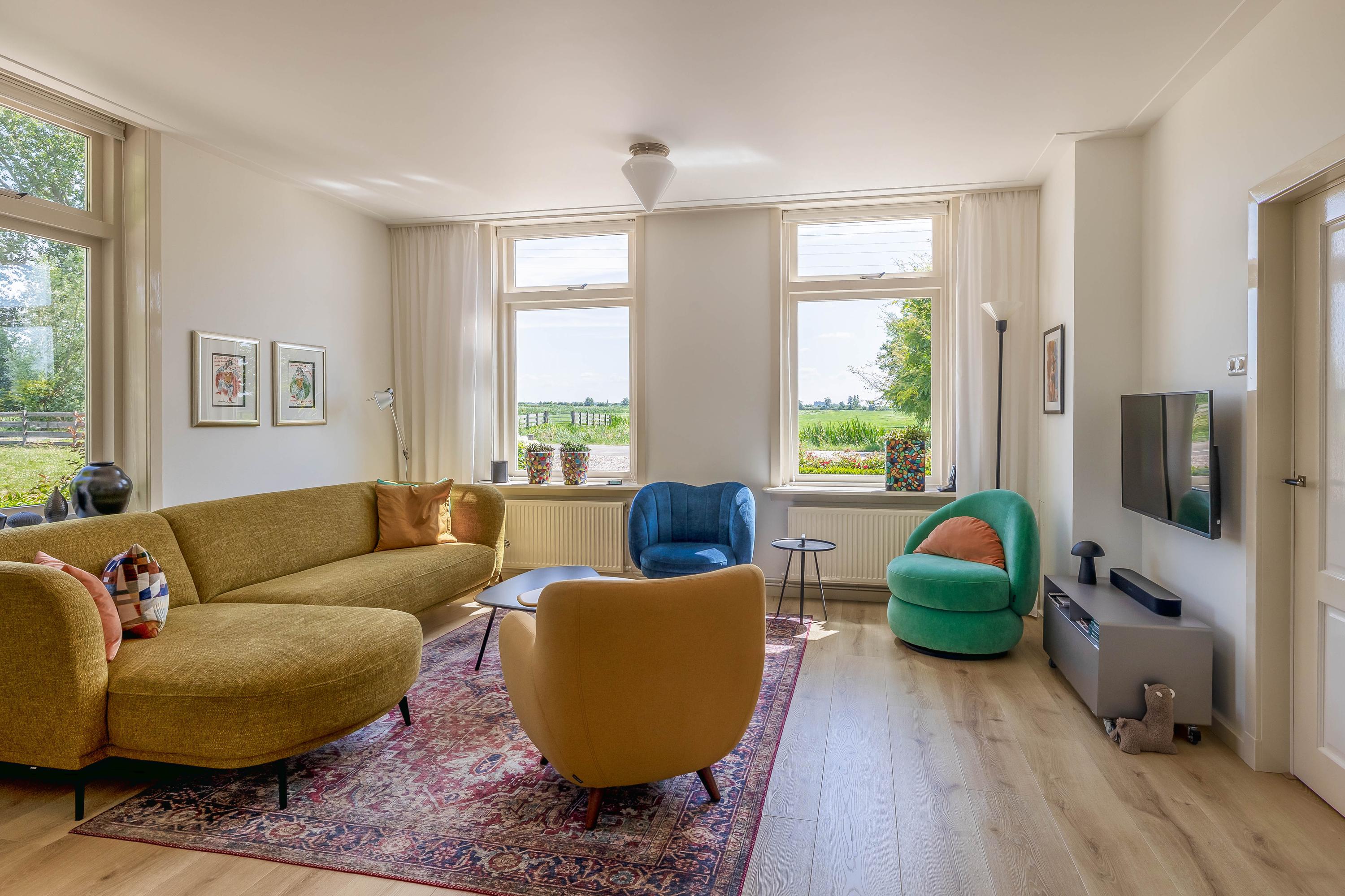 A home full of character, freedom and an unparalleled feeling of outdoor living – welcome to Zuidbroek 145 in Bergambacht. This charming detached house from 1917 has been thoroughly renovated in recent years, with great care taken to preserve its atmosphere and style. Here you live on a generous plot of no less than 3,233 m² of private land, surrounded by water, with views over meadows, a large barn, five bedrooms and two bathrooms. This is peaceful living at its finest, without compromising on comfort.