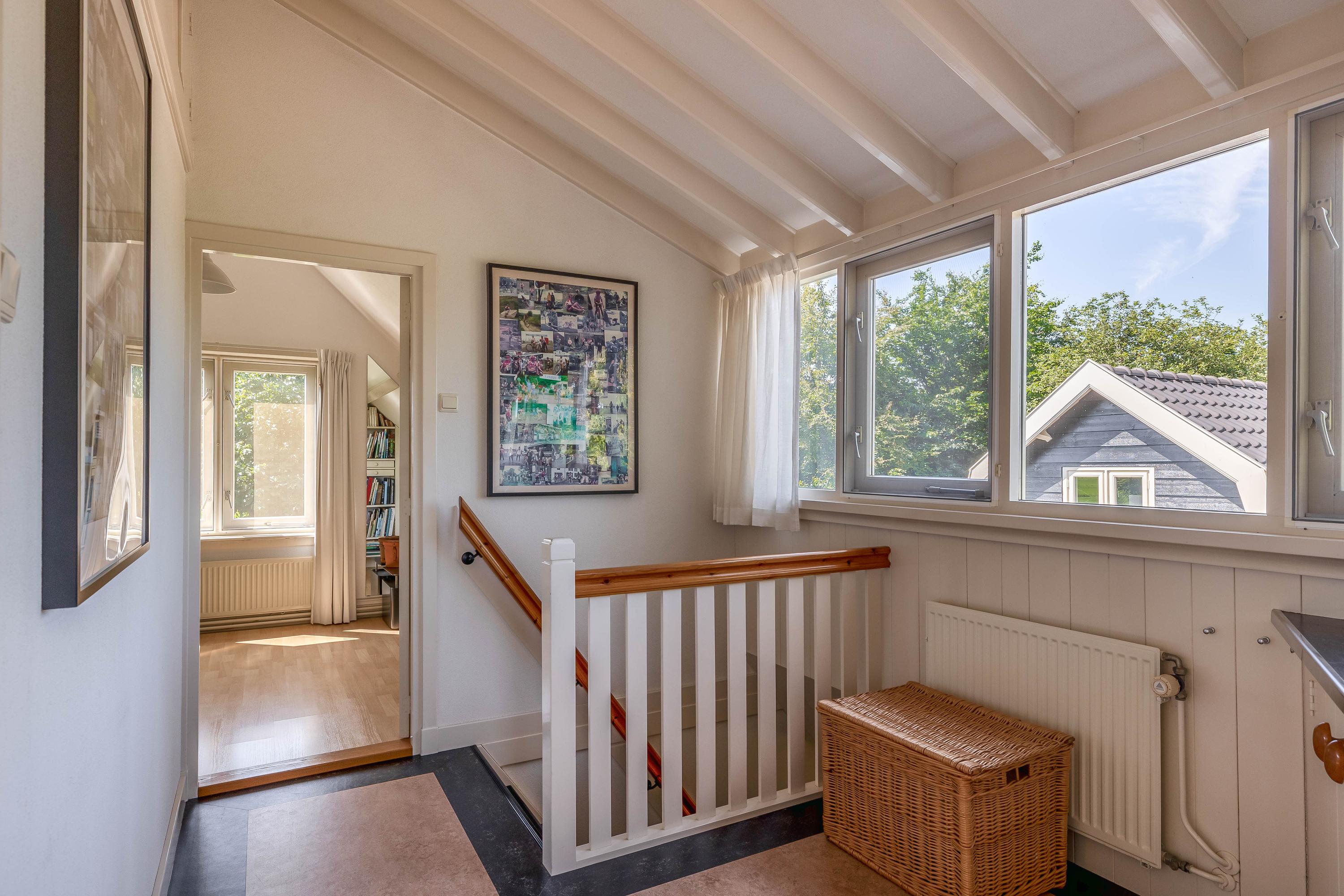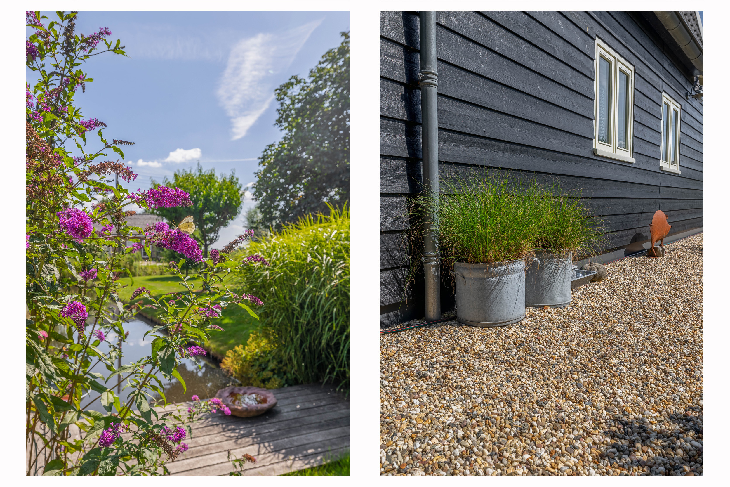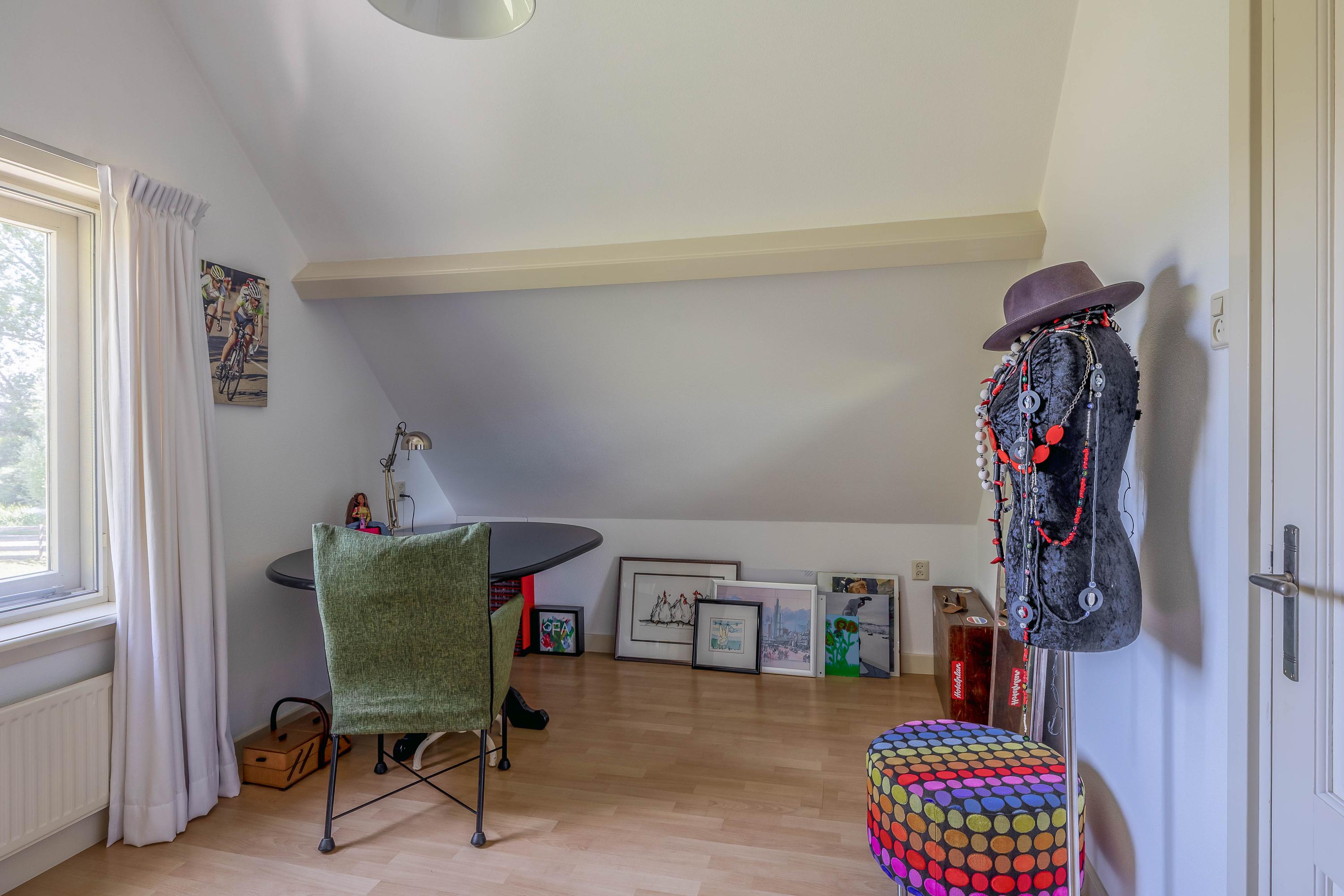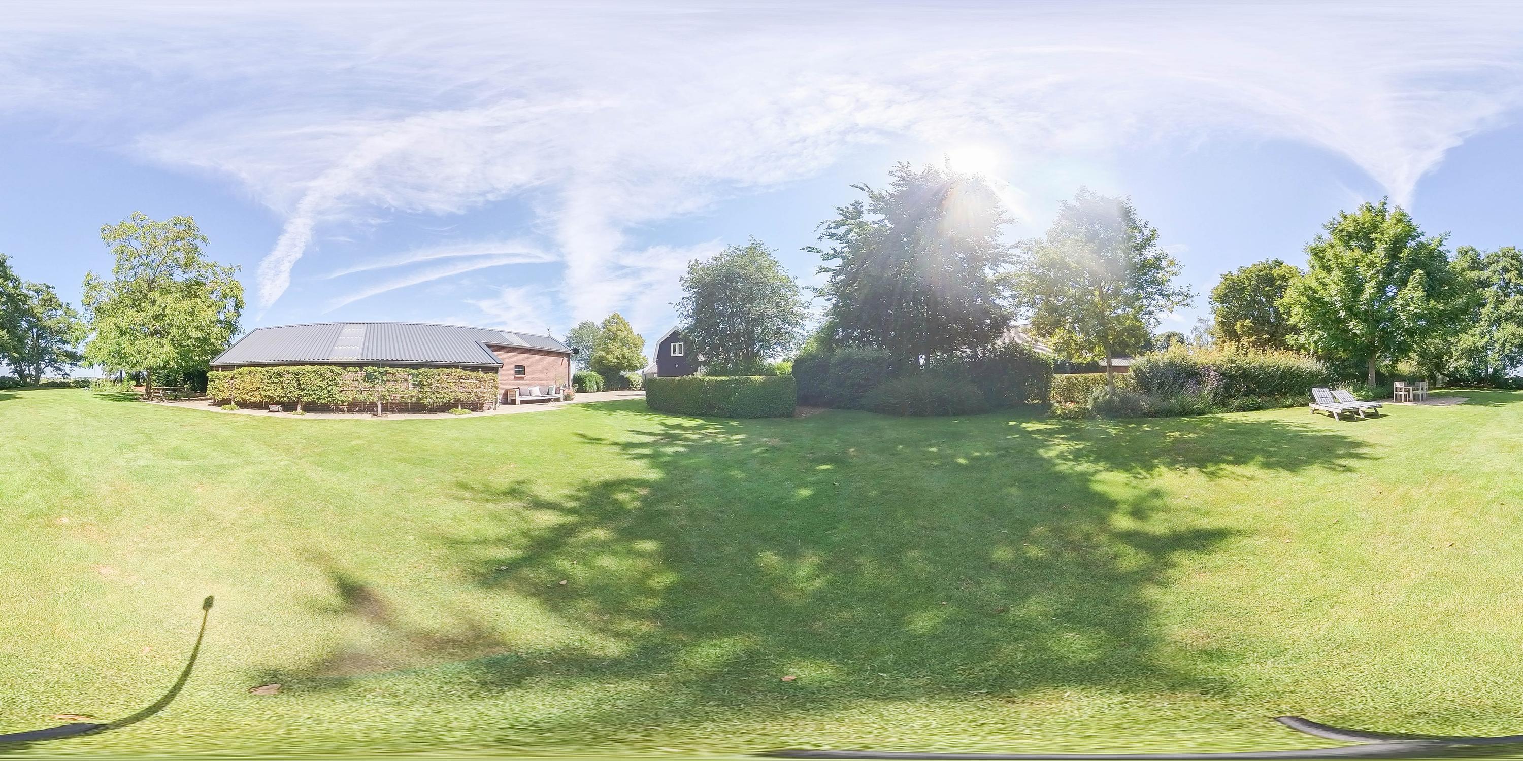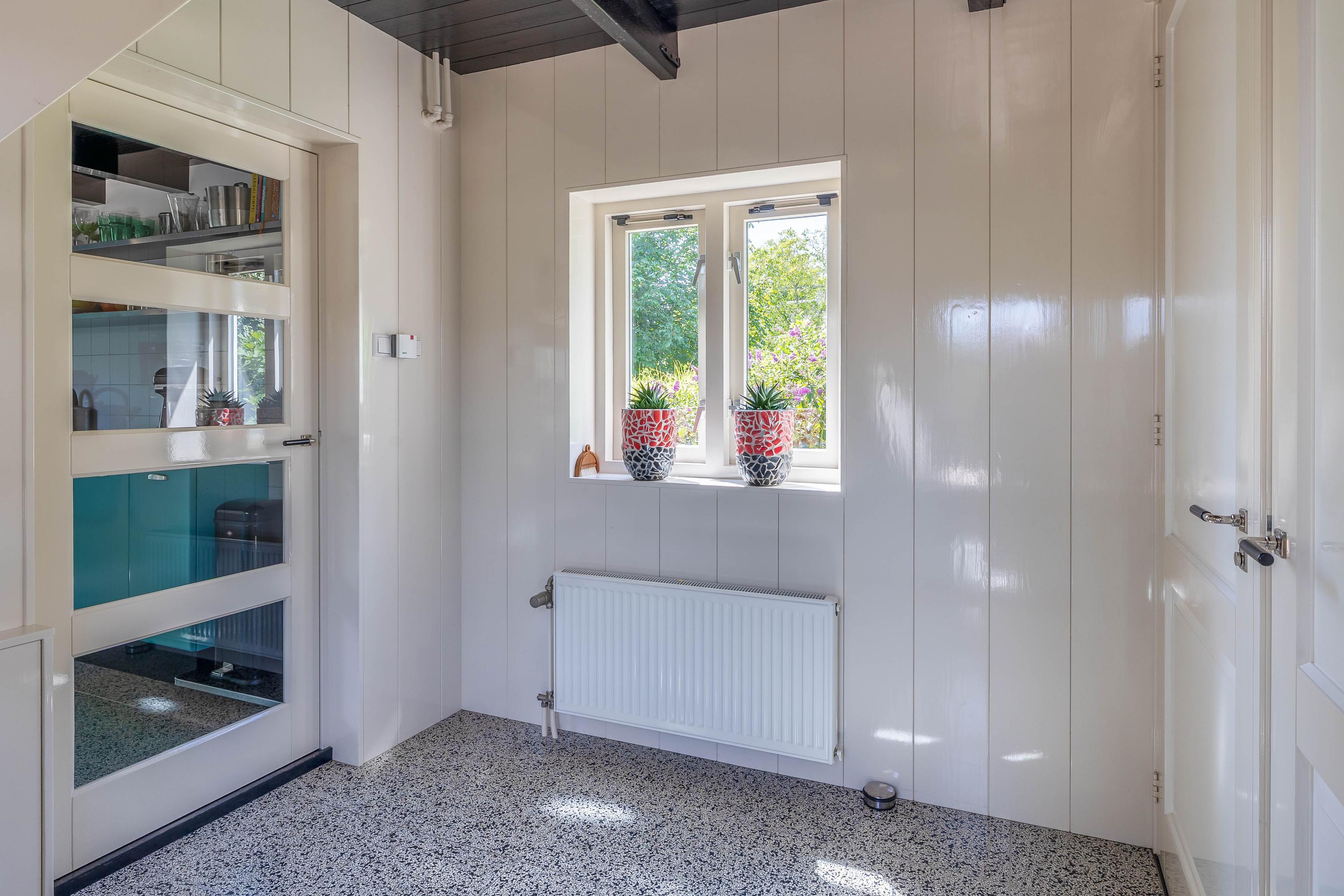 Outside, the property is an oasis of peace and quiet. The surrounding garden is neatly landscaped, green and well maintained, with several seating areas, large lawns, trees, borders, a vegetable garden and charming corners. Thanks to the position of the plot, there are no immediate neighbours, offering plenty of privacy and beautiful views over water and meadowland. The meadow on the eastern side may no longer be built on, ensuring unobstructed views well into the future.