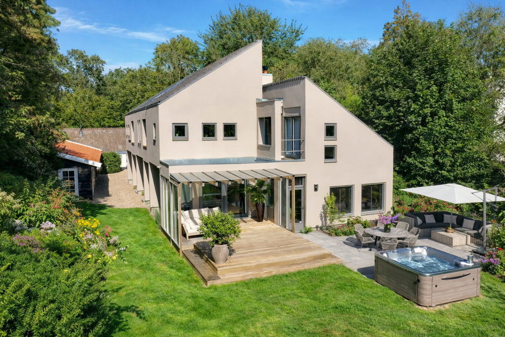 The modern open kitchen has an island where you can sit together. From here again a beautiful view of the greenery.French doors and a covered heated terrace bring the outside in.The kitchen is equipped with various appliances including a quooker, refrigerator, freezer, steam oven, wine cooler, warming drawer and dishwasher. Cooking is available on the large stove with 4 gas burners, a teppanyaki plate, deep fryer and double oven.