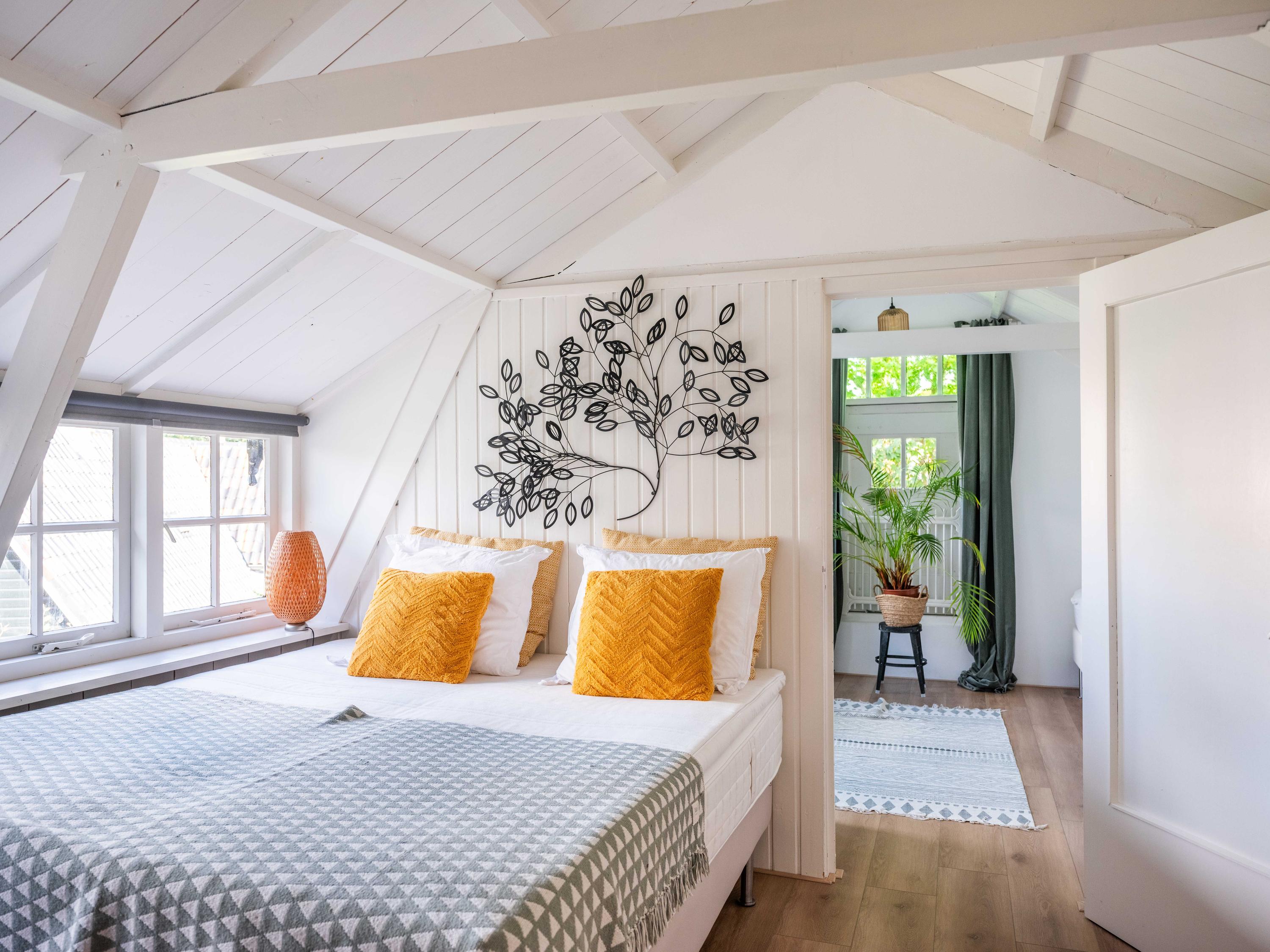 On the other side of the house, you will find the former atelier, now used as a guesthouse with a kitchenette and sleeping area. The roof has been insulated, and the upper floor is beautifully light and spacious.