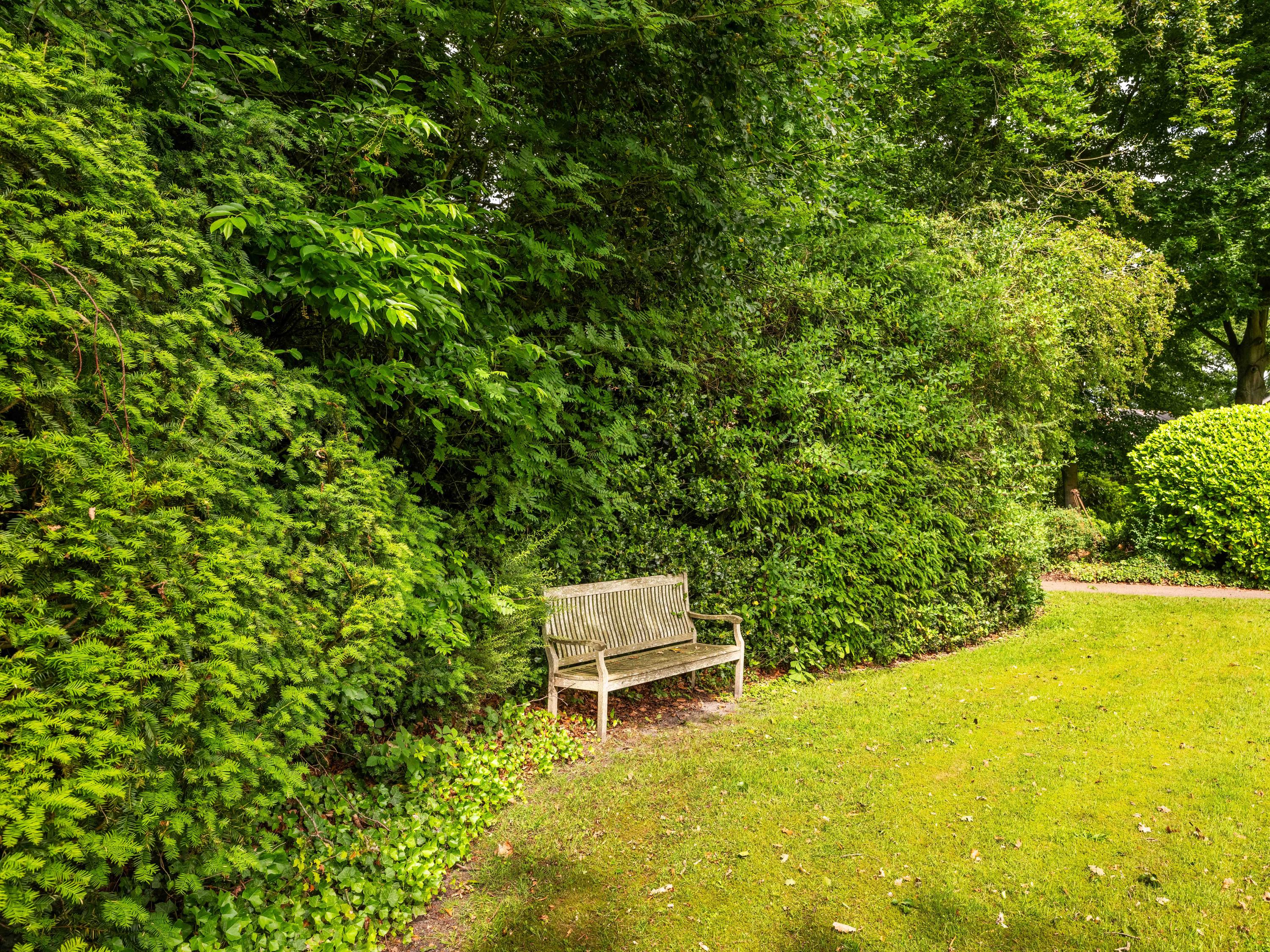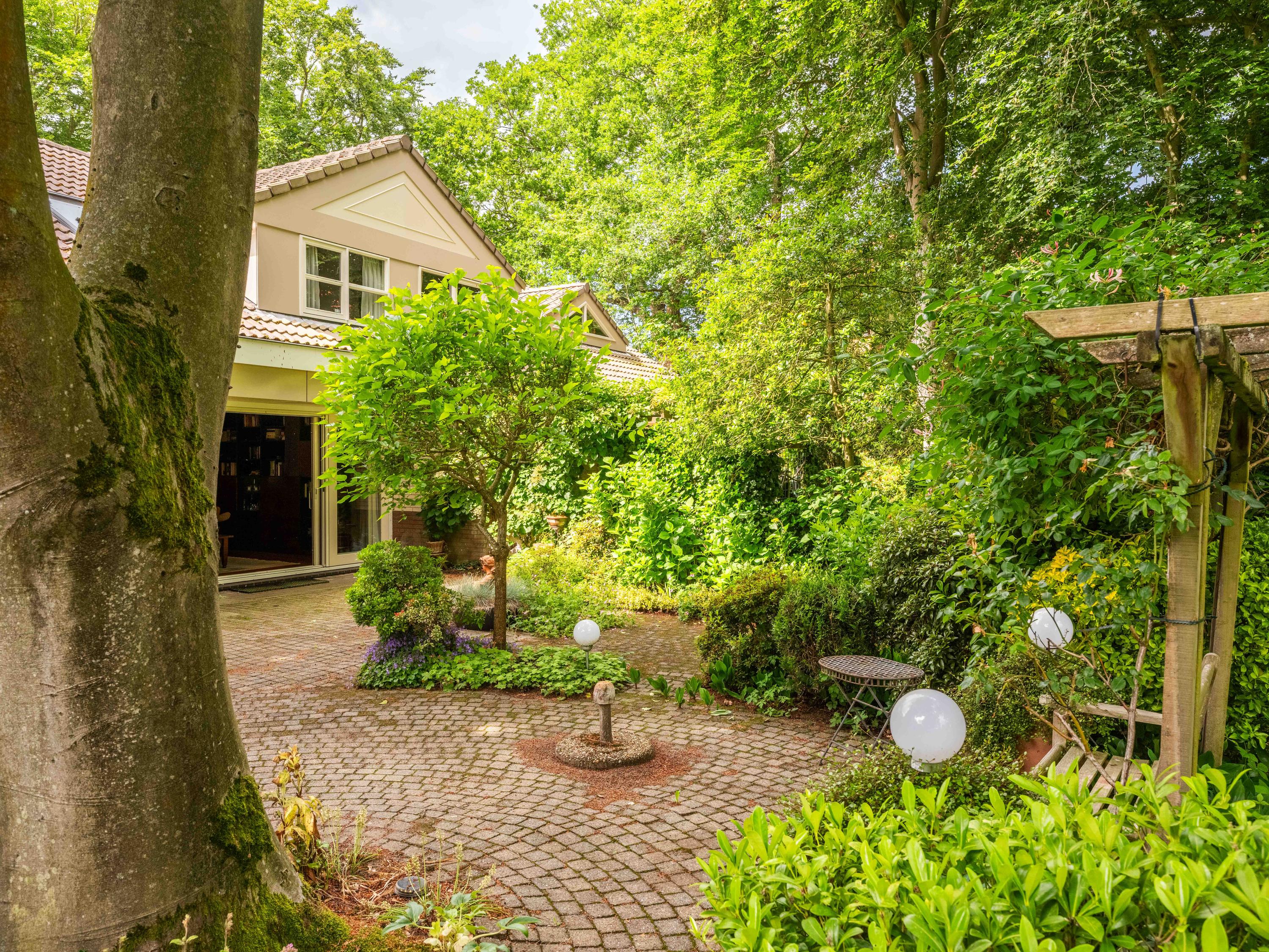 Through the large sliding doors, you step into the sunny, sheltered backyard, a wonderful place to enjoy peace and privacy, with a terrace and a view of the pond. The beautifully landscaped, sunny garden is an oasis of peace and privacy. The terrace borders the exclusive, communal park with ponds – a unique place where you can enjoy nature to the fullest. The park is exclusively accessible to local residents.