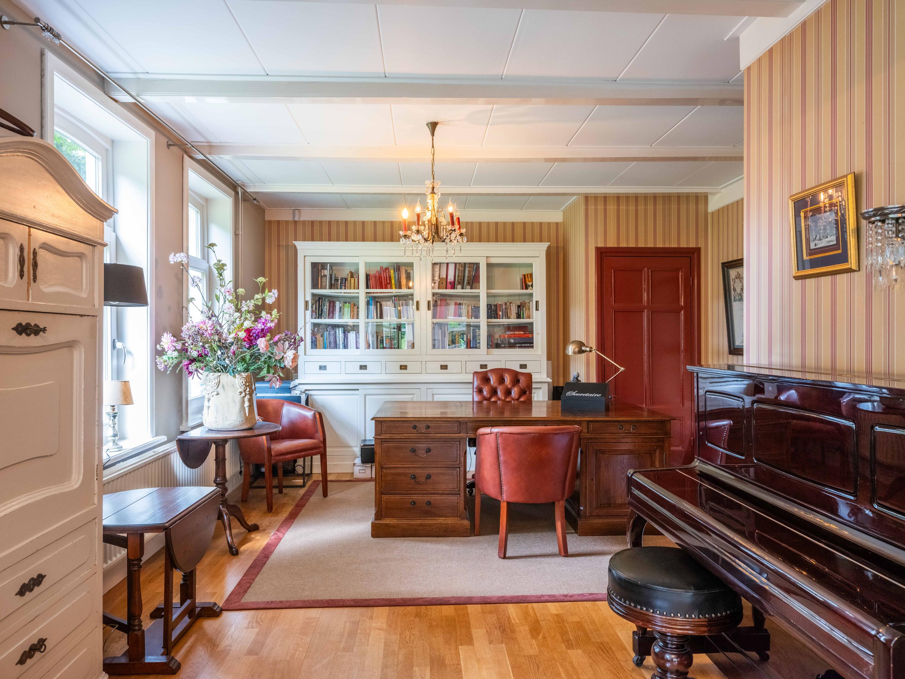 Just a short walk from the centre of the village in a peaceful neighbourhood, it has big garden and also a charming holiday cottage which generates a nice rental income. As you walk up the driveway of this stately farmhouse, you feel like you enter into a different world. A small paradise of approximately 2000 m2 in the center of Bergen. There are too many details to mention, and we therefore invite you to come and see it all with your own eyes. In the meantime, we will try to give you an impression: