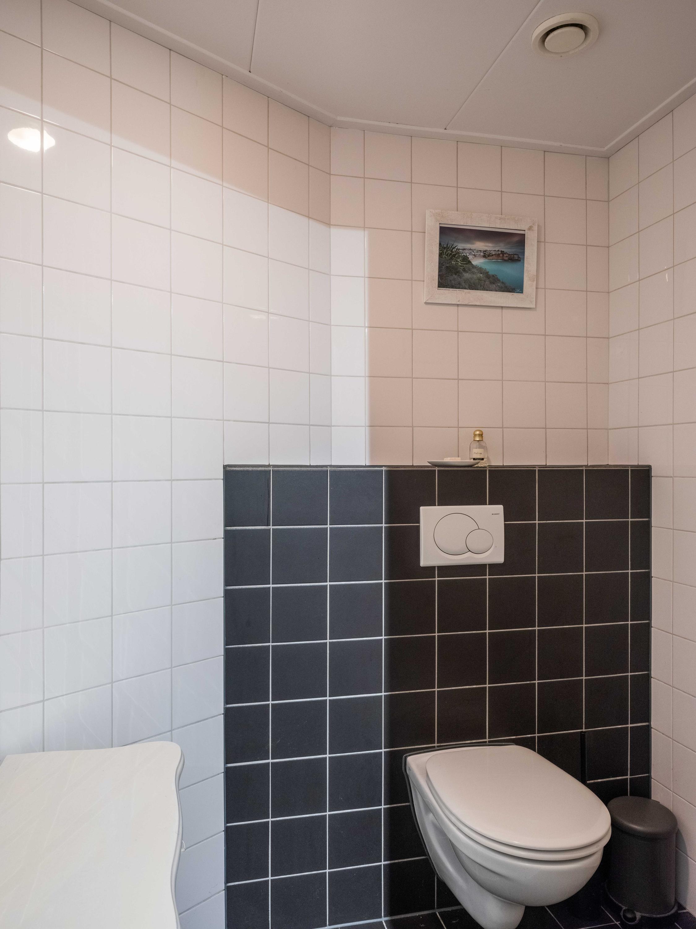 The ground floor also contains a separate apartment. This apartment has its own entrance, but is also accessible from inside the residence. The apartment has a spacious entrance hall, living room with open kitchen, bedroom and a bathroom which is equipped with a shower, toilet and washbasin.