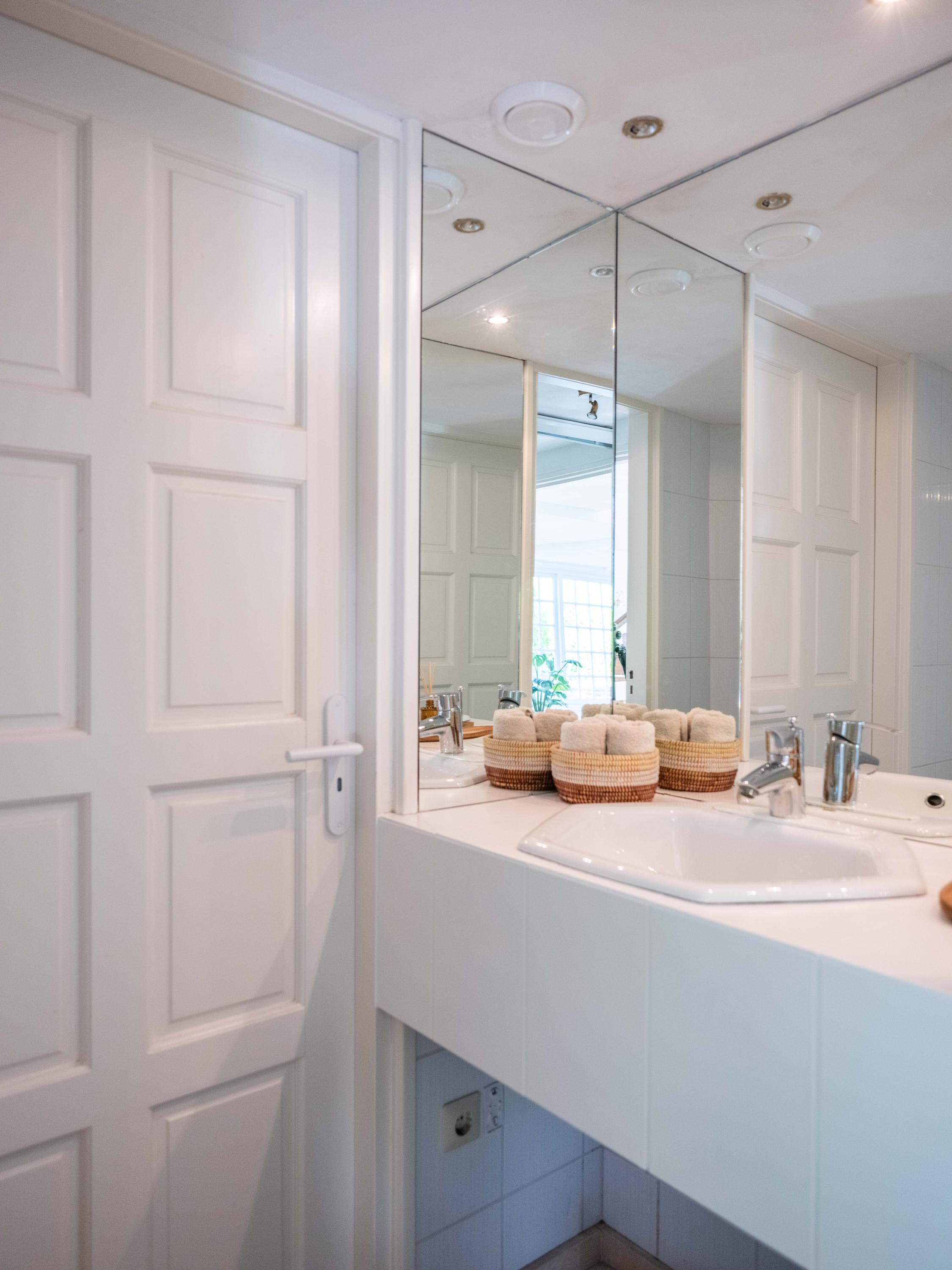 The 194 m² home unfolds from a deep front garden, where privacy is preserved by mature plantings and a gated entrance. The ground floor is designed for flexible living, with a bedroom and en suite bathroom conveniently positioned for single-level living. Additional spaces include a dedicated office or guest room and an extra shower, supporting both professional needs and visiting guests.